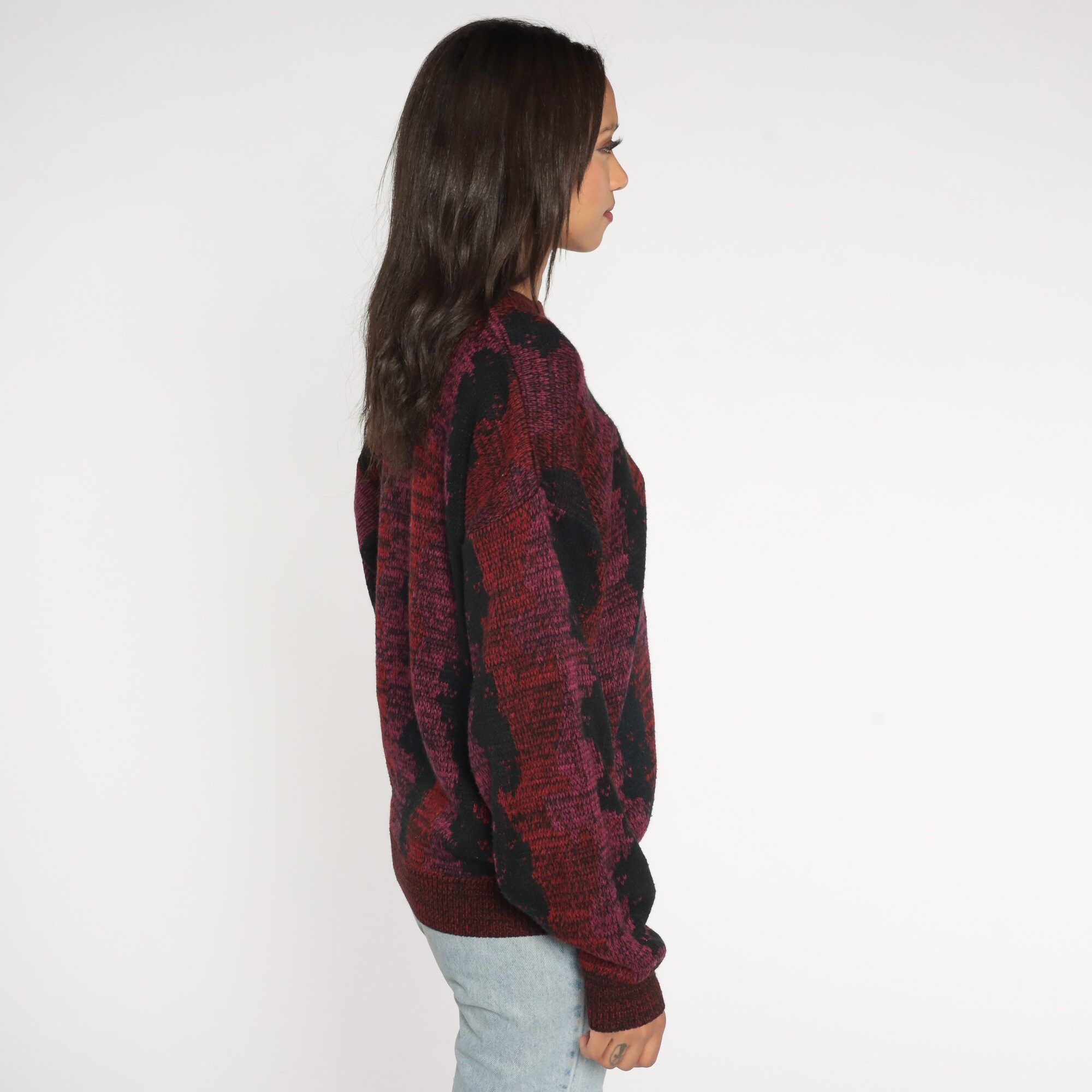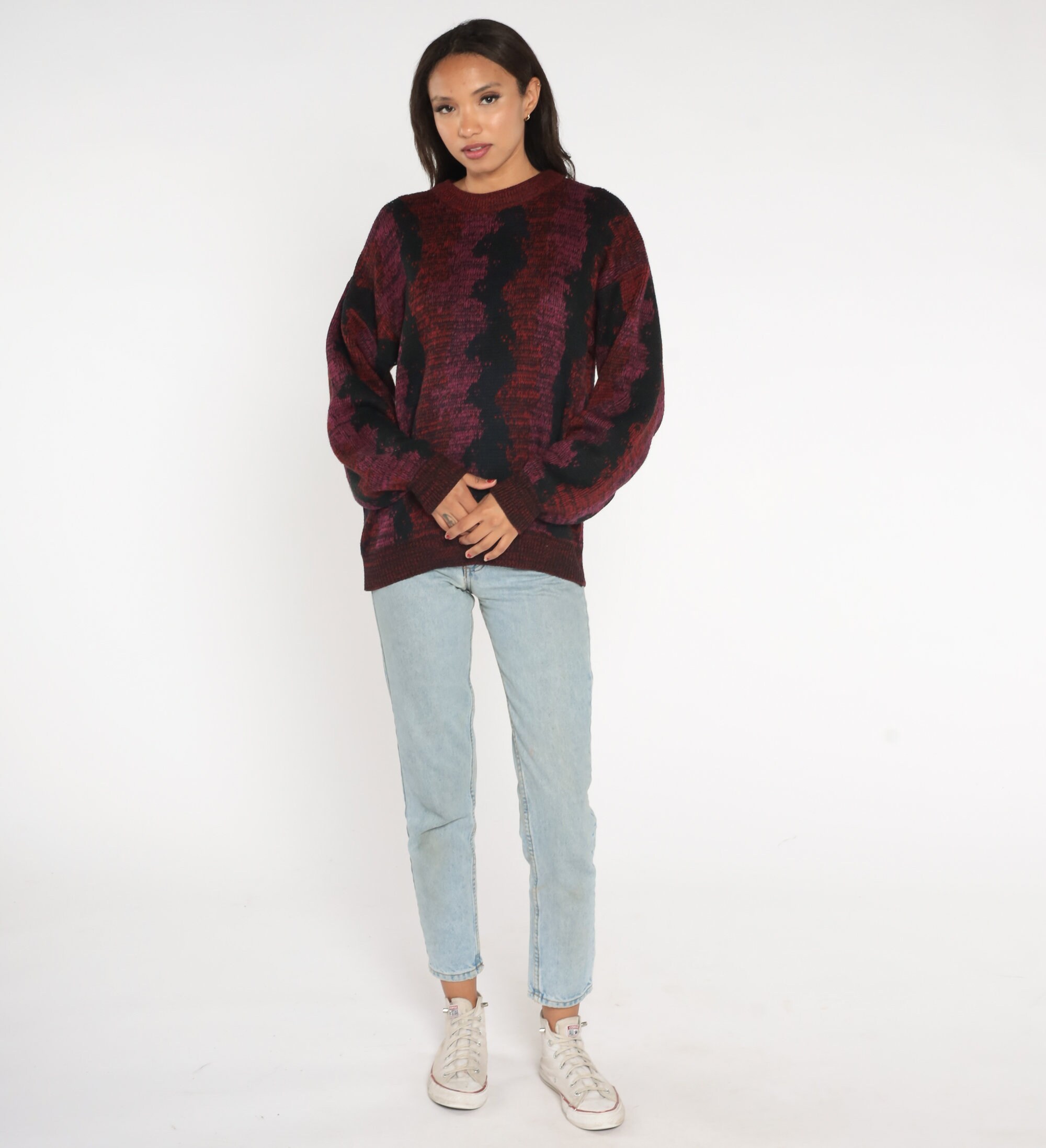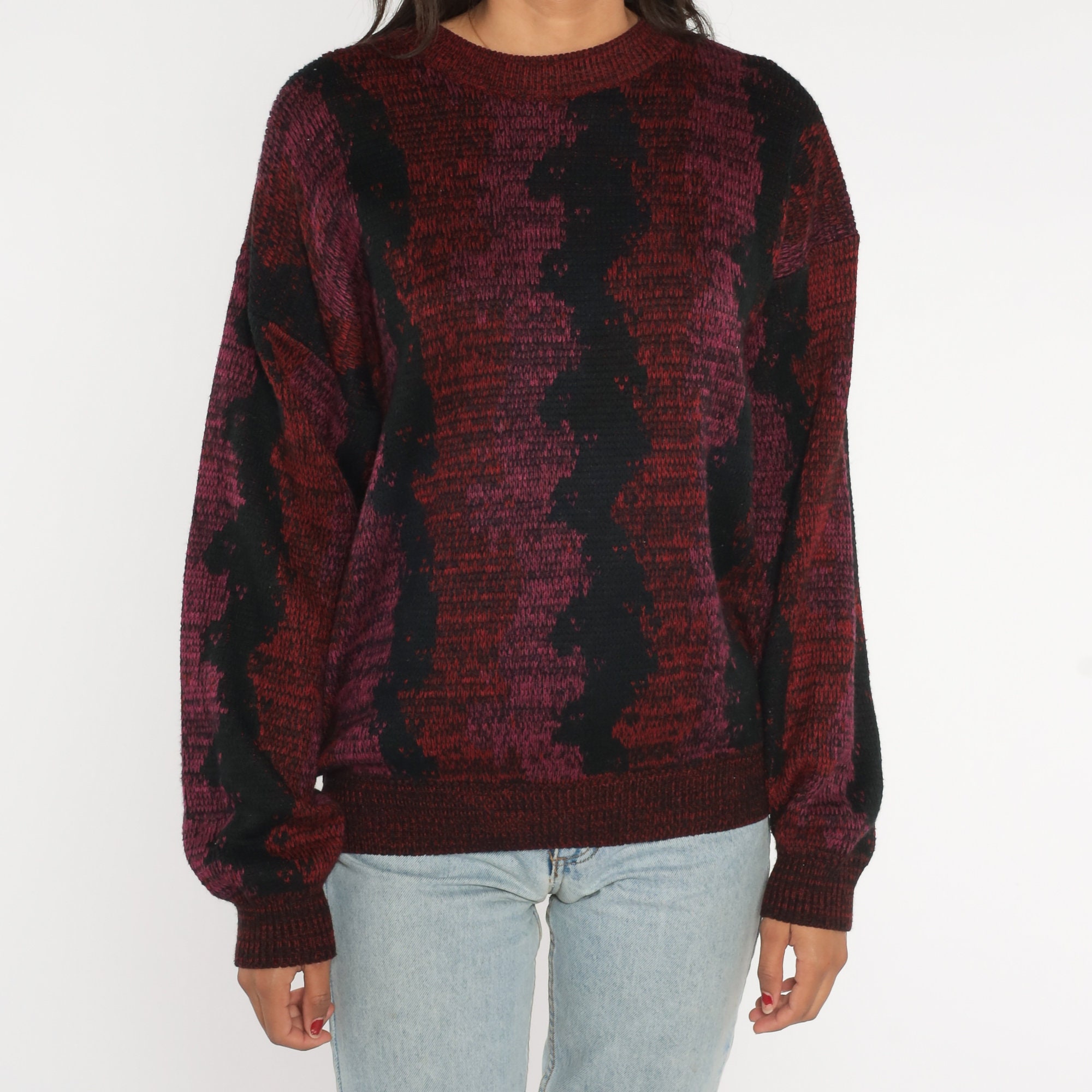 Vintage 80s sweater with a wavy striped design.