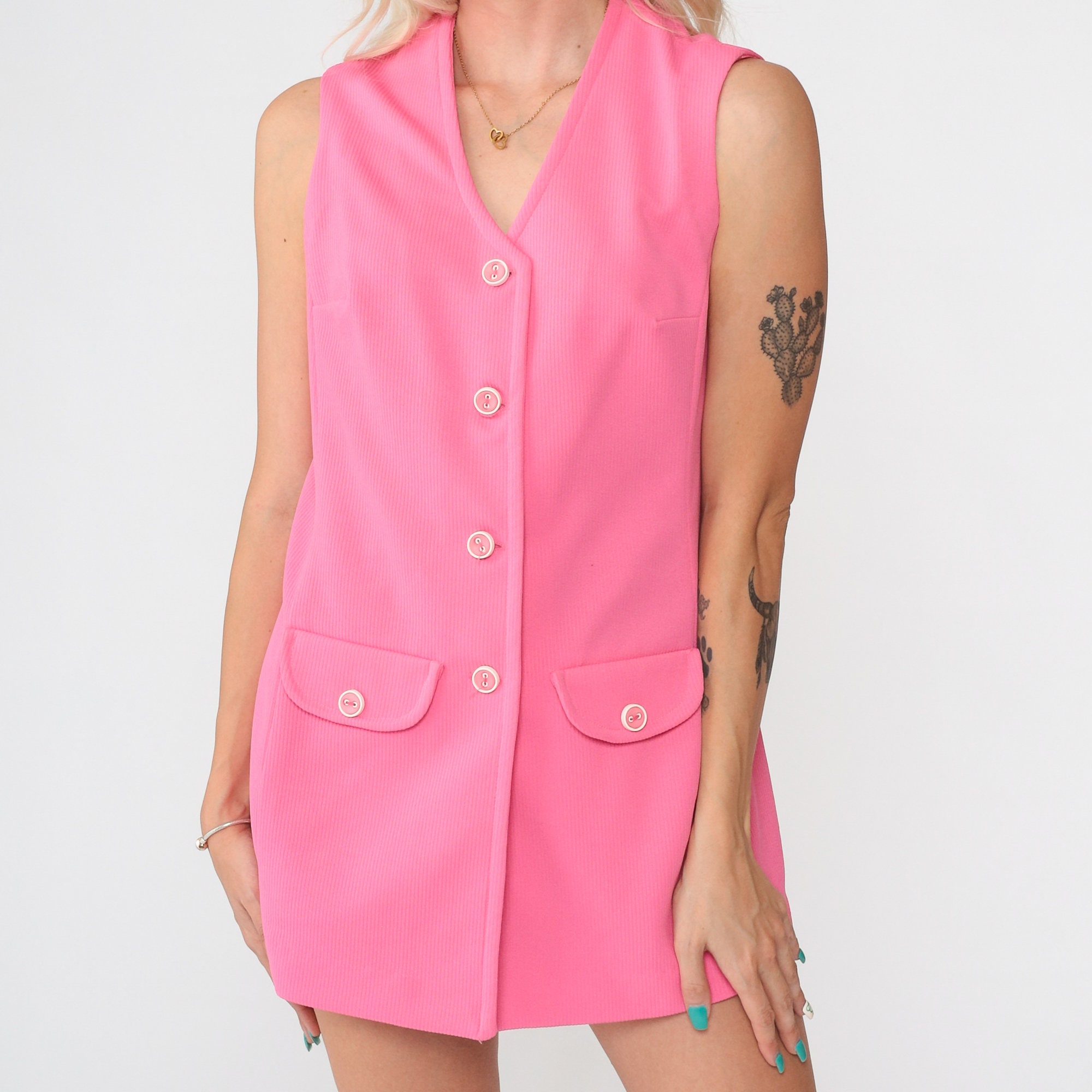 Vintage 70s tank top in pink with buttons up the front and a v neck.