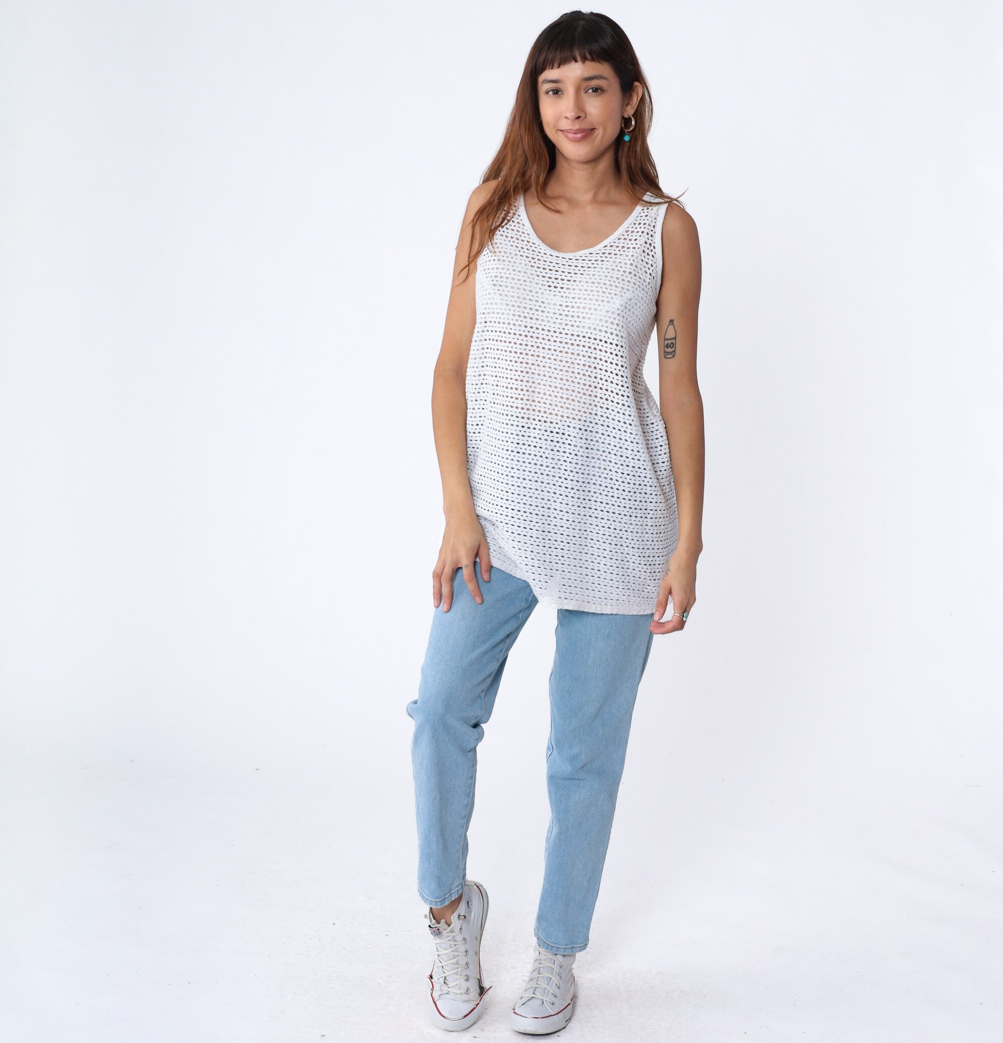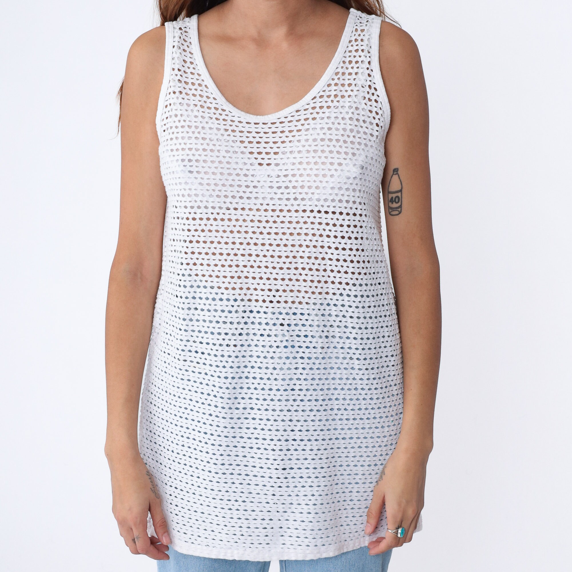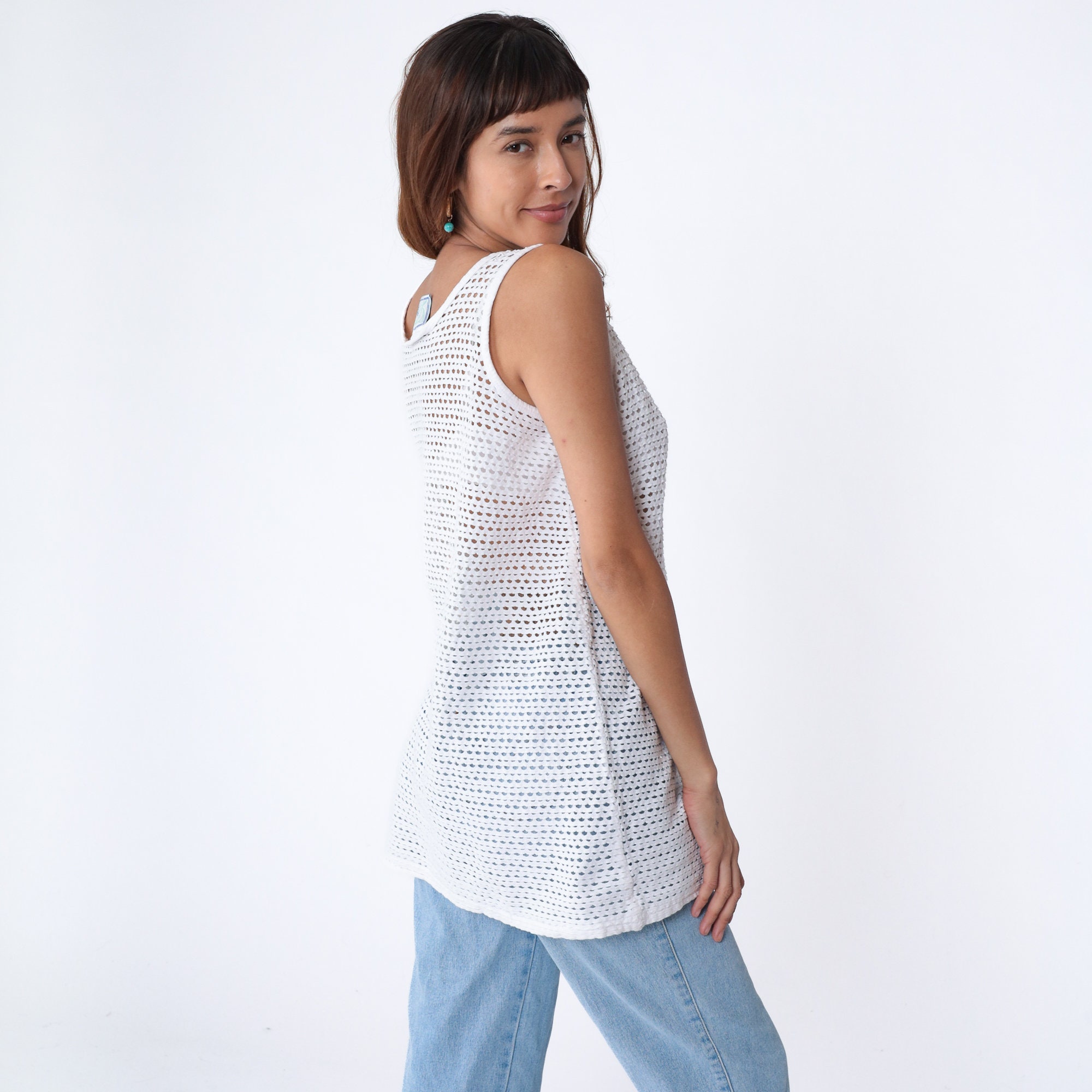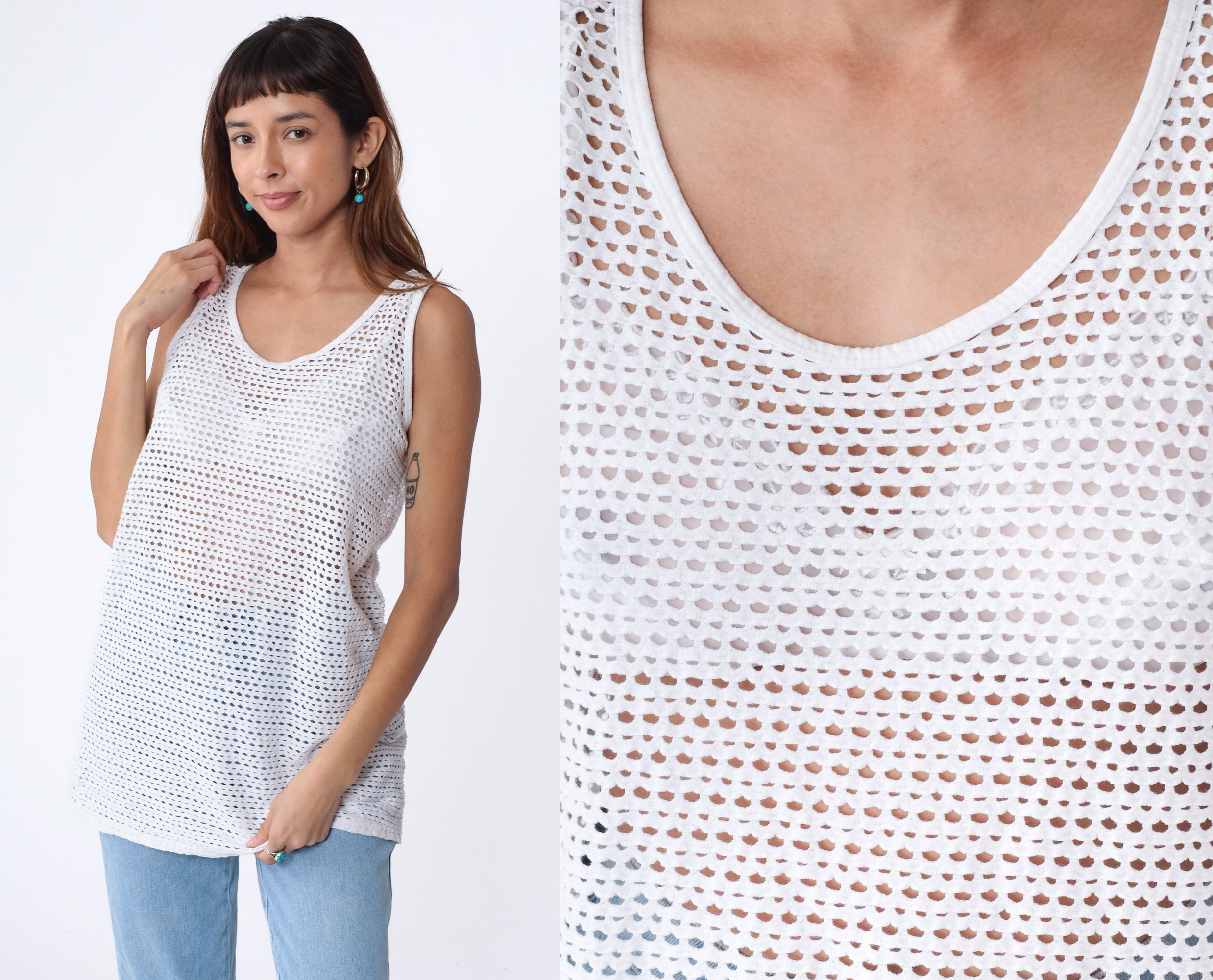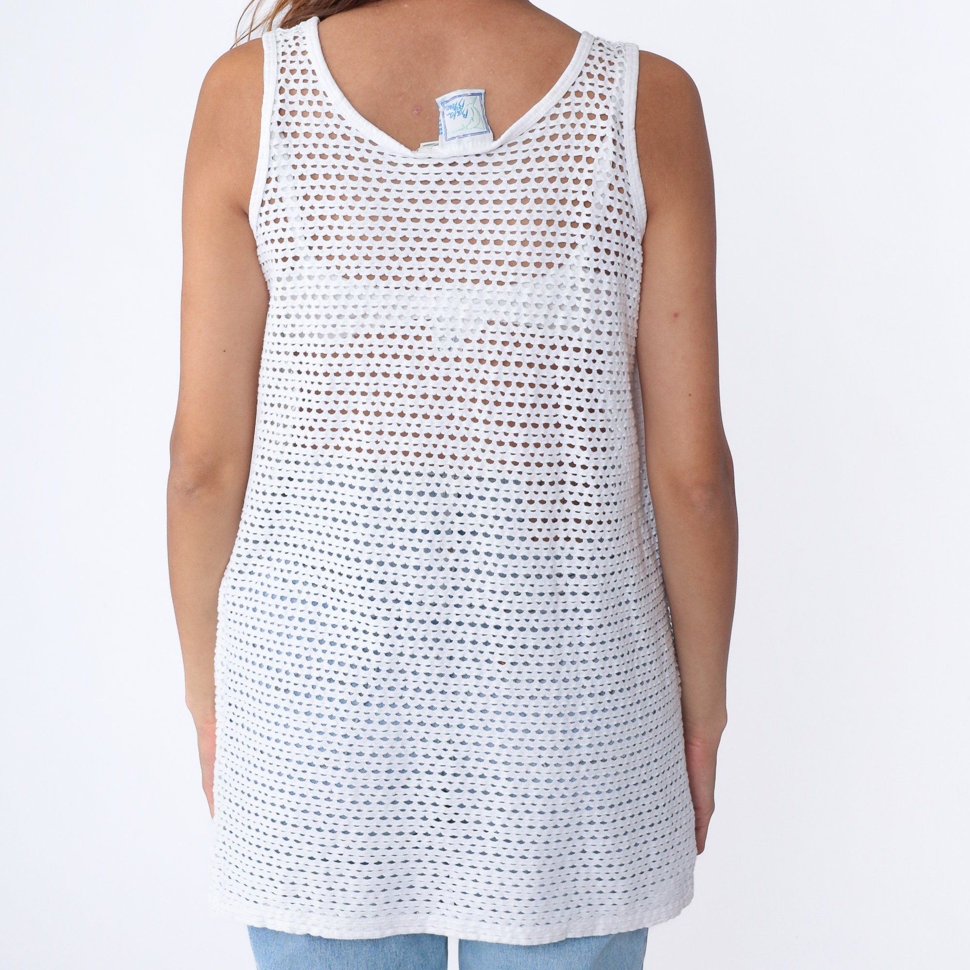 Vintage 90s tank top in white with sheer cutouts.