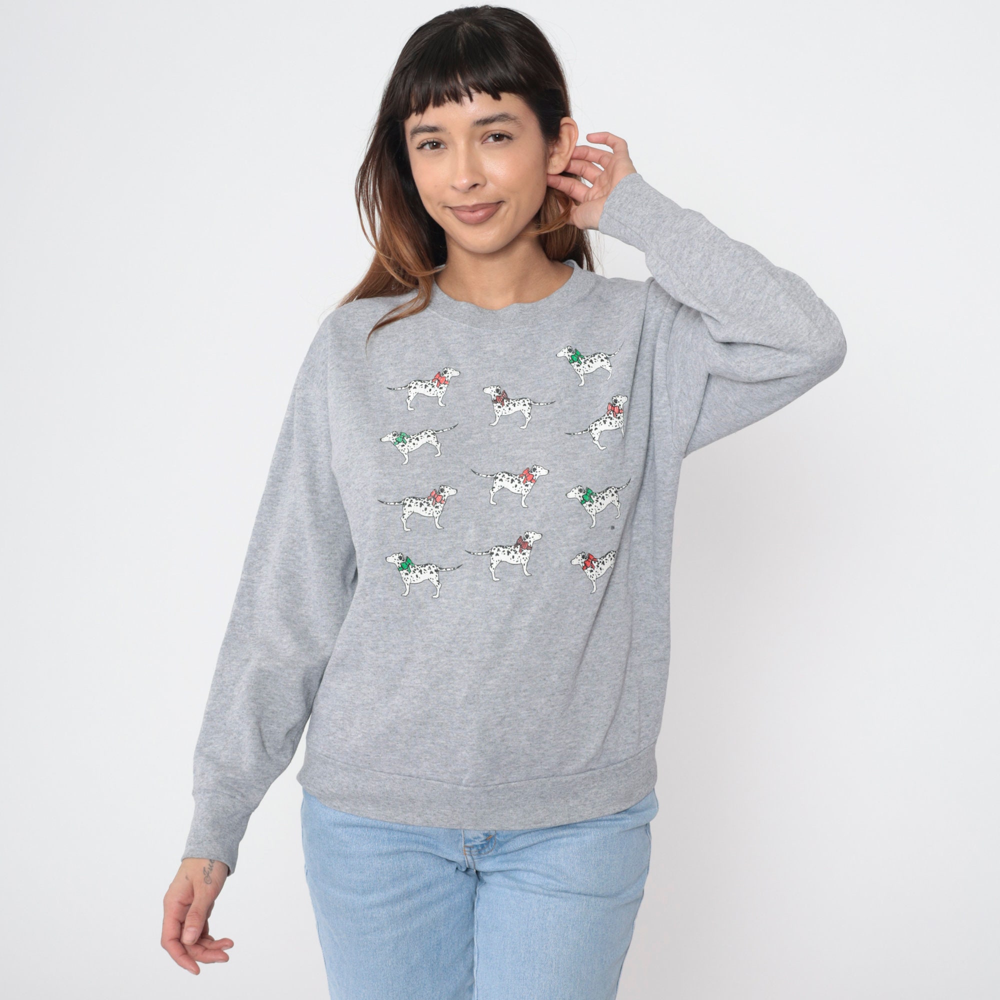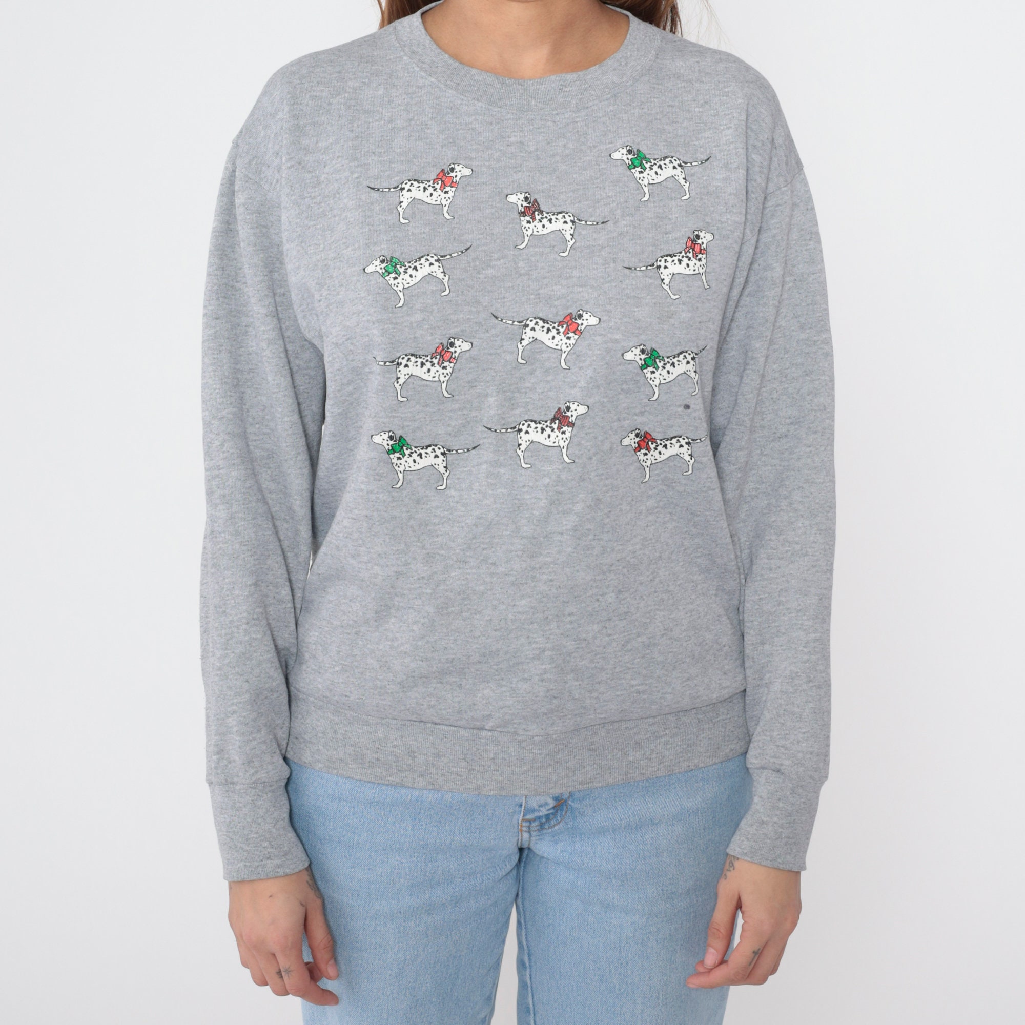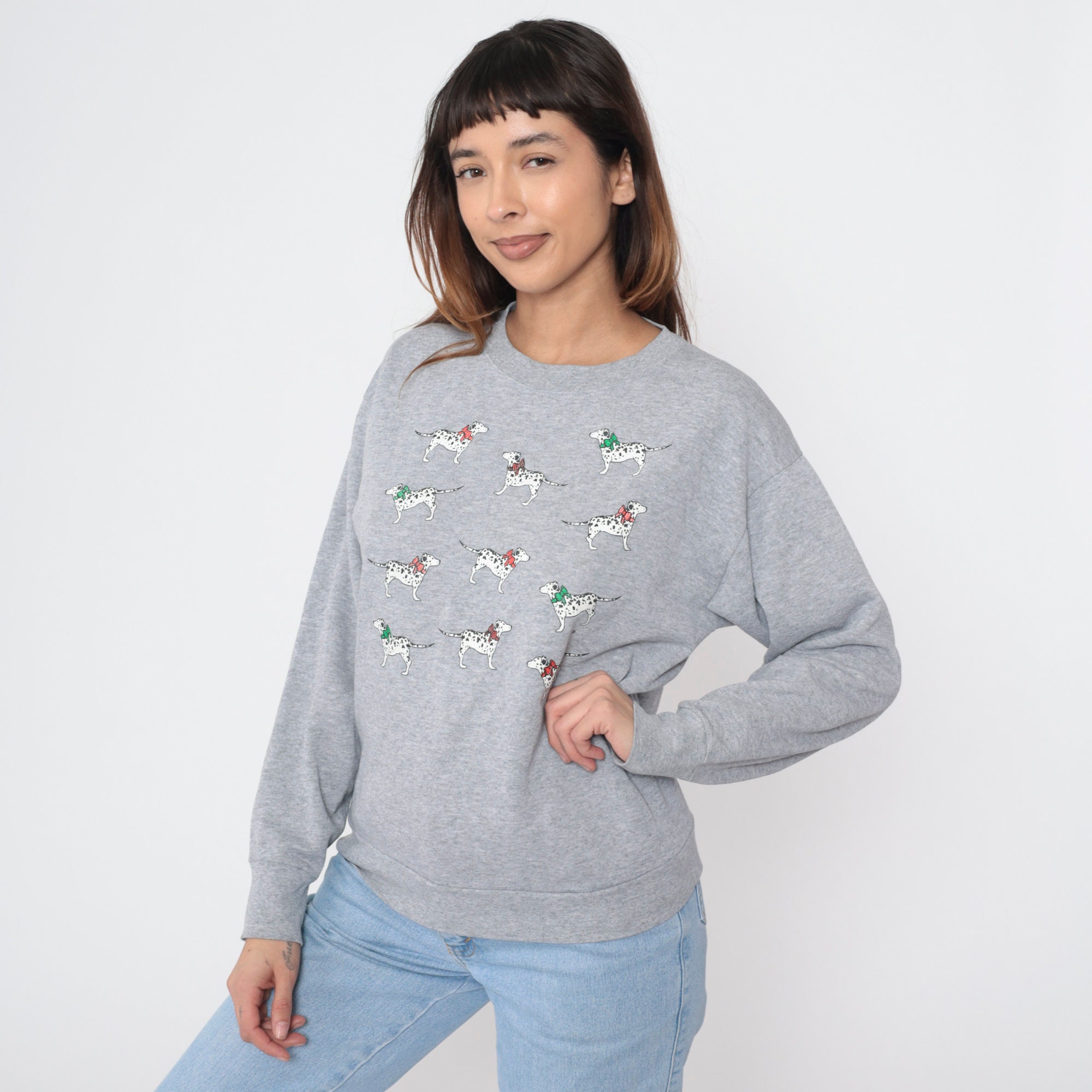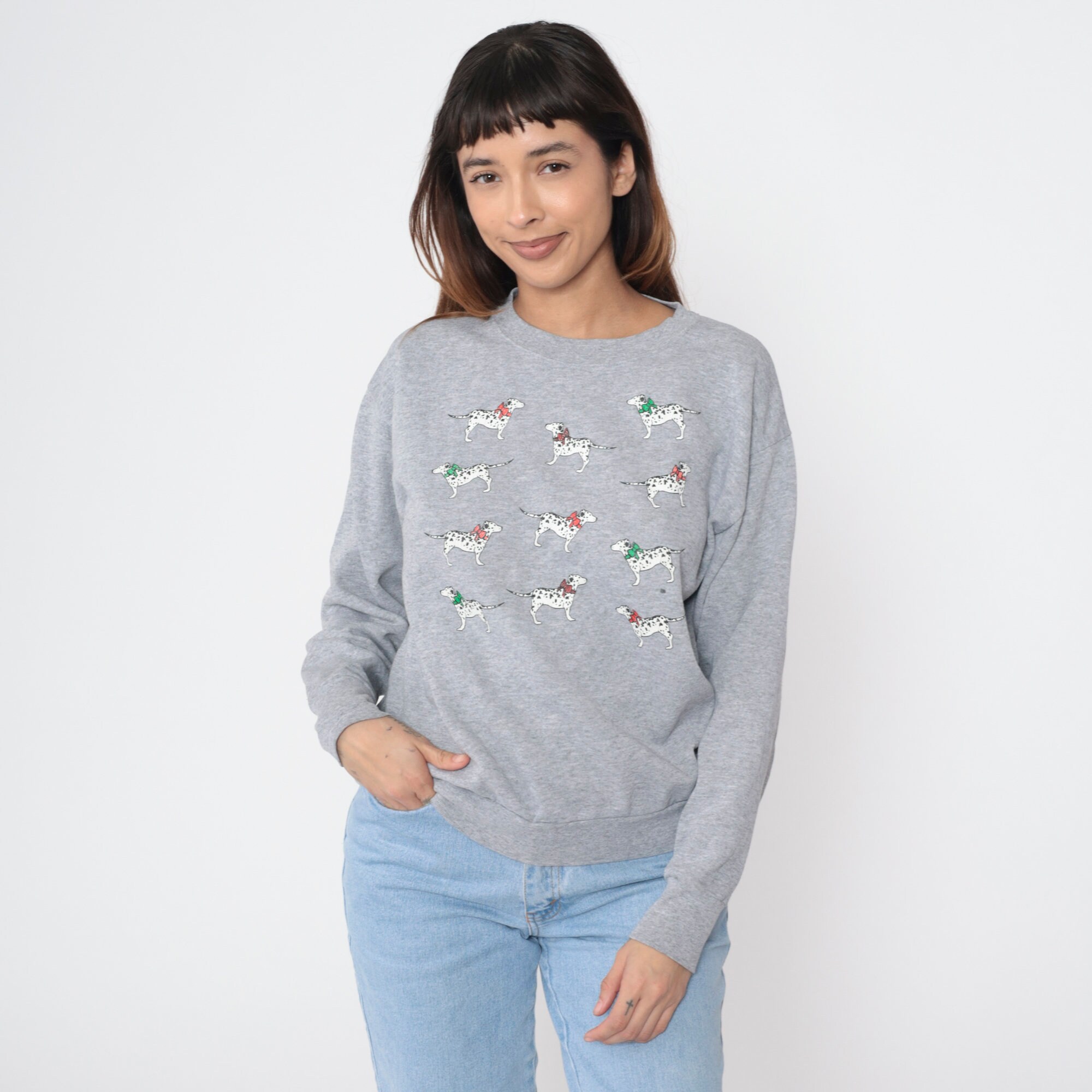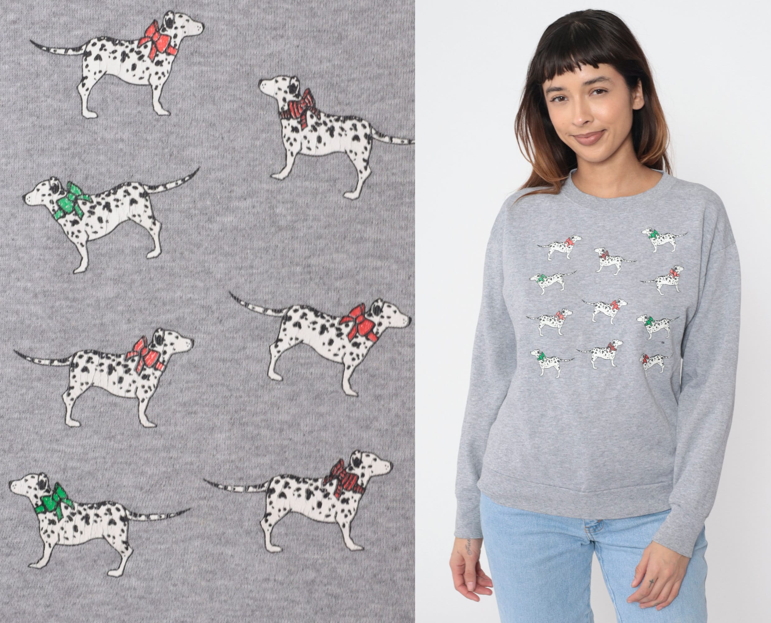 Vintage 90s sweatshirt with Dalmatians in red and green bows on the front. Slouchy fit.