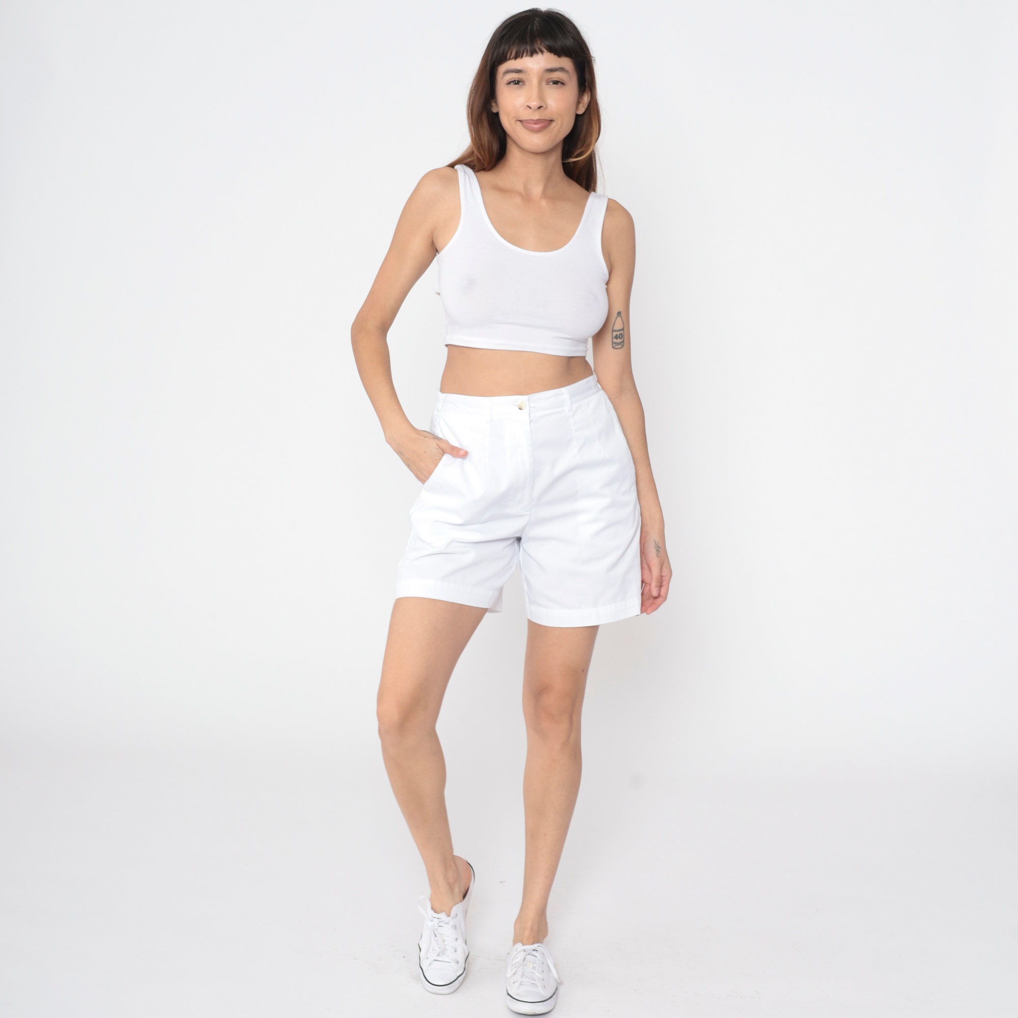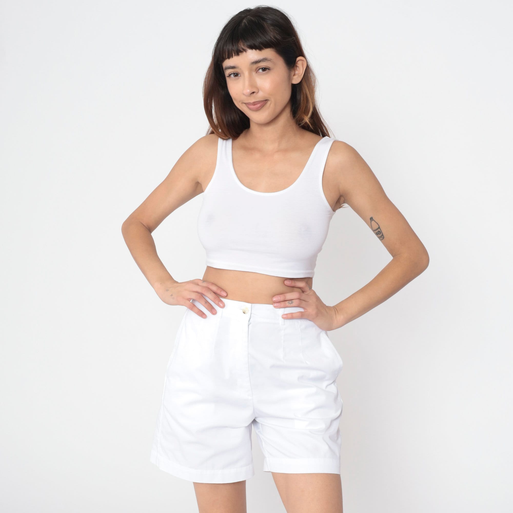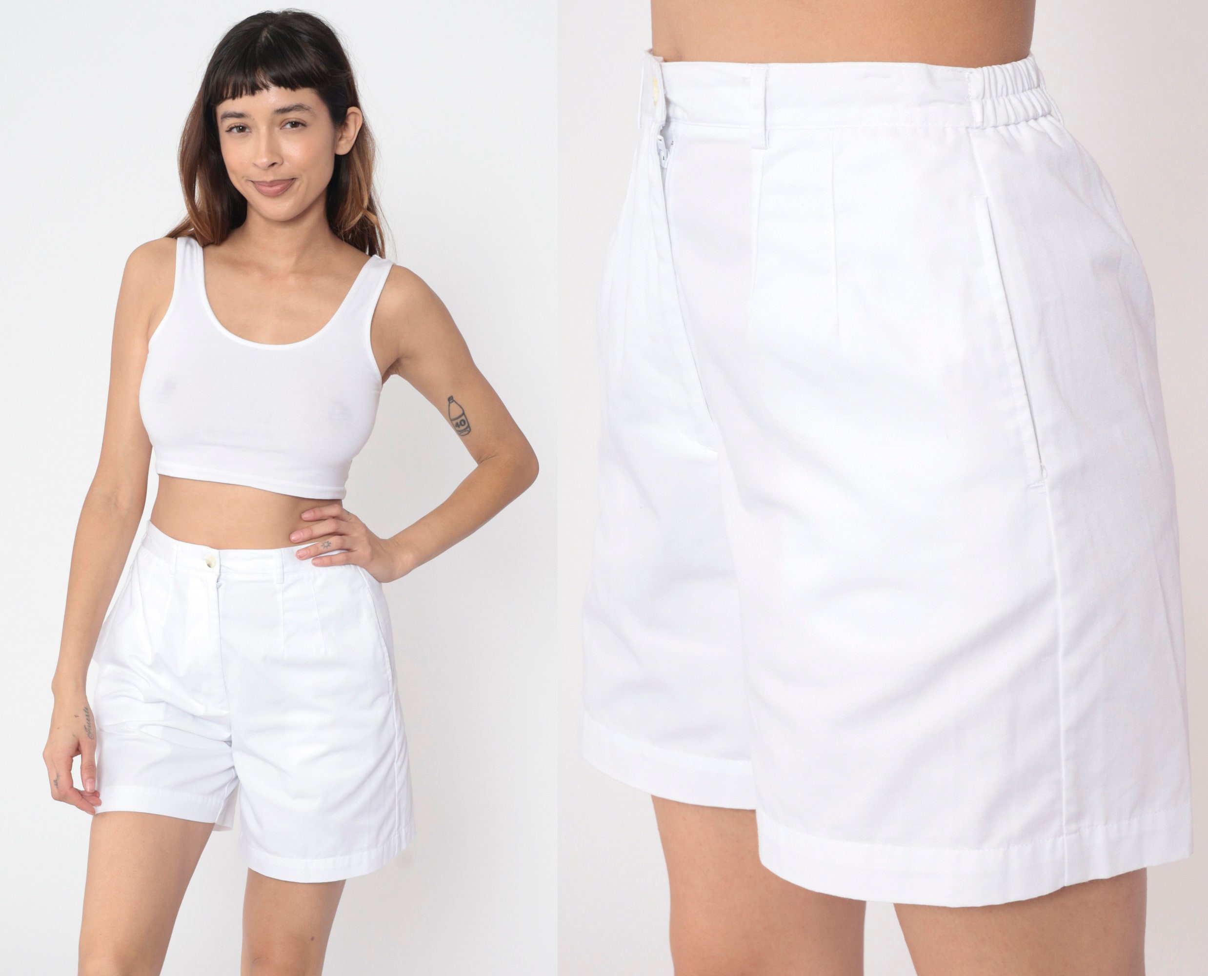 Vintage 90s shorts in white with pleating and a high waist.