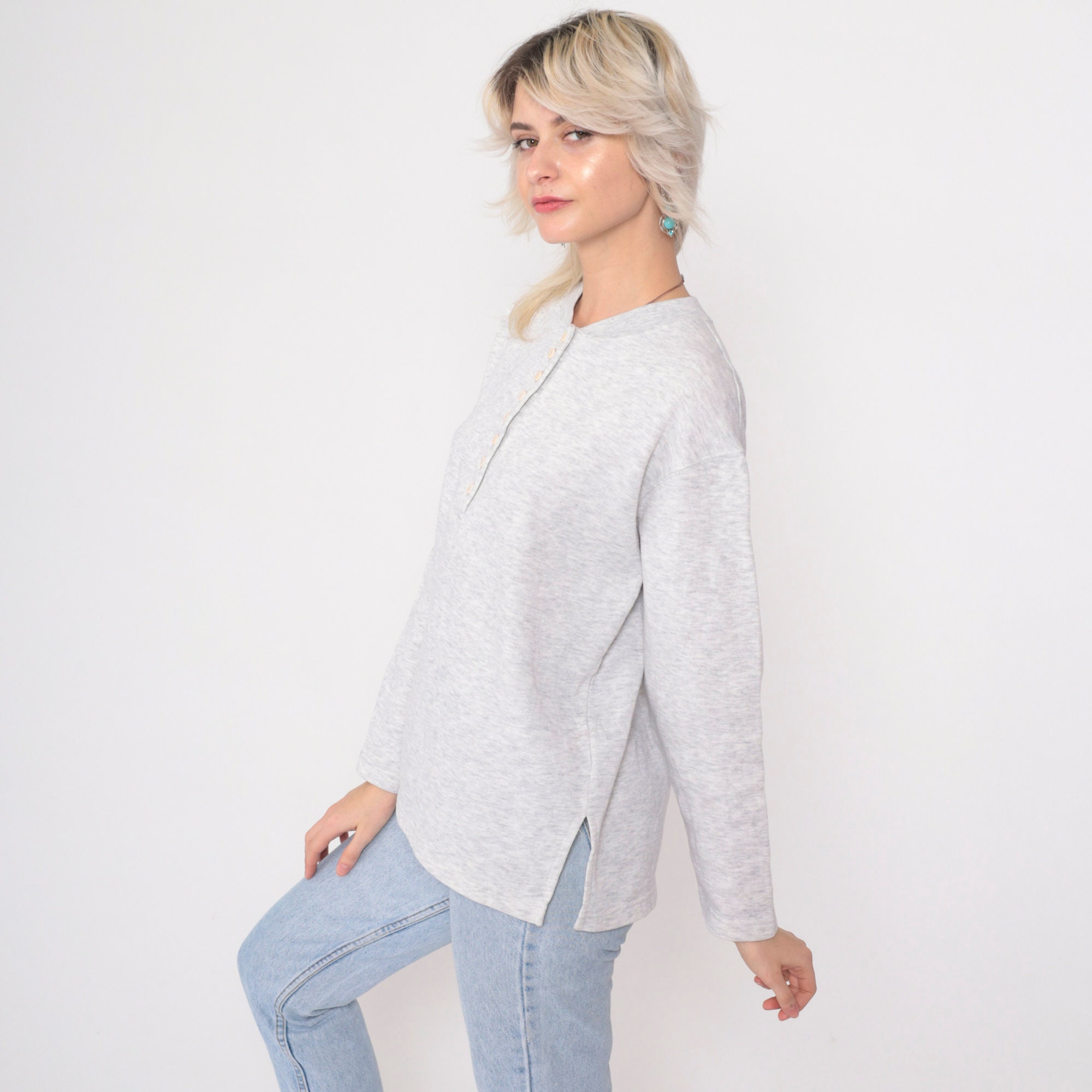 Vintage 90s shirt in heather grey with a button up neckline and long sleeves.