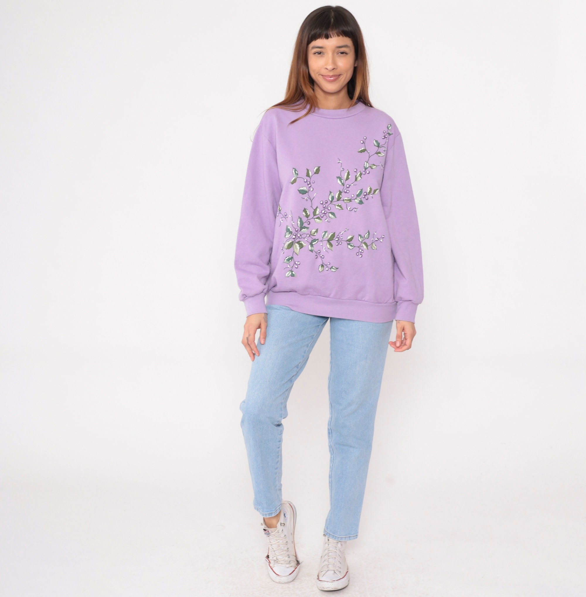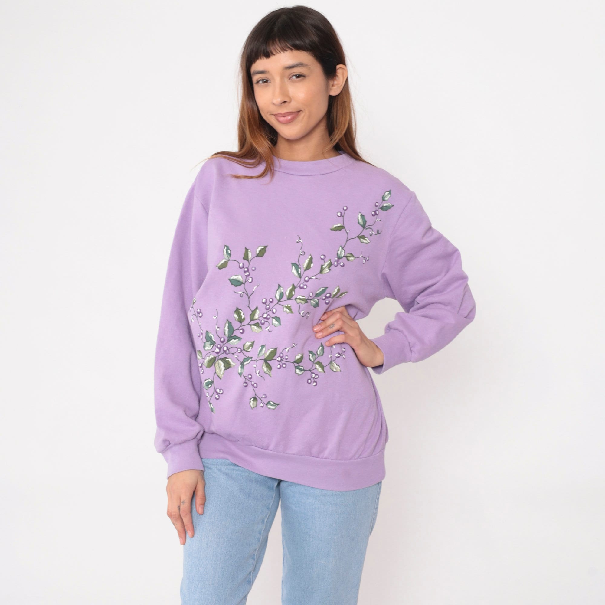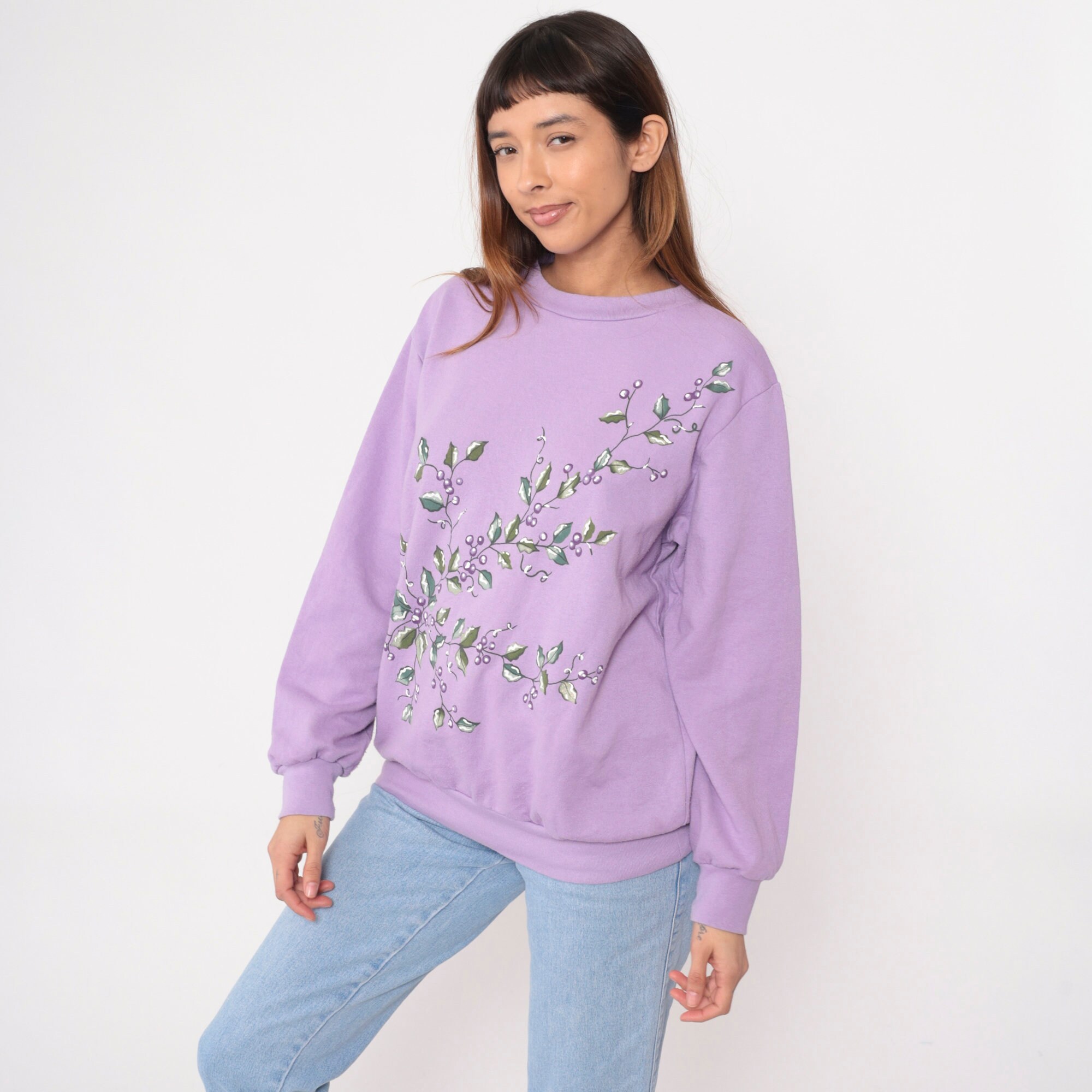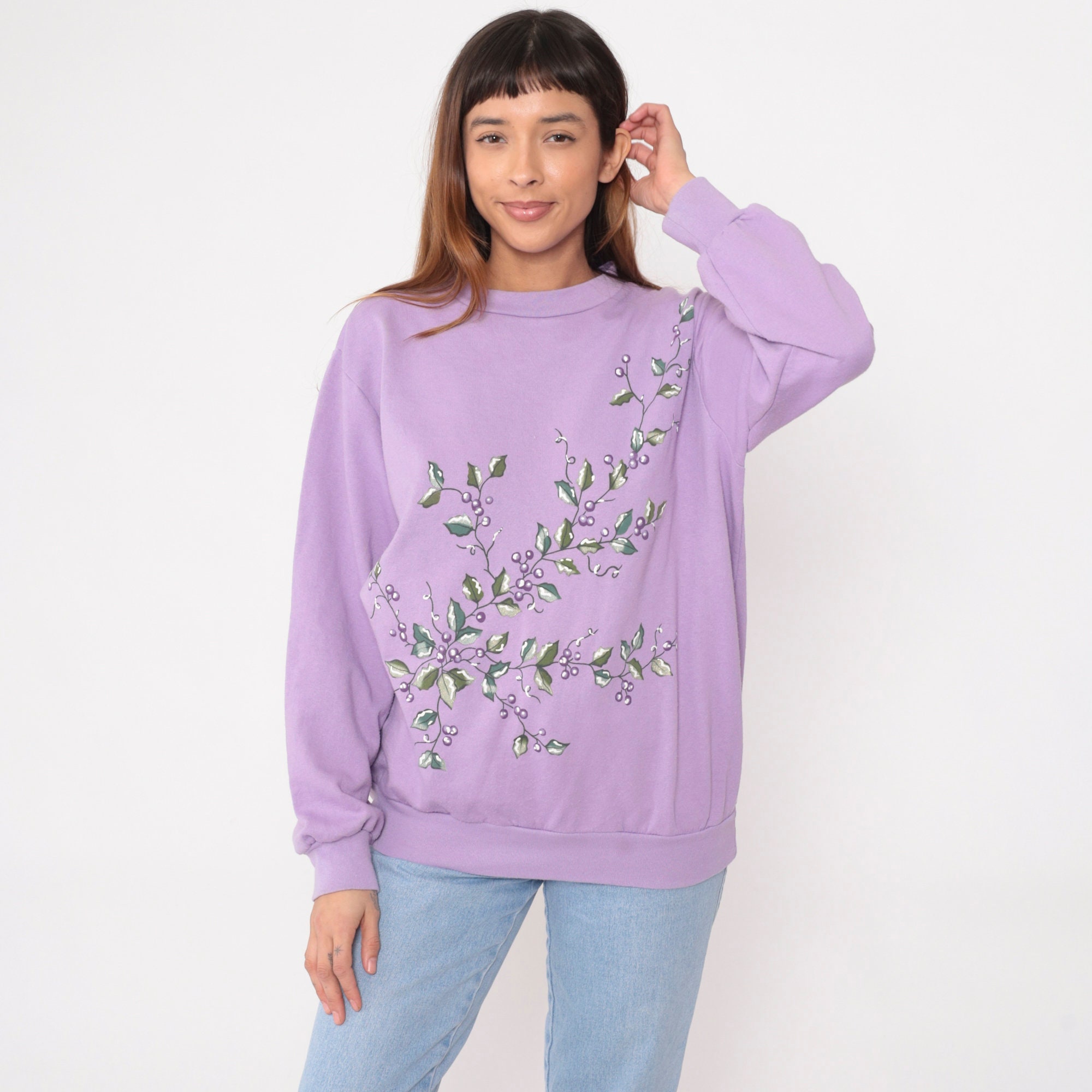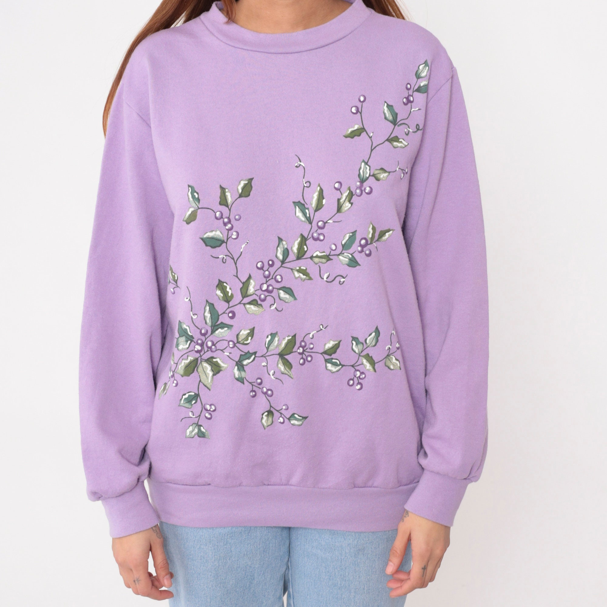 Vintage 90s sweatshirt in lavender with a plant print with purple berries.