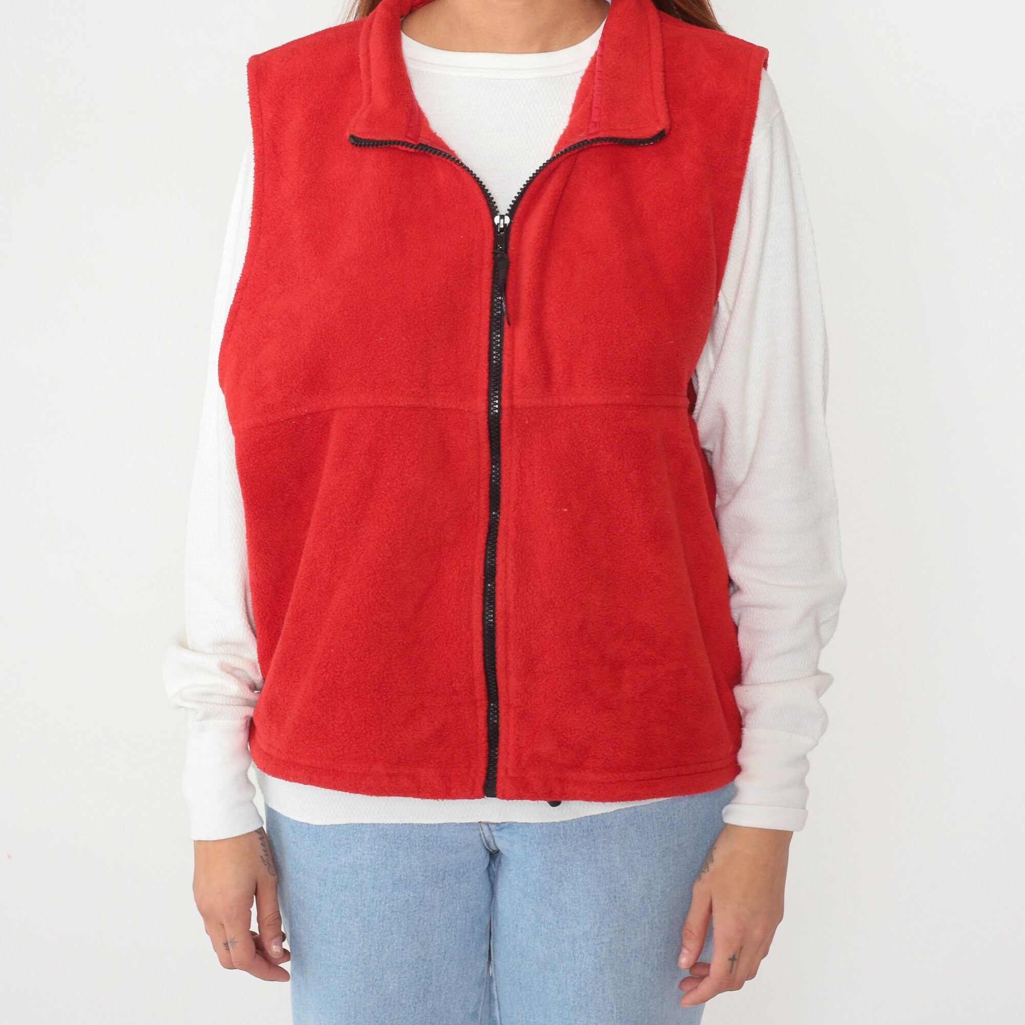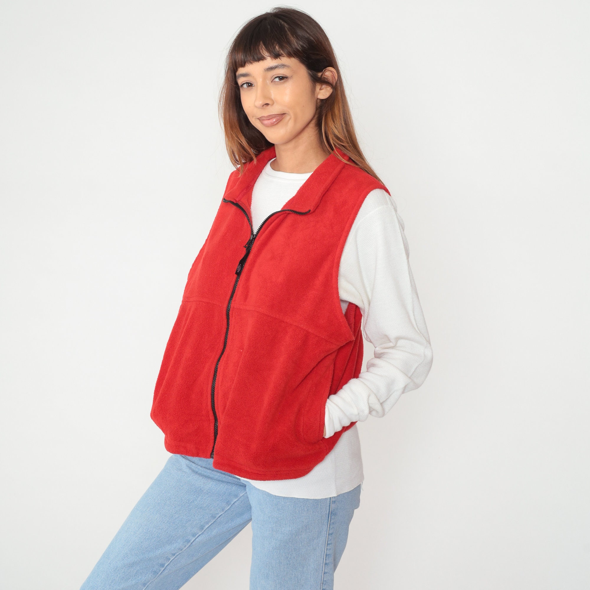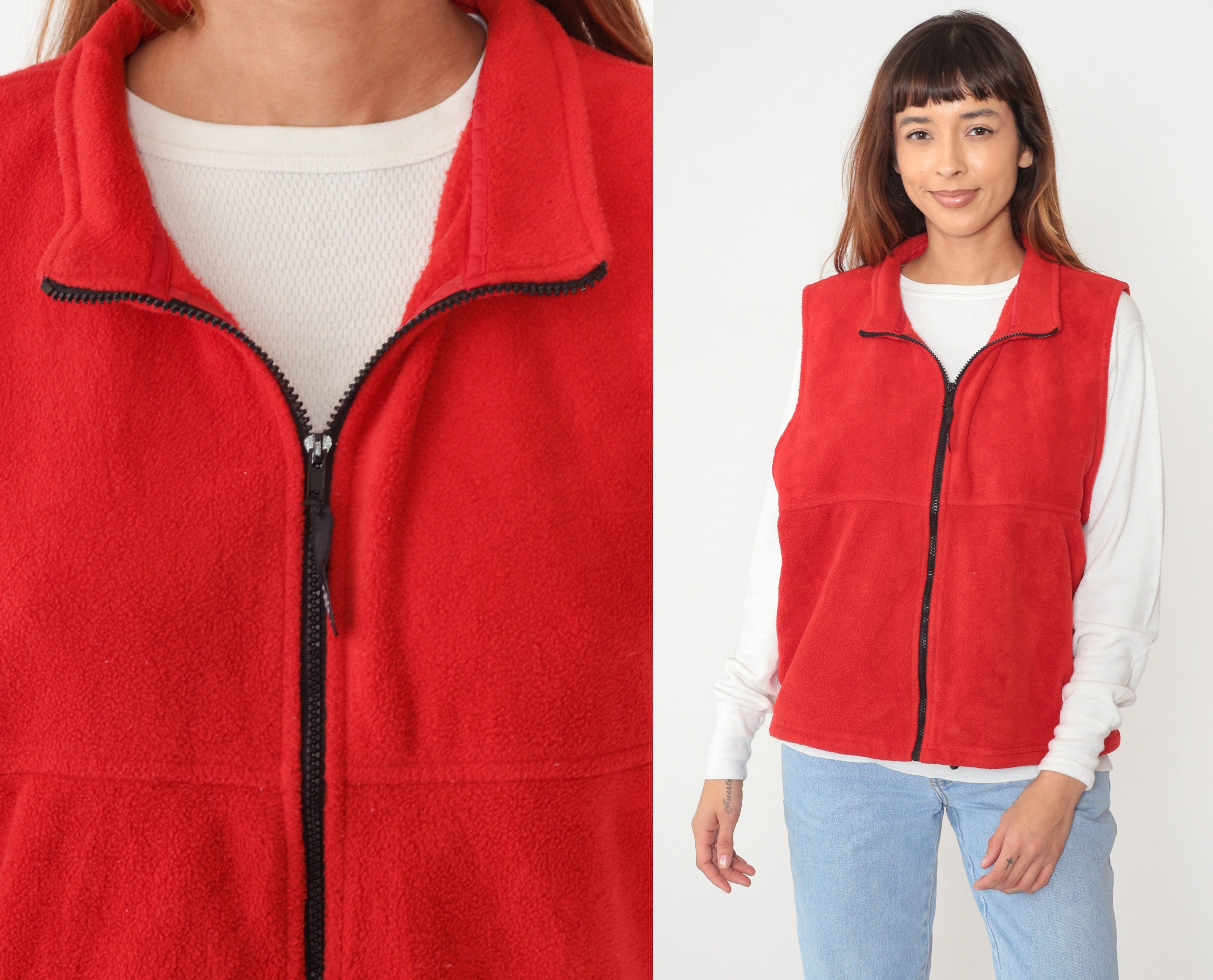 Vintage 90s vest in red fleece with a zipper up the front.