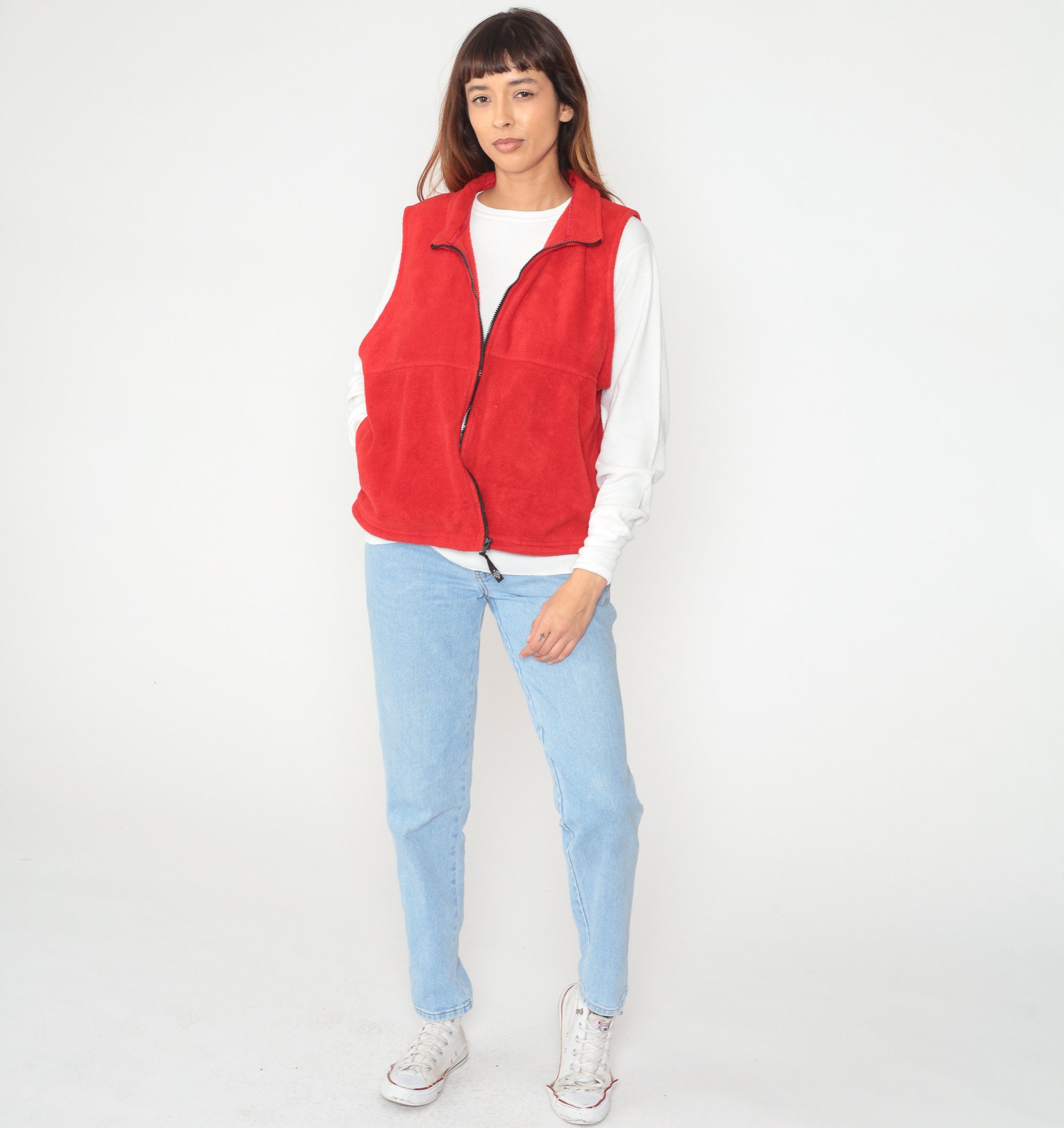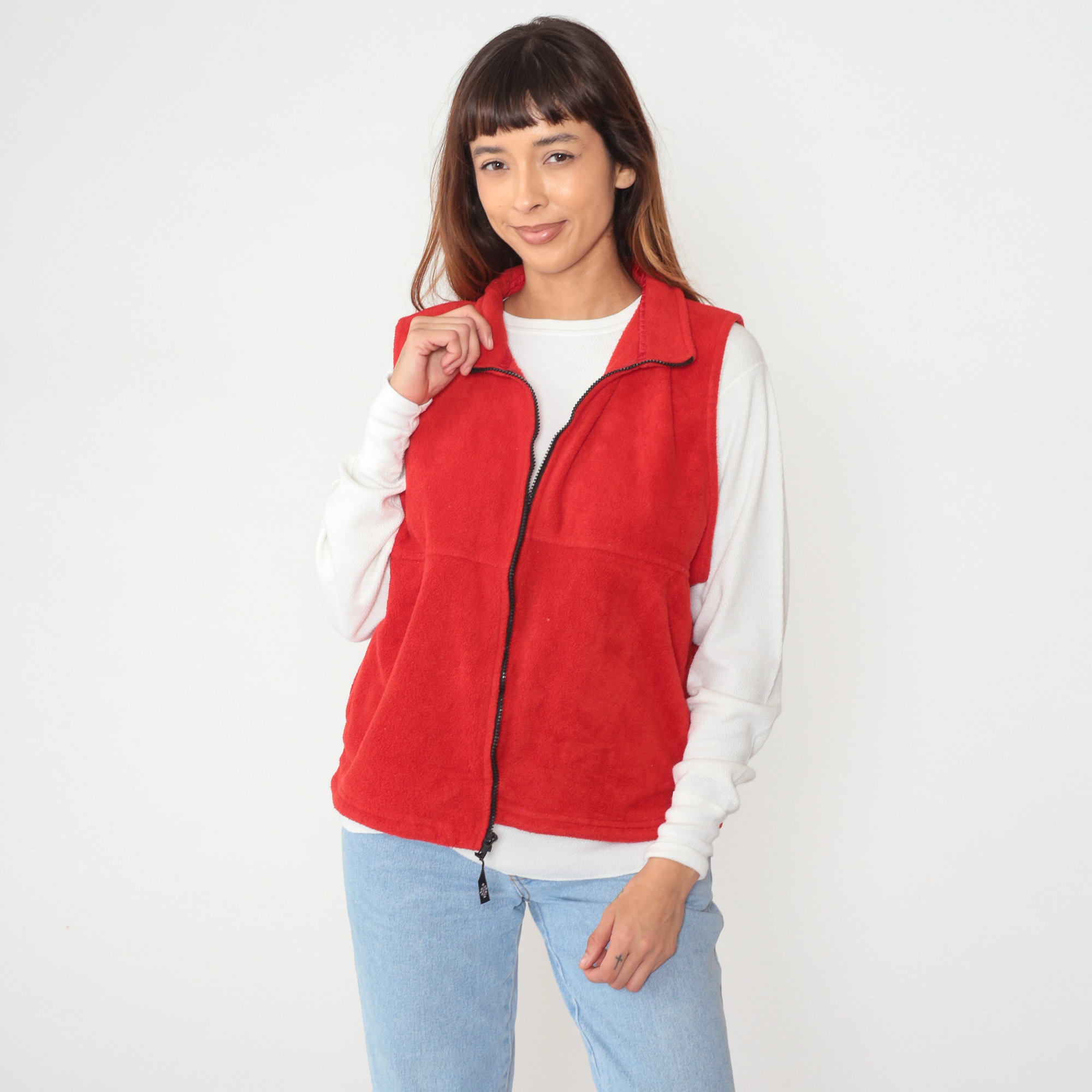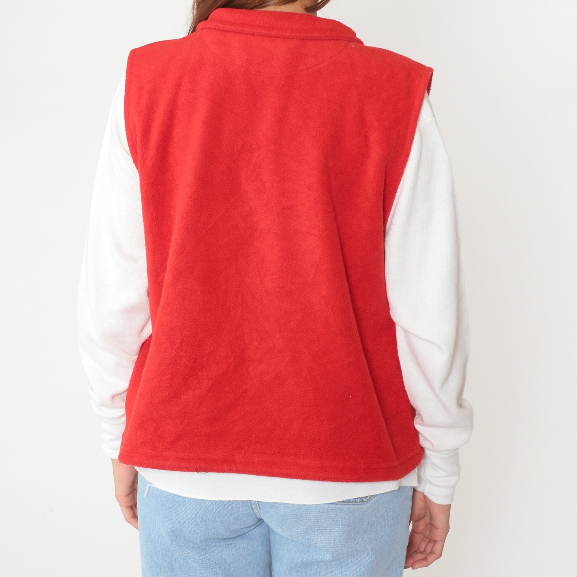 Vintage 90s vest in red fleece with a zipper up the front.