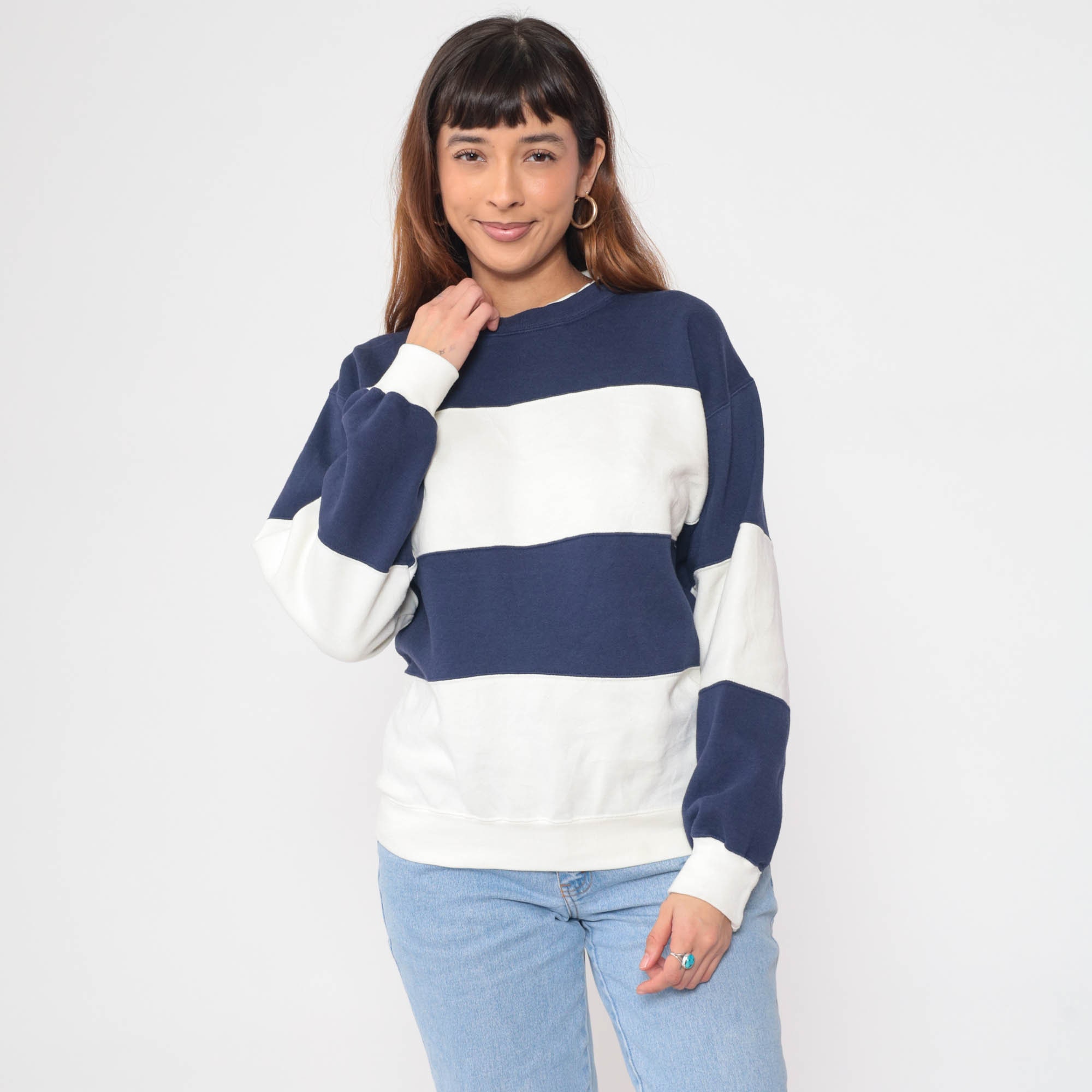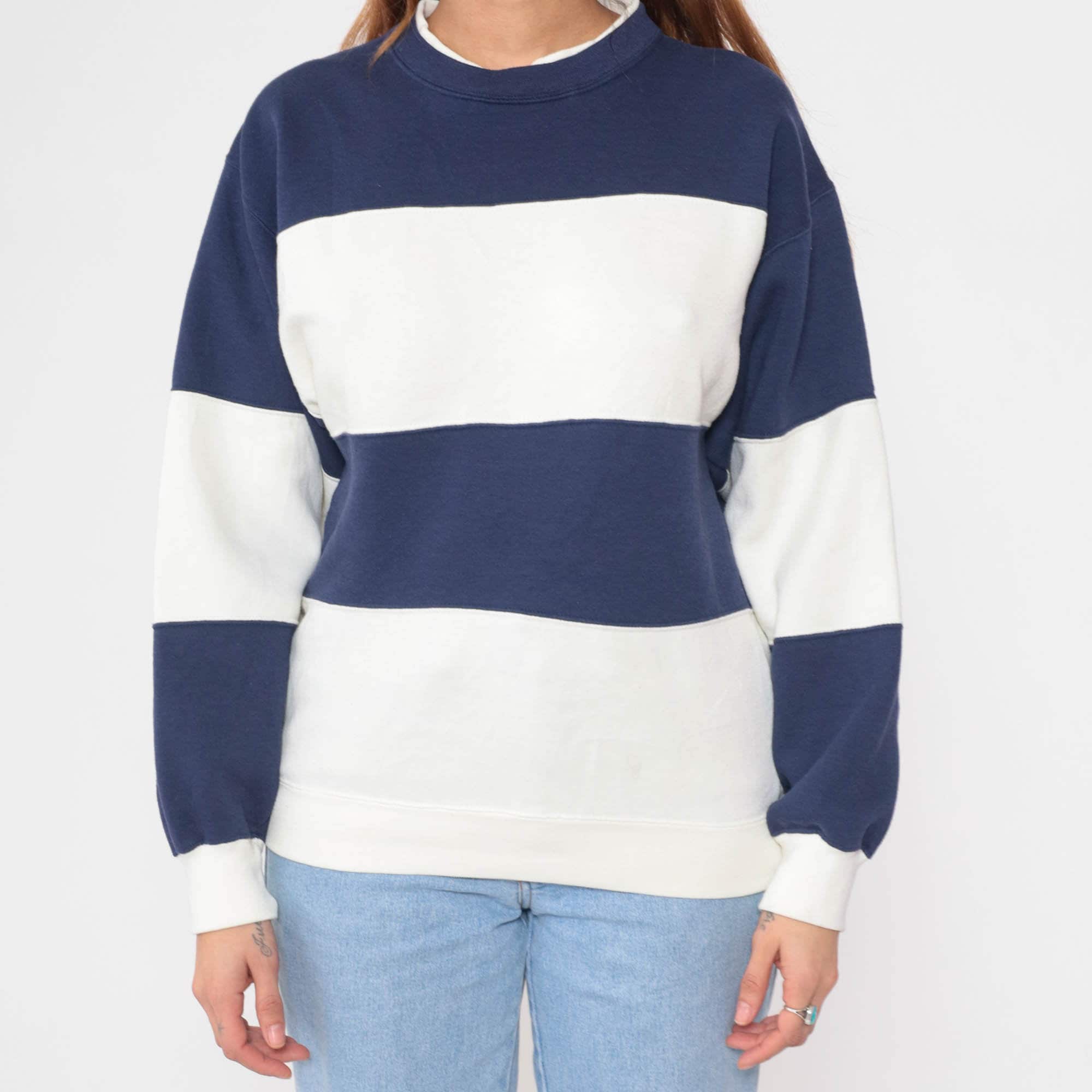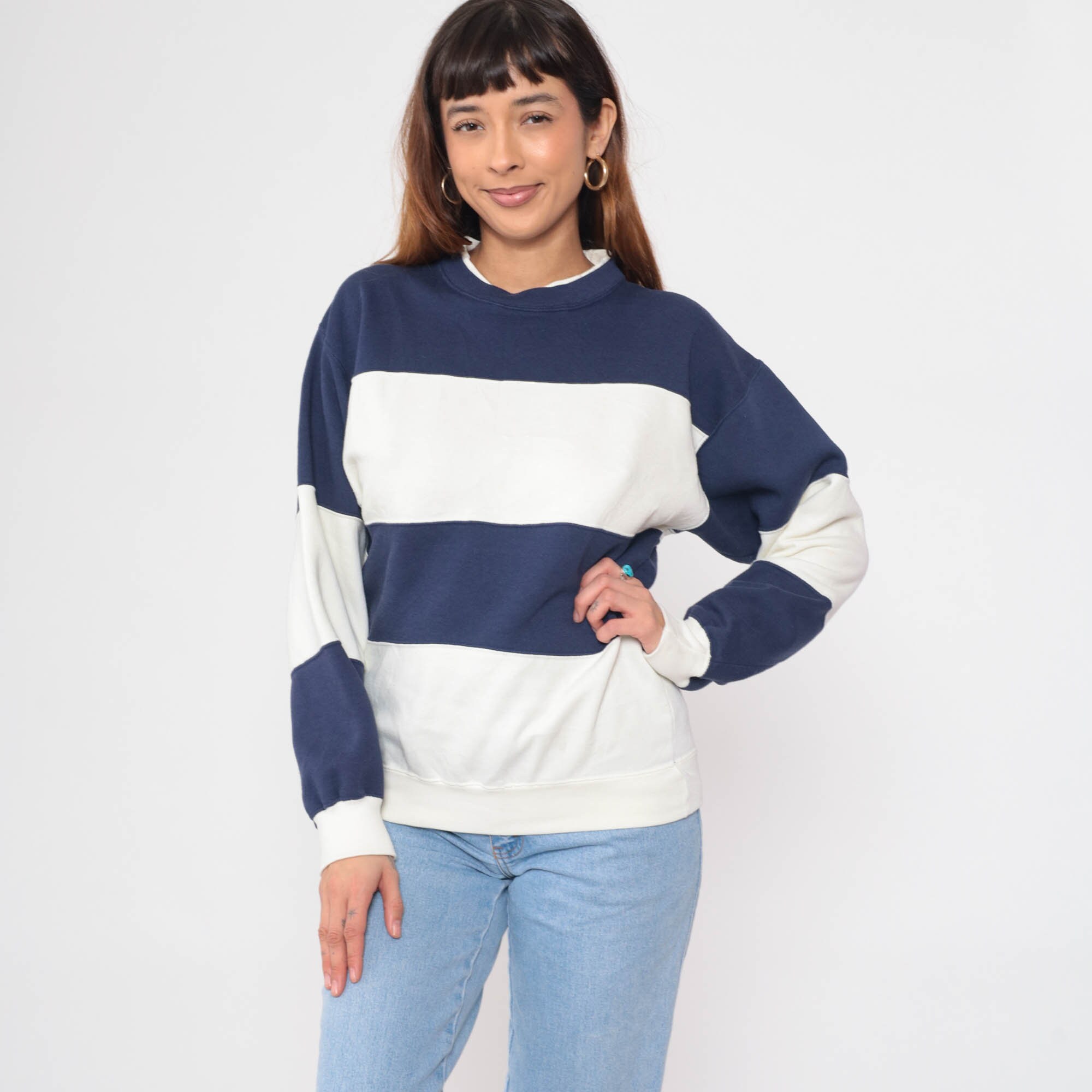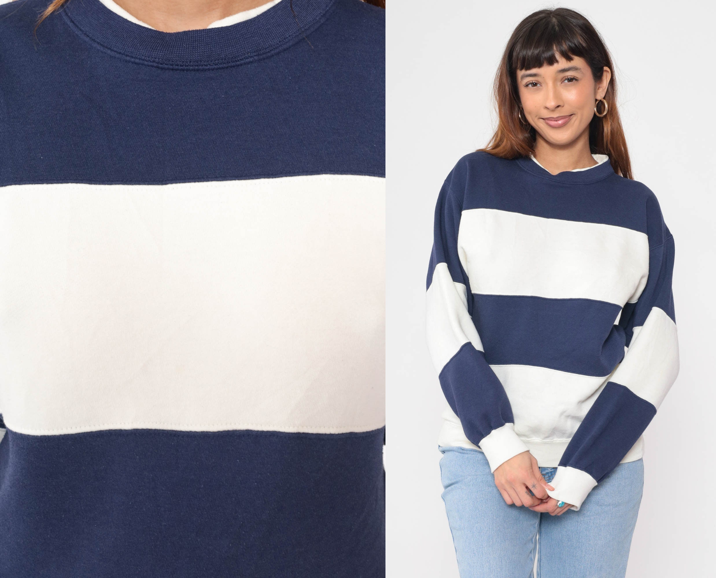 Vintage 90s sweatshirt in white and navy blue color blocking with a double collar.