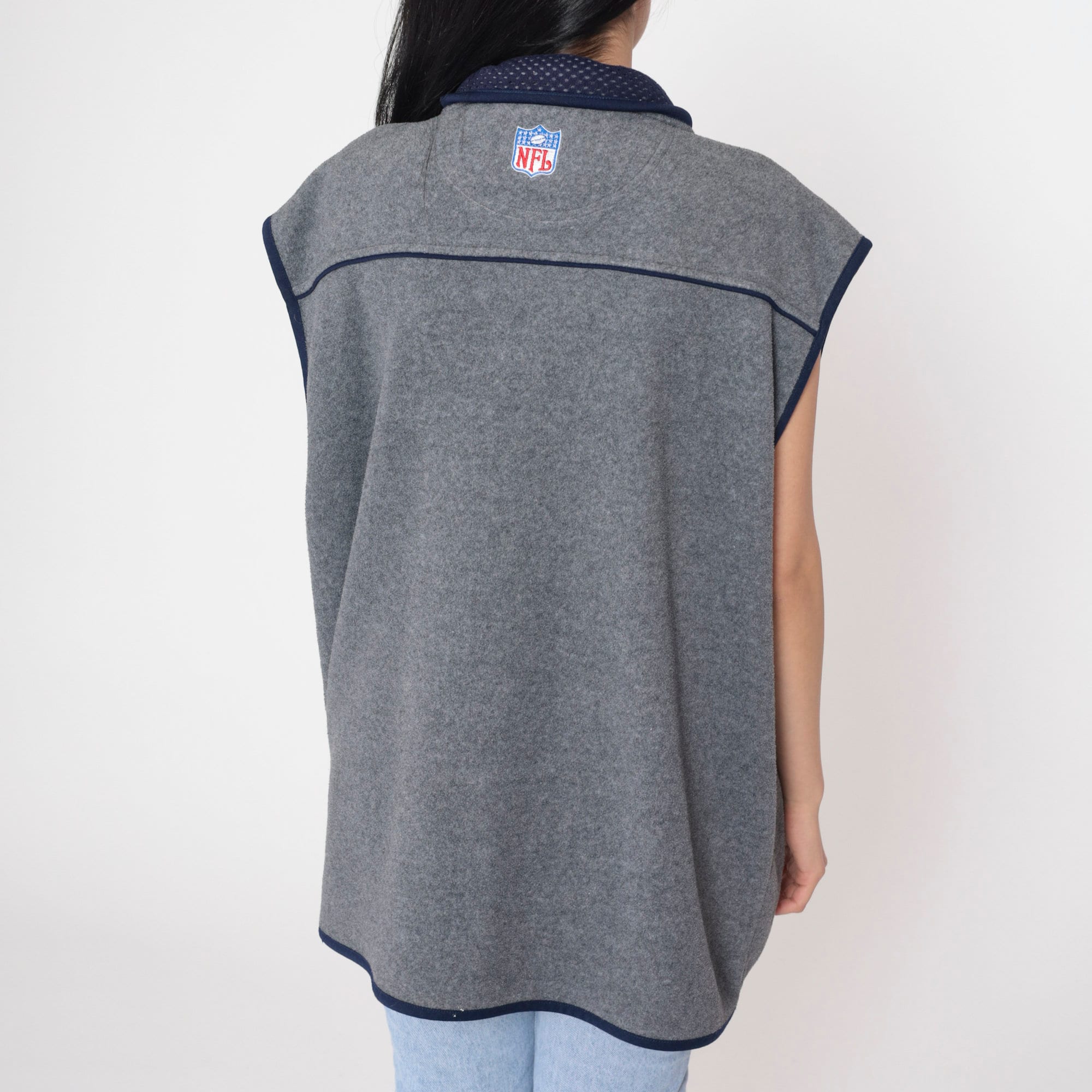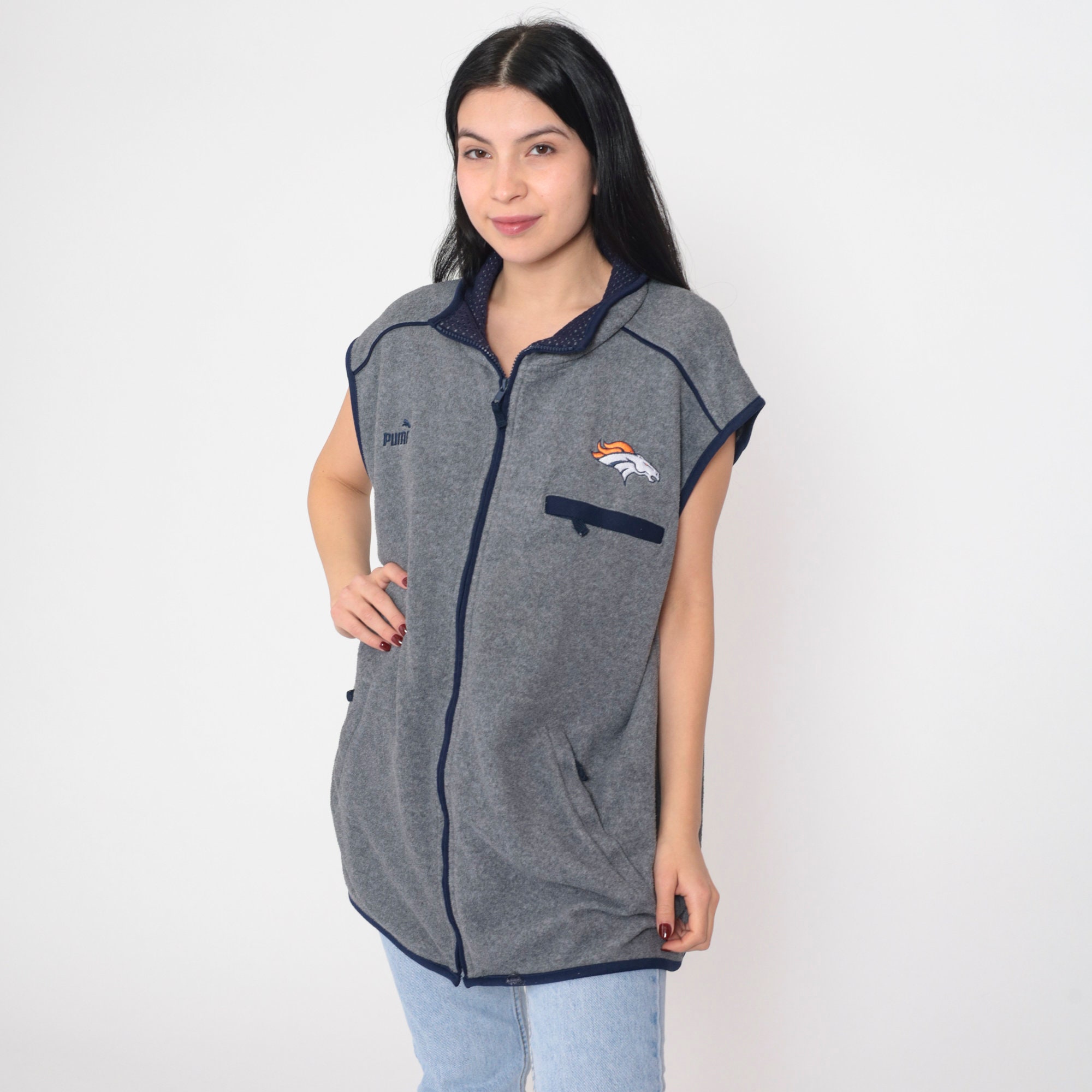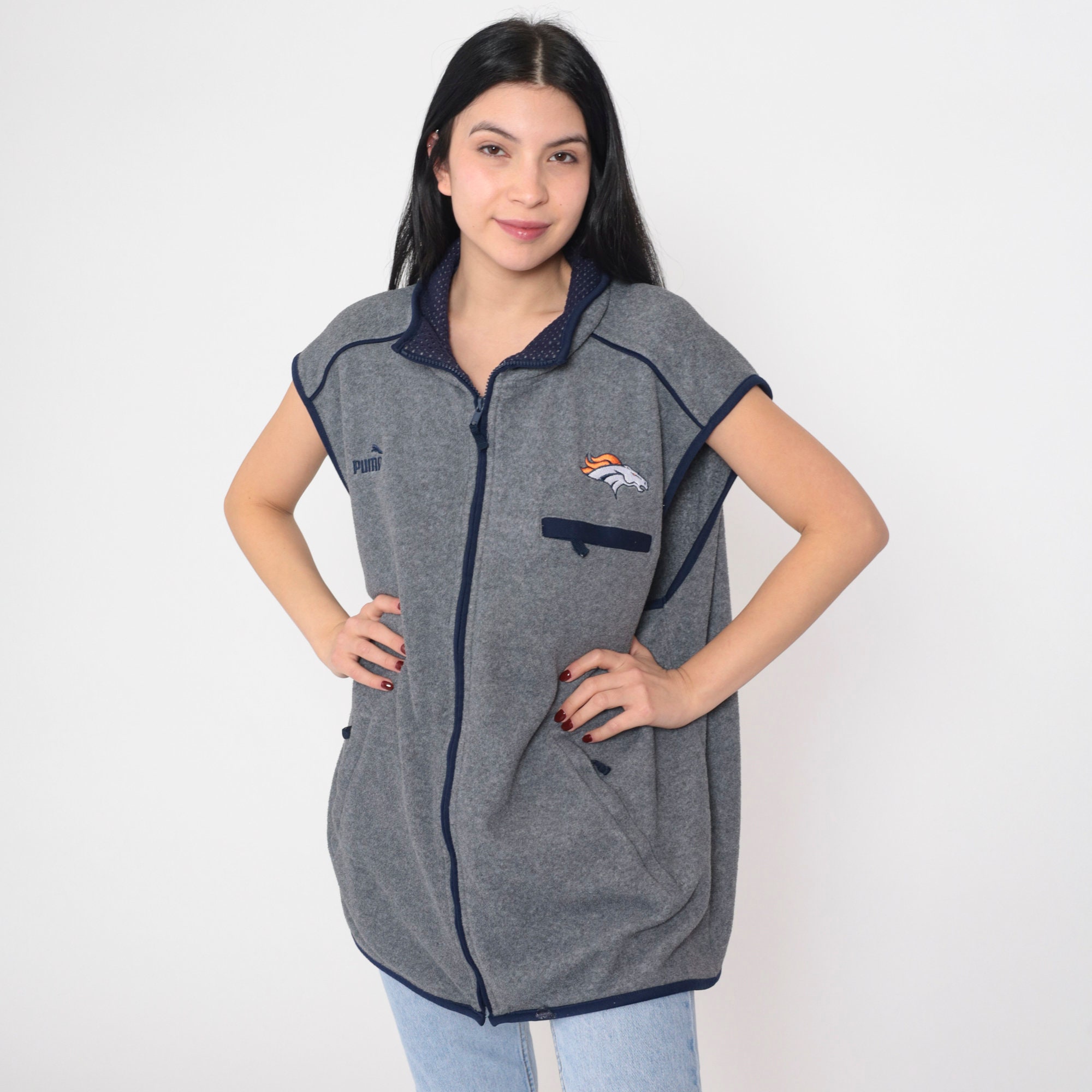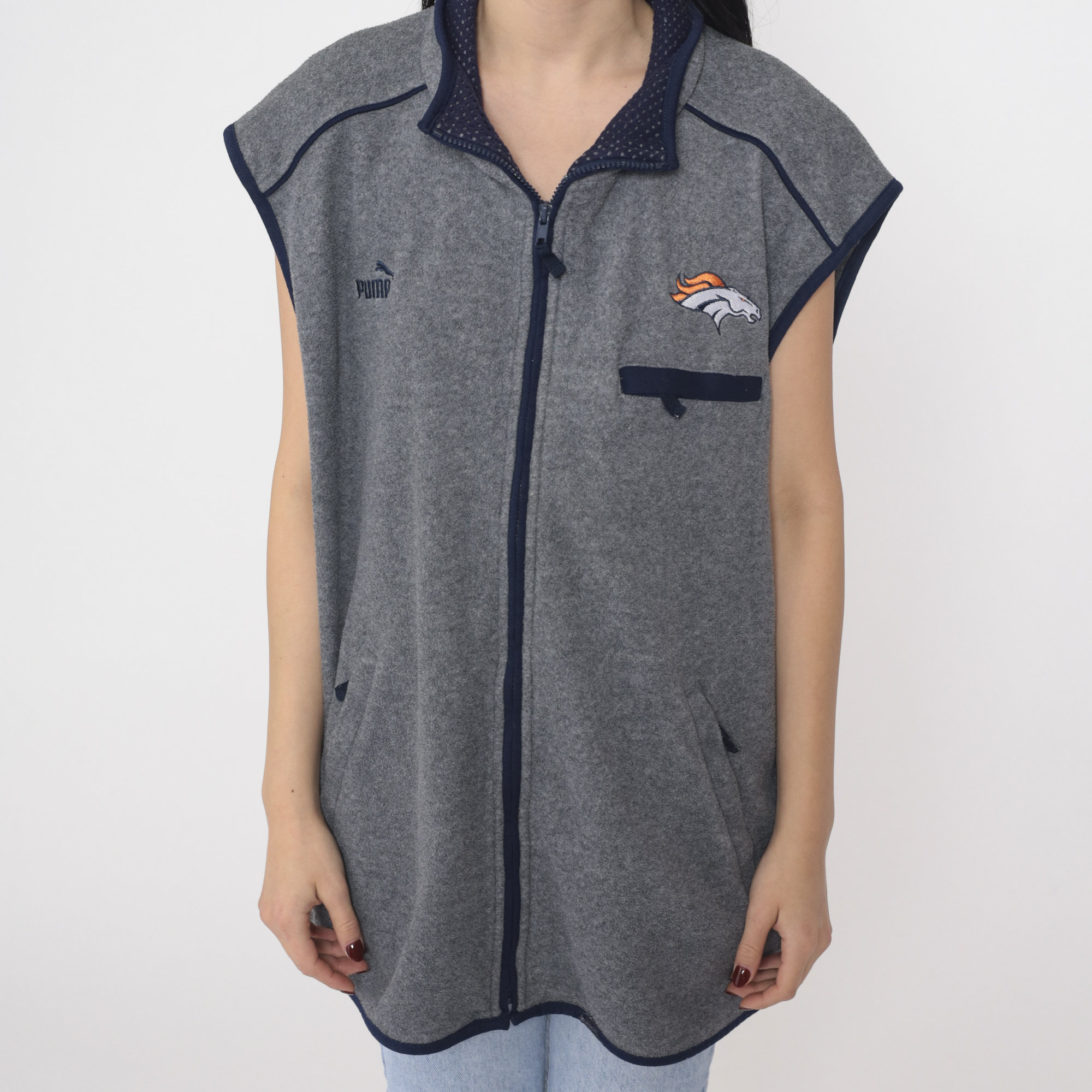 Vintage 00s vest in grey fleece with the chargers and Puma logo on the chest and the NFL logo on the back. Zips up the front.