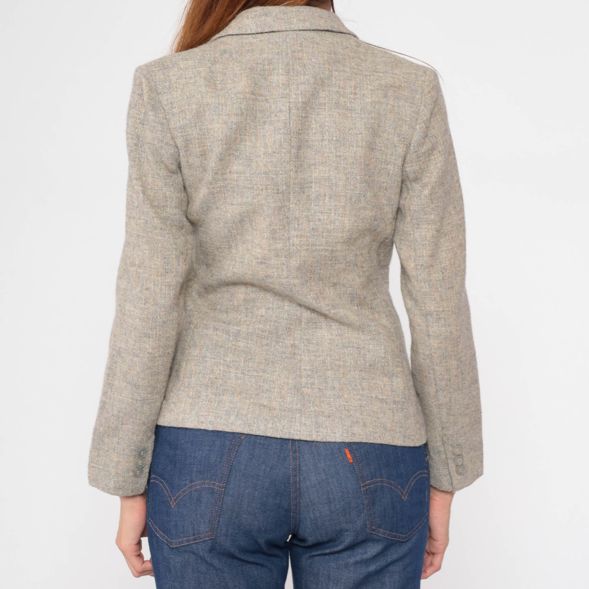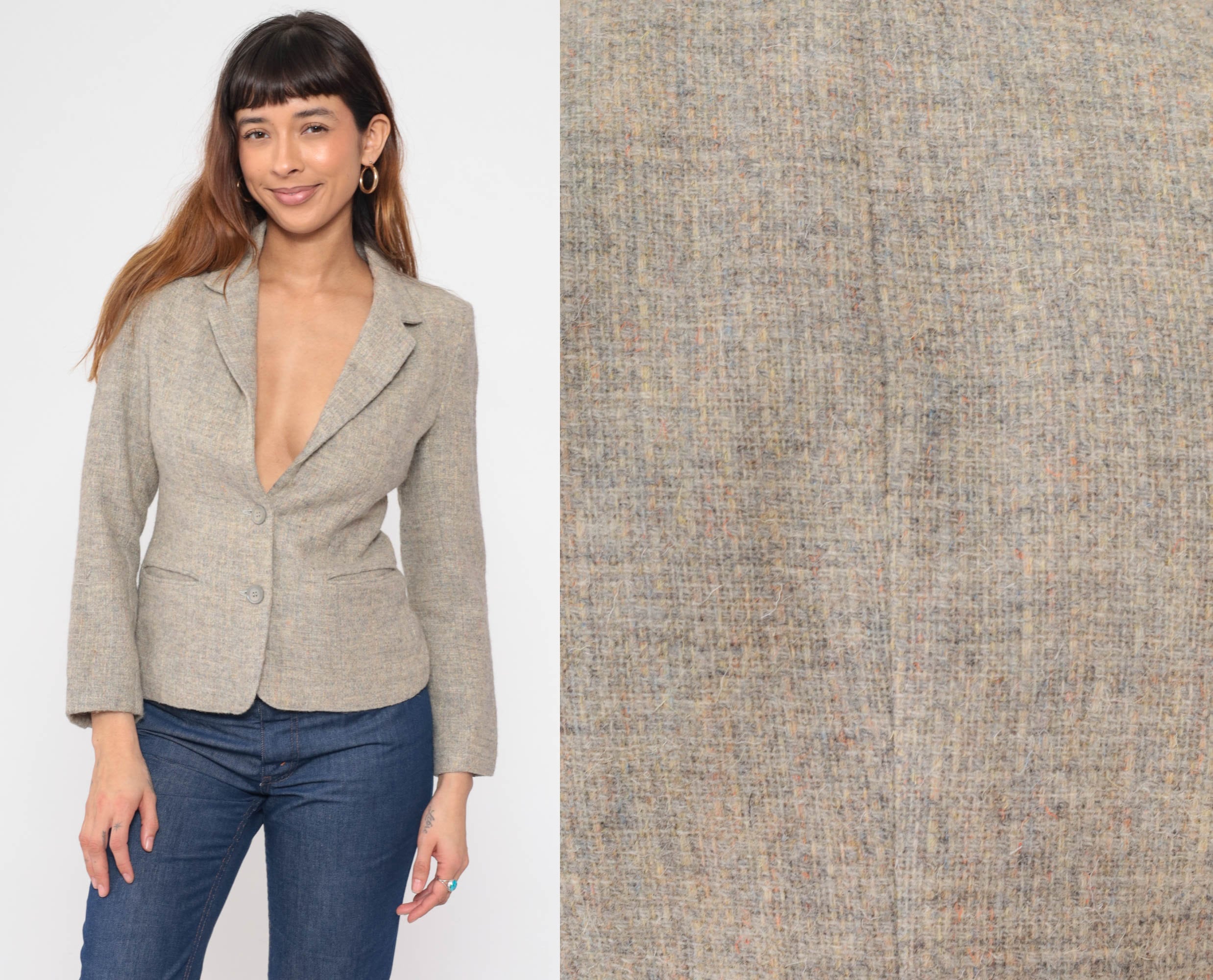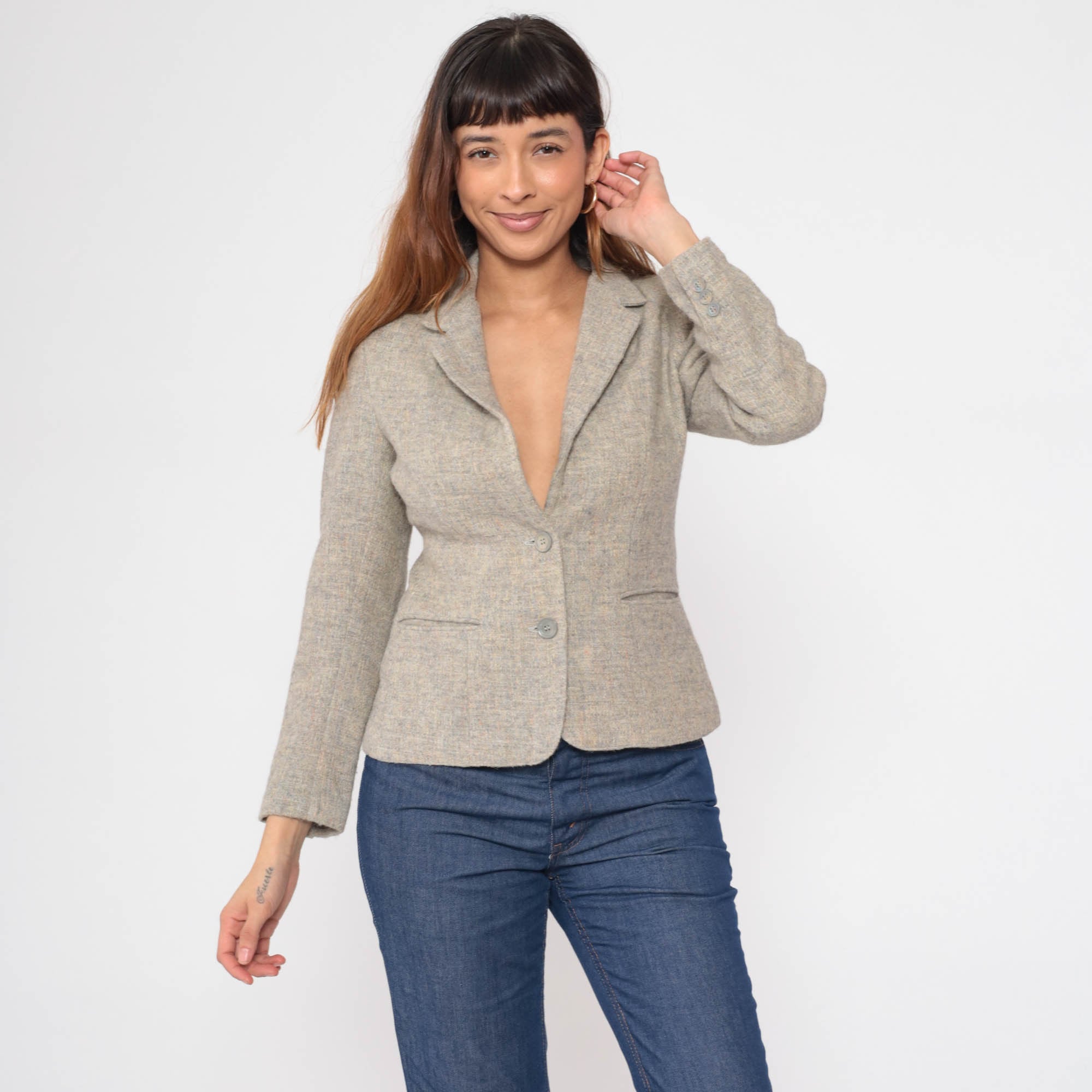 Vintage 80s blazer jacket in flecked wool with a tailored fit and a v neck.
