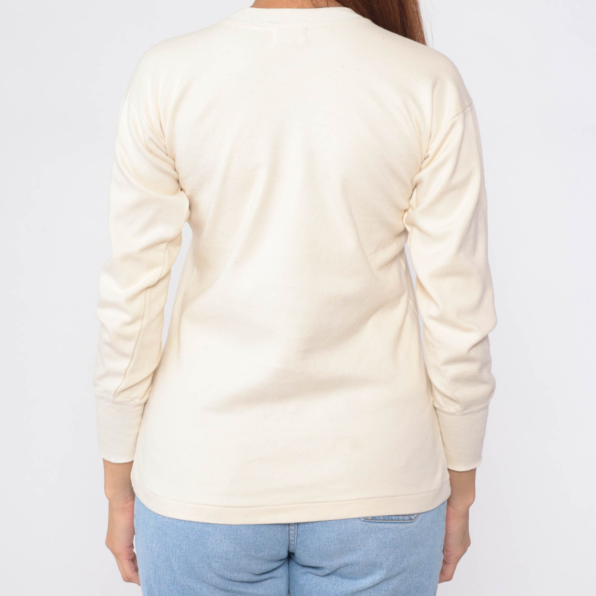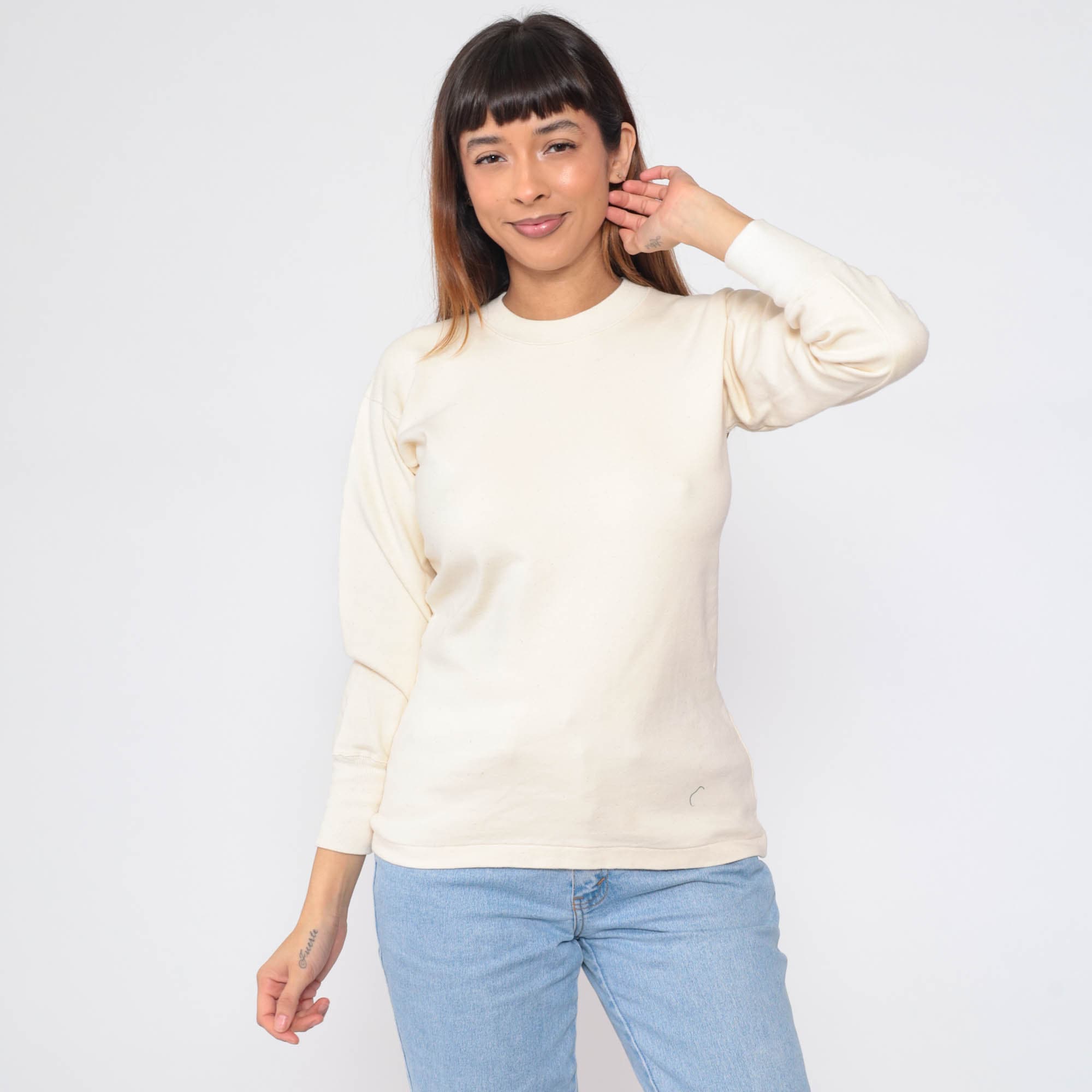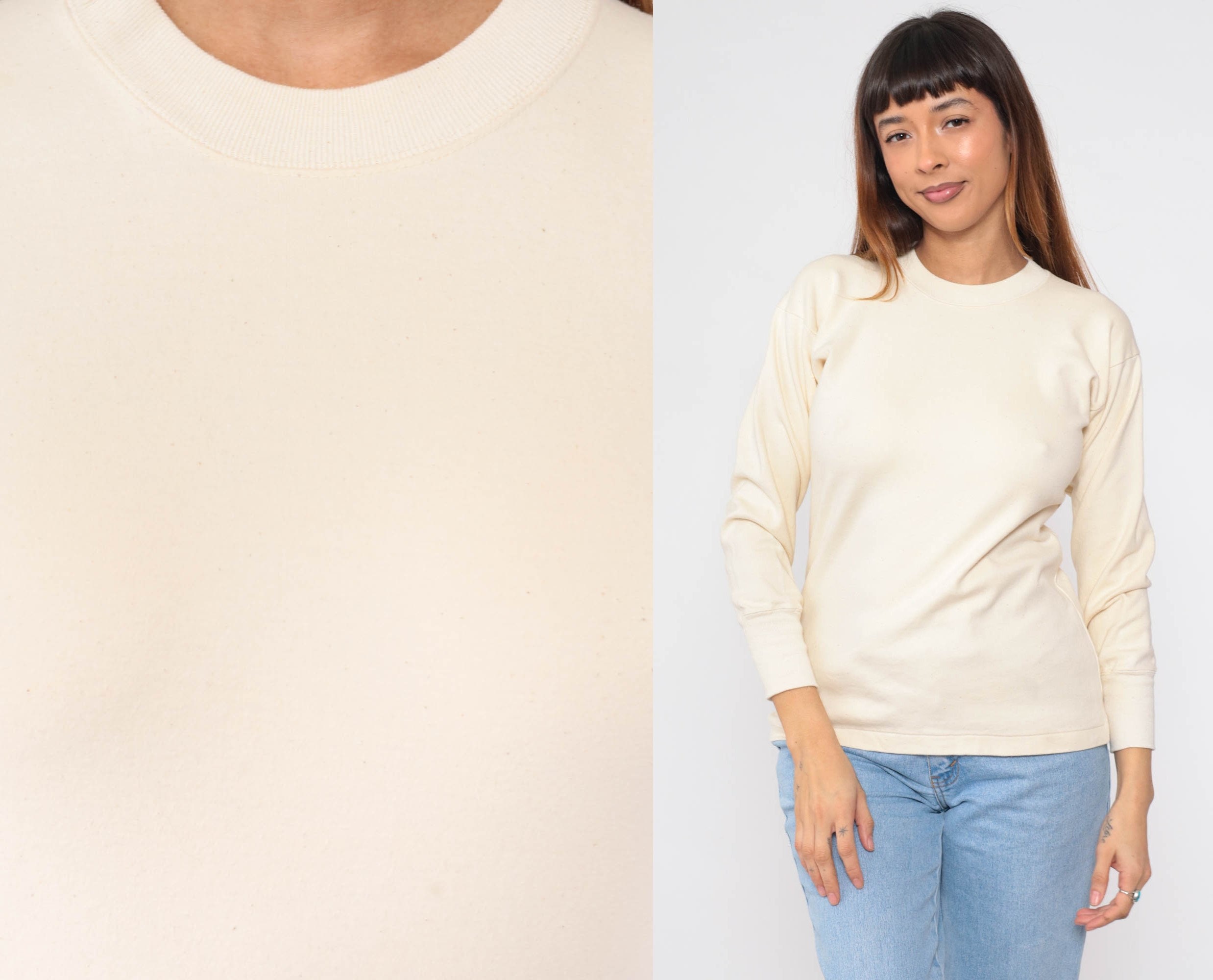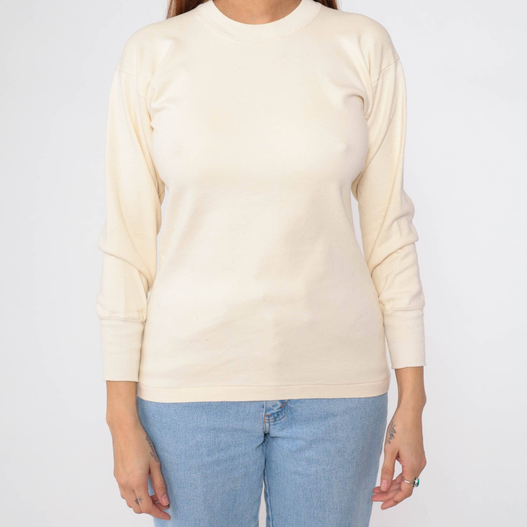 Vintage 80s shirt in solid cream with long sleeves and a crewneck.