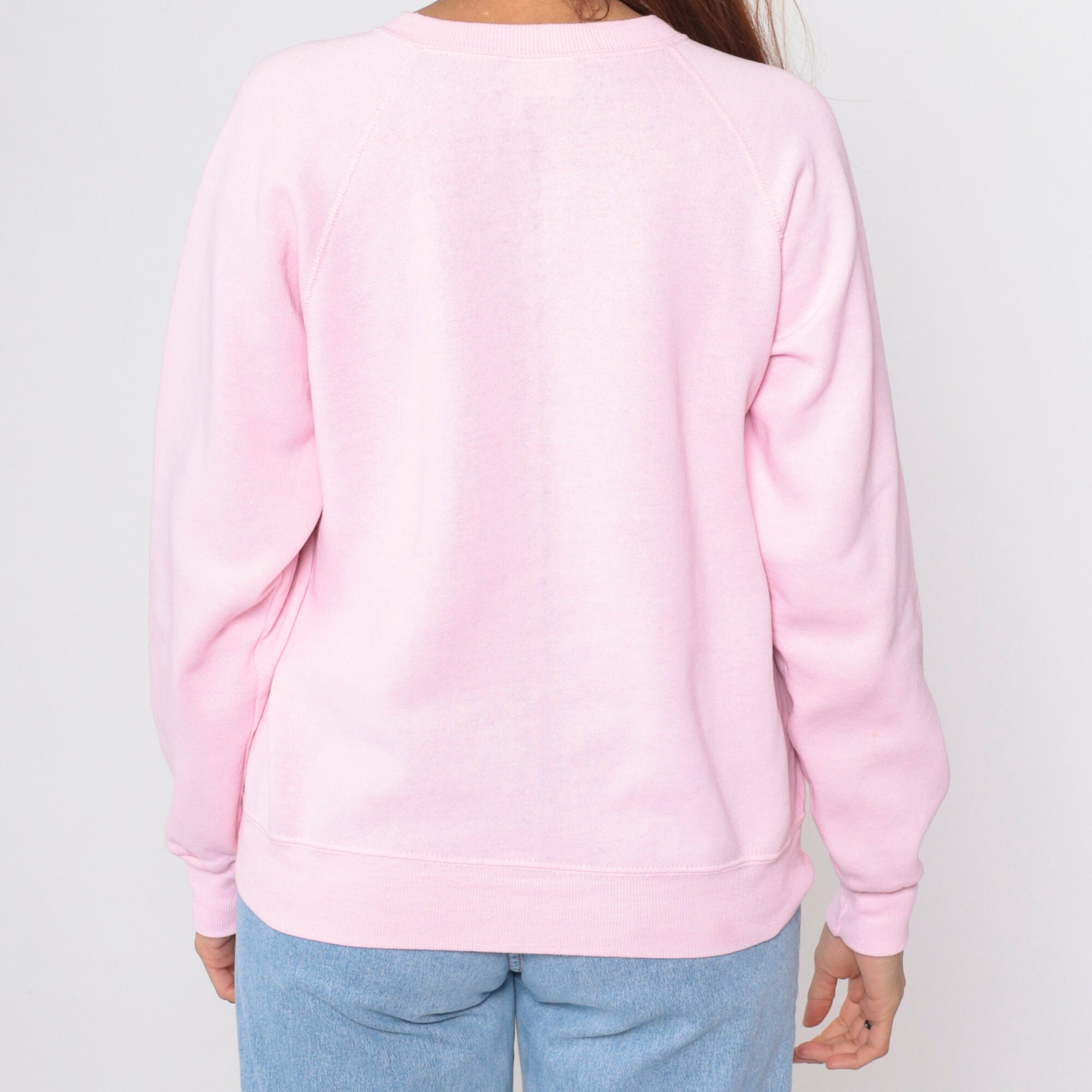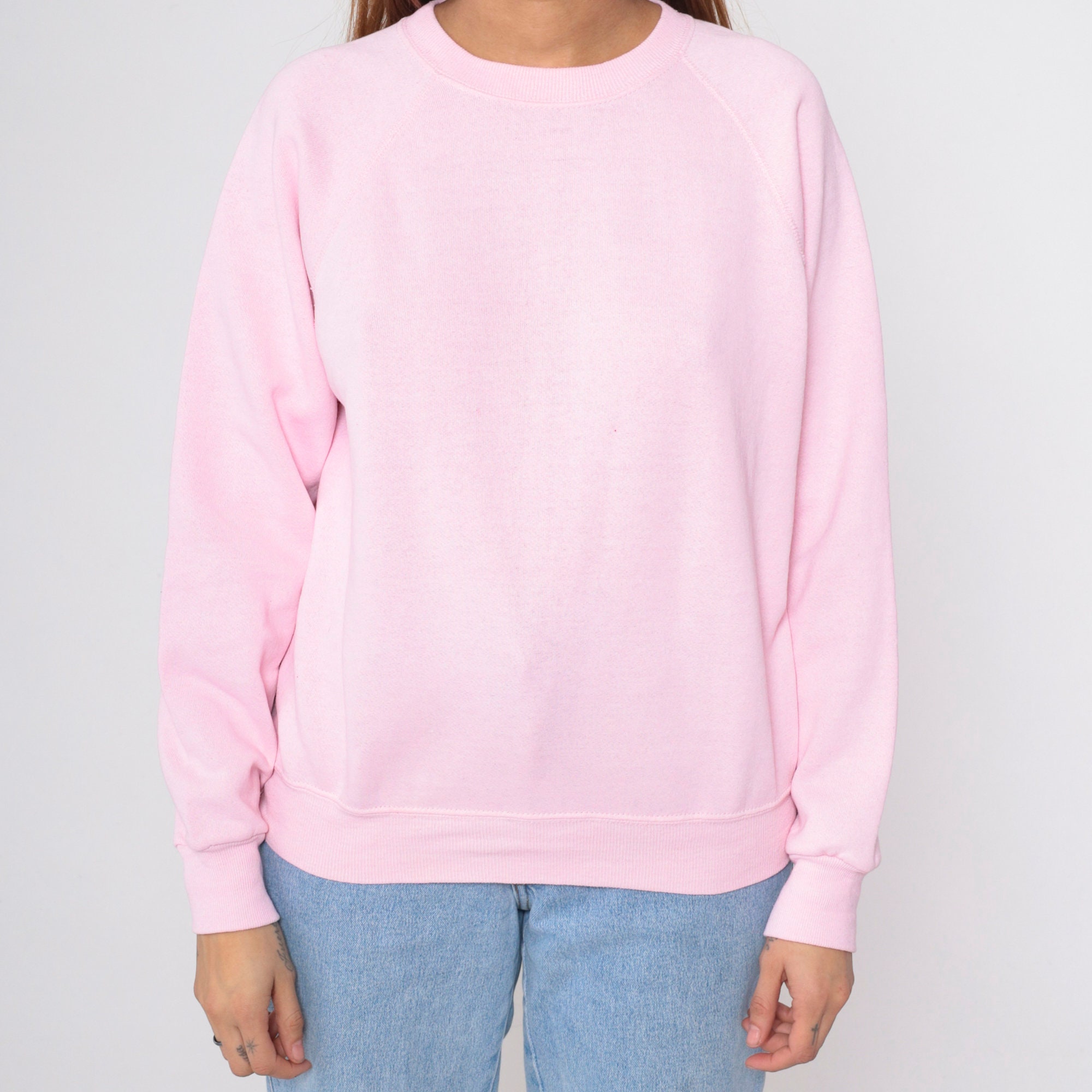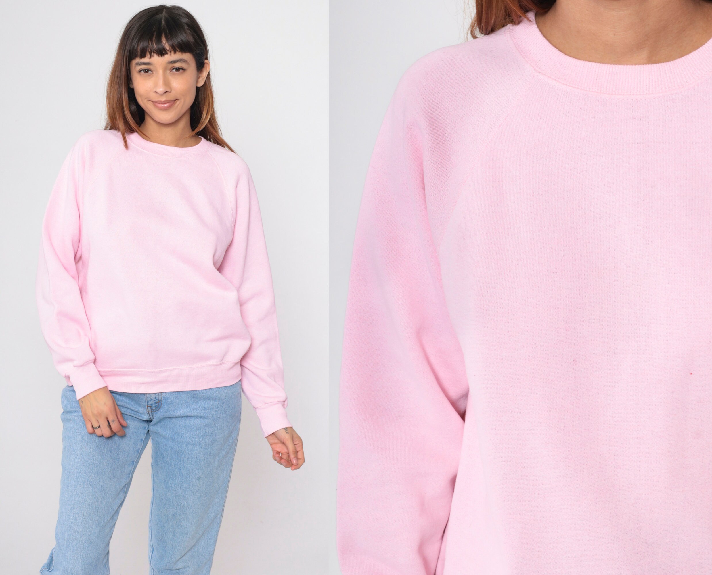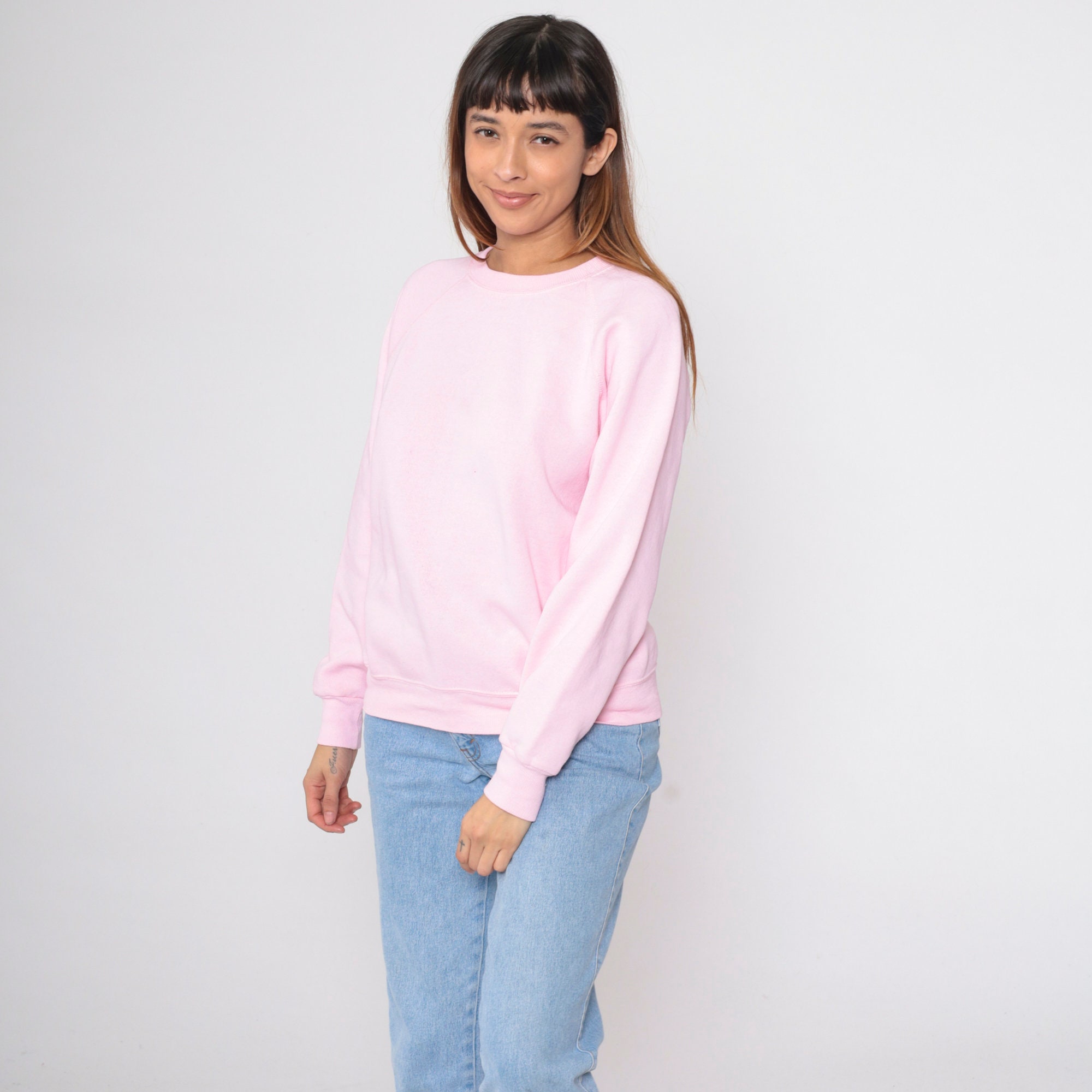 Vintage 80s sweatshirt in baby pink with raglan sleeves. Slouchy fit.