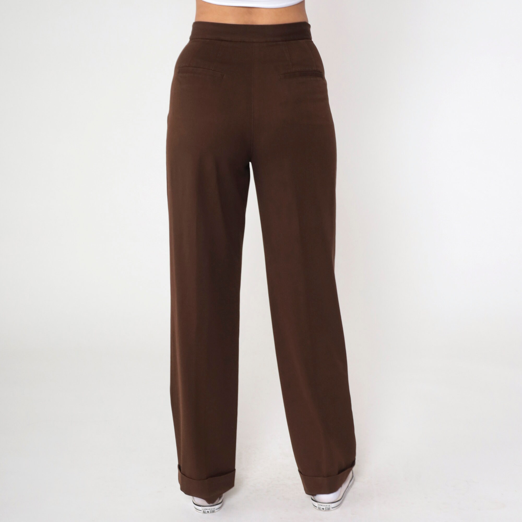 Vintage 00s pants in brown with a high waist and a cuffed straight leg.