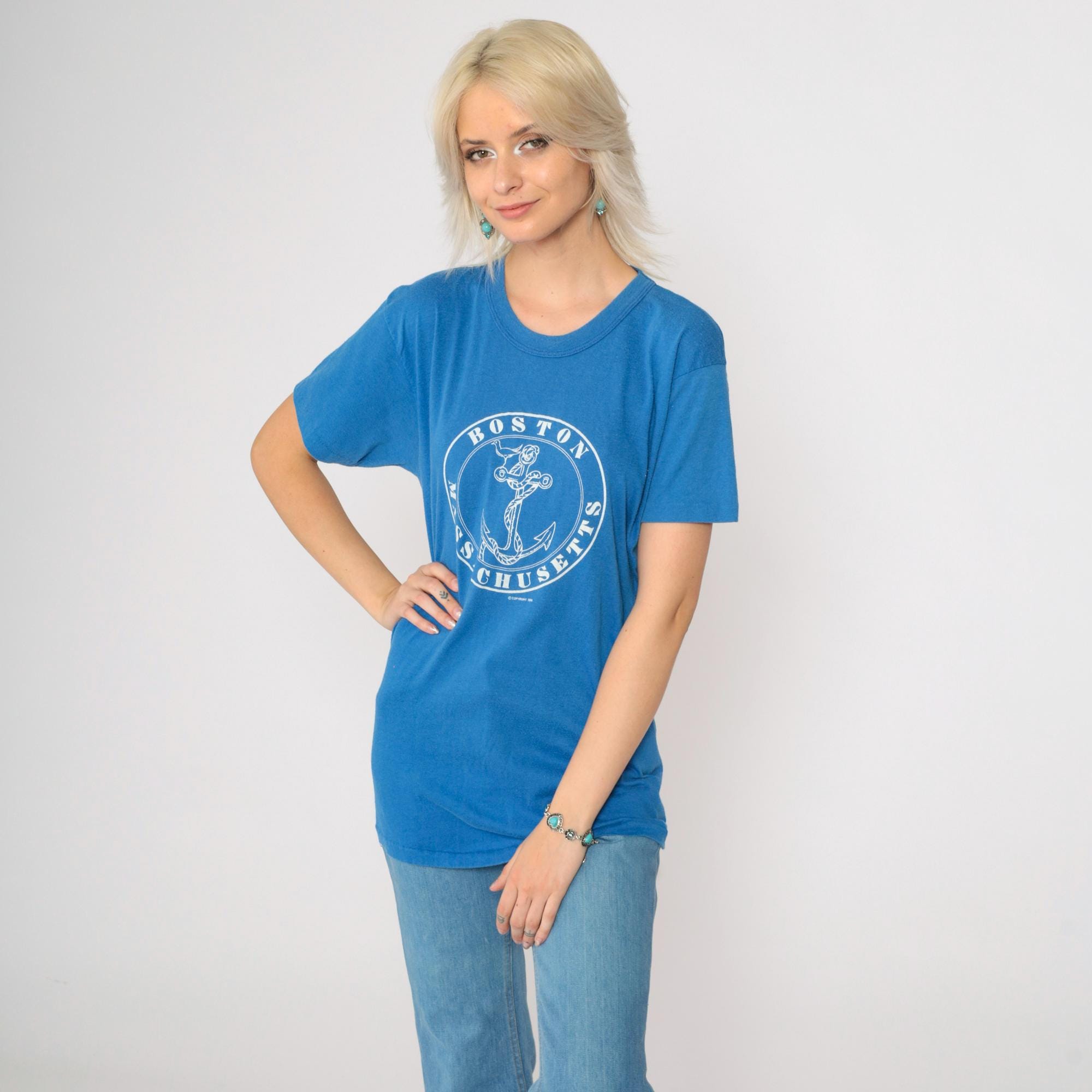 Vintage 80s t shirt with a Boston, Massachusetts anchor graphic circa 1984.