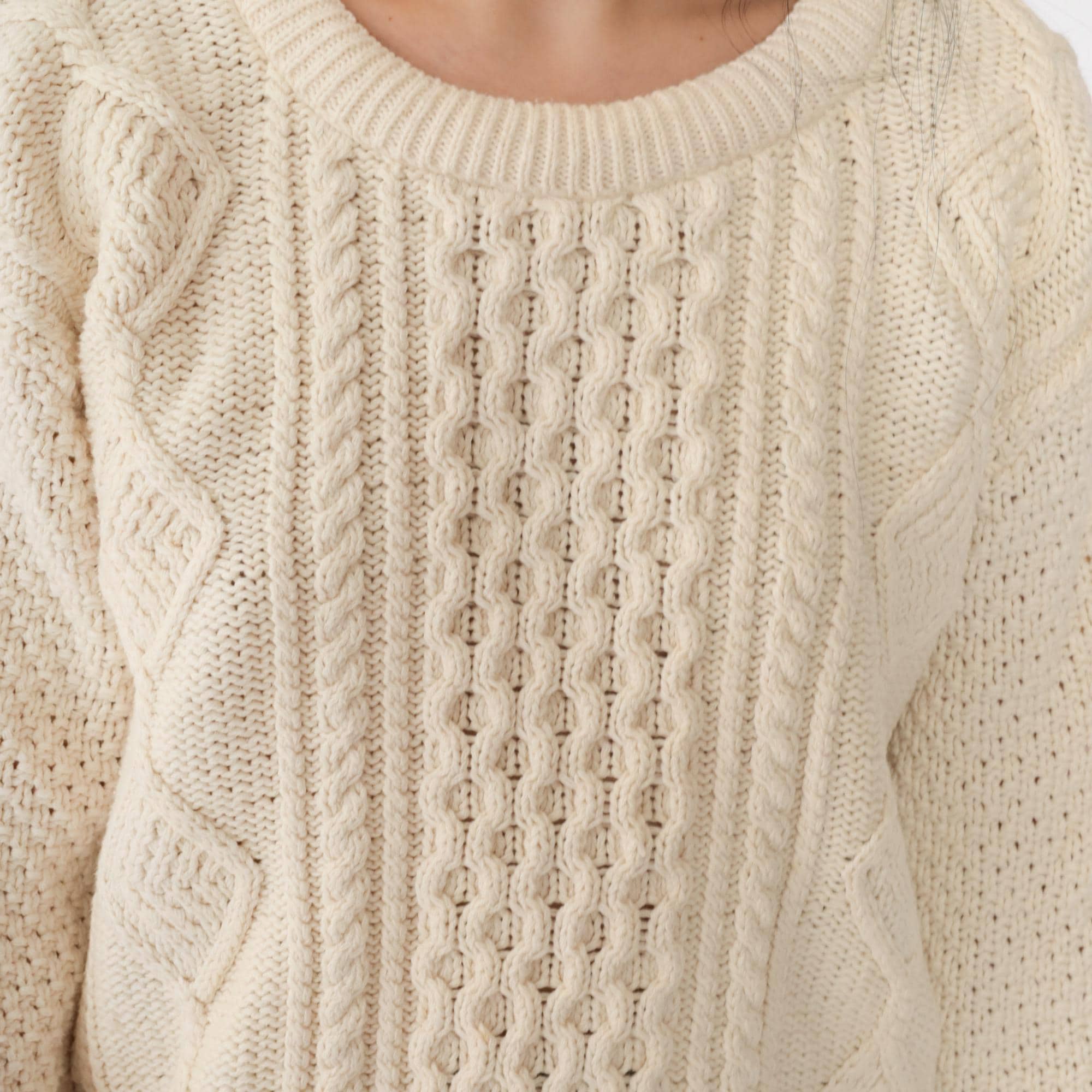 Vintage 90s sweater by American Eagle Outfitters in cream cable knit with a diamond design.