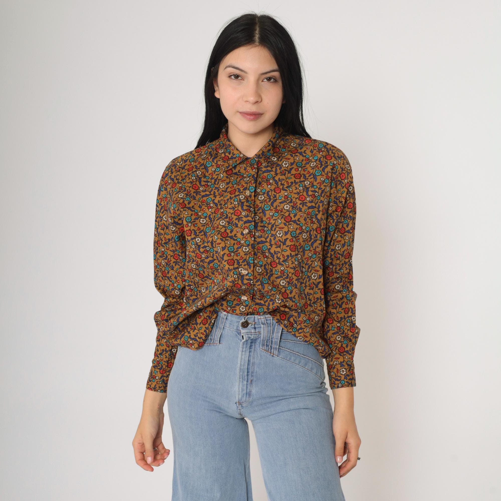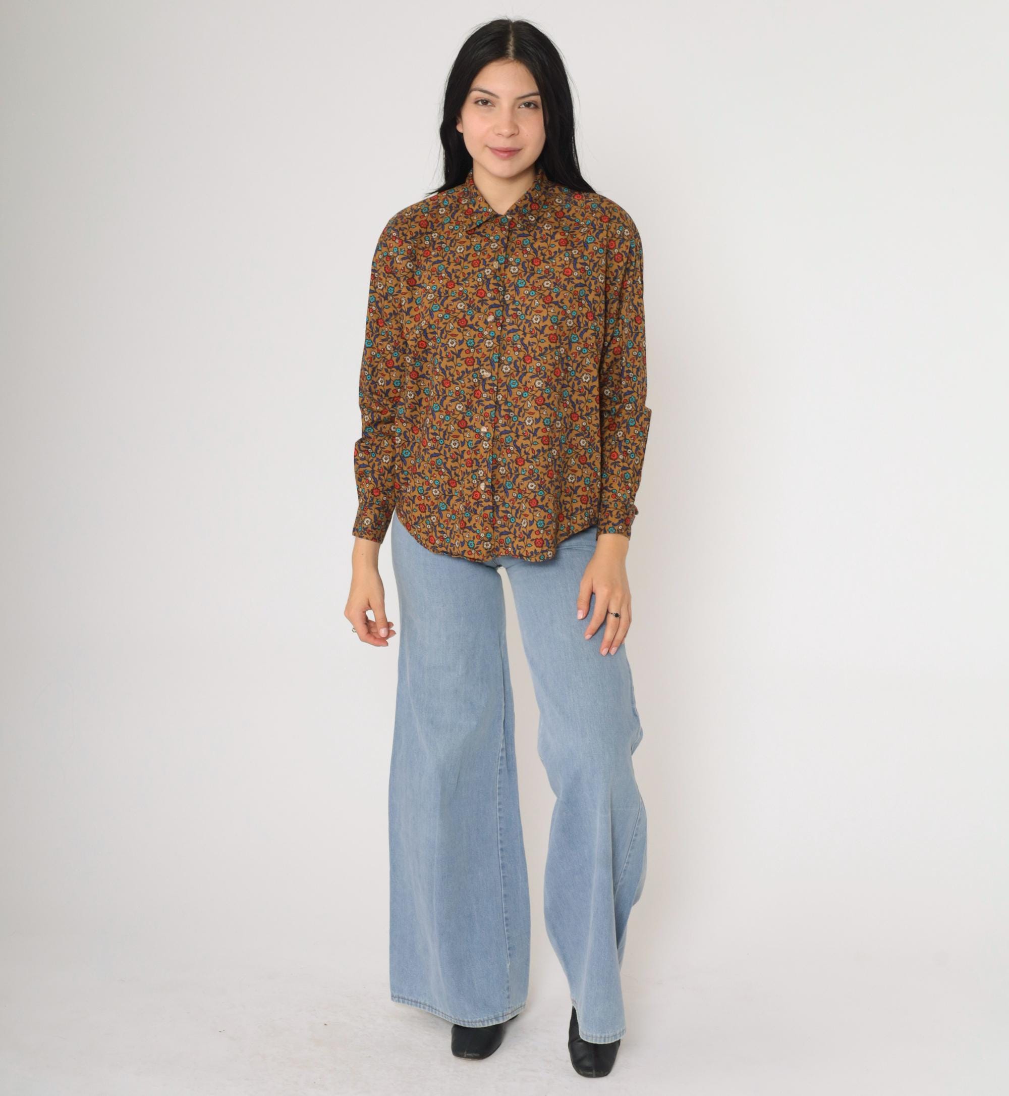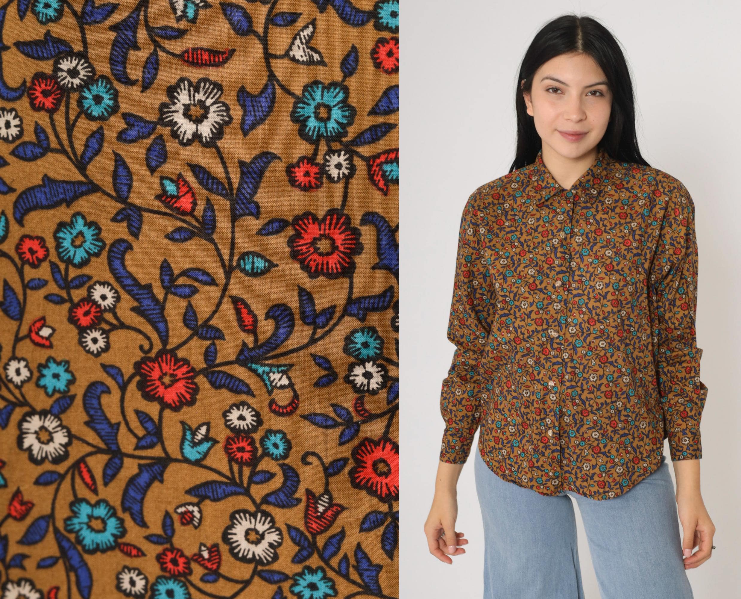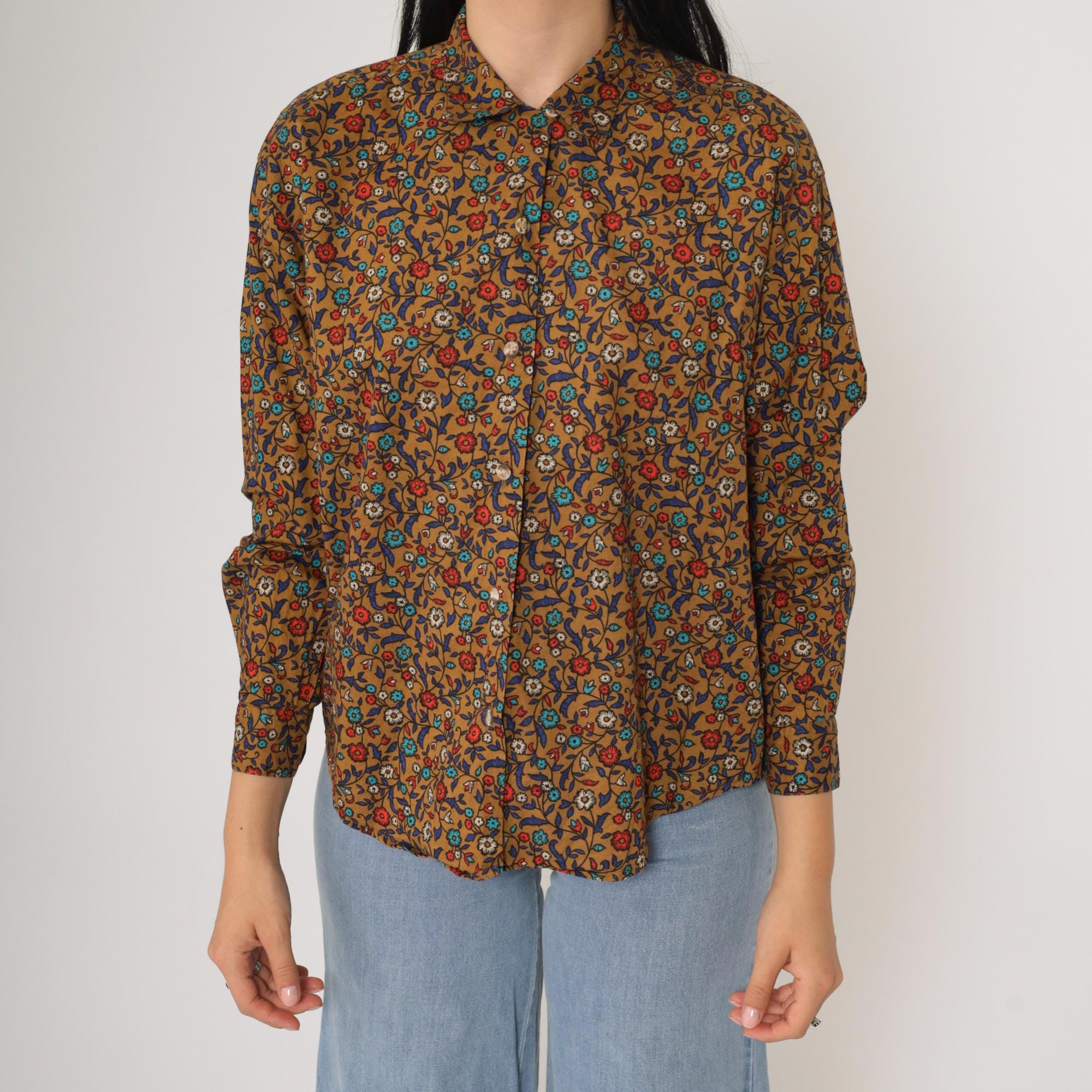 Vintage 00s shirt with a floral print. It has long sleeves and buttons up the front.
