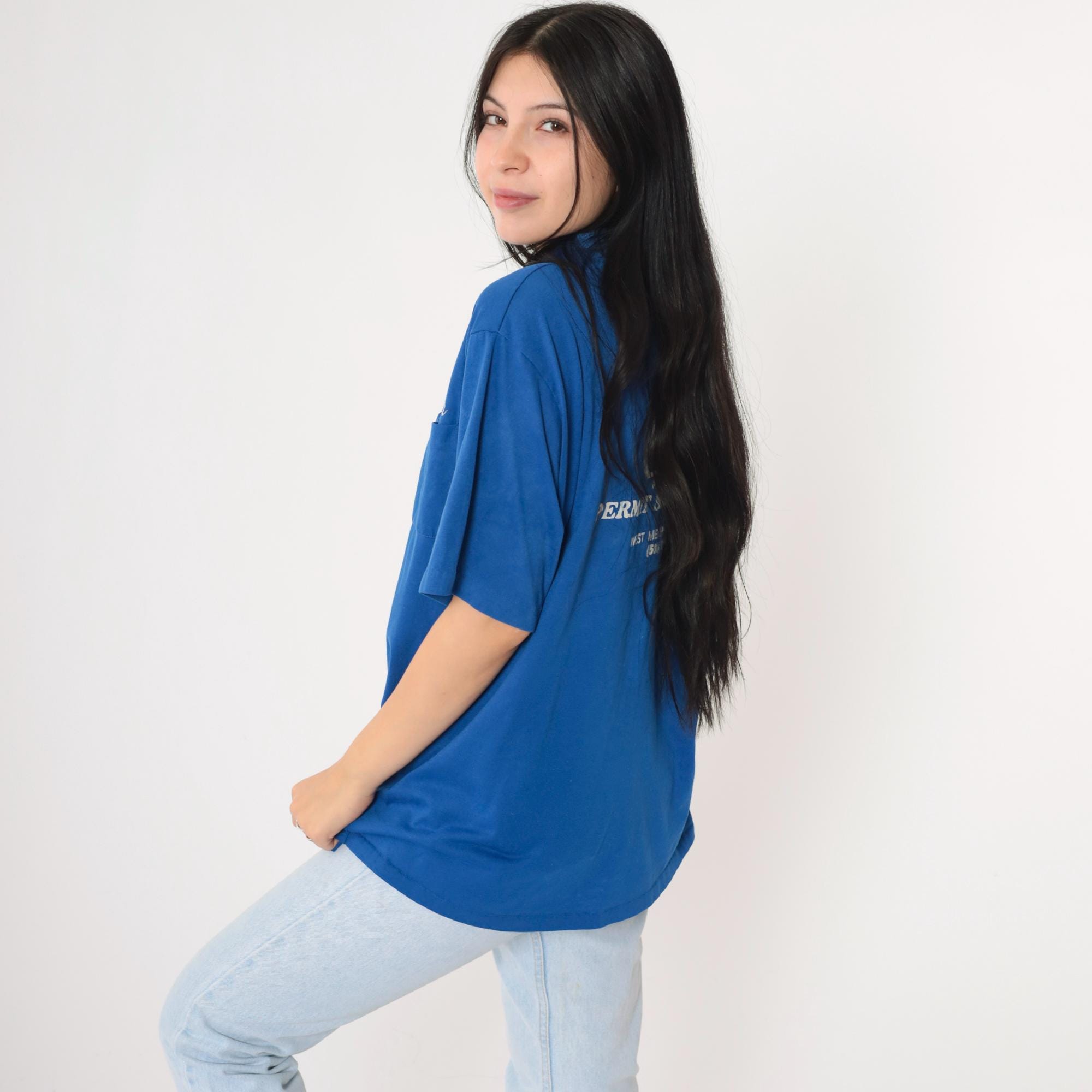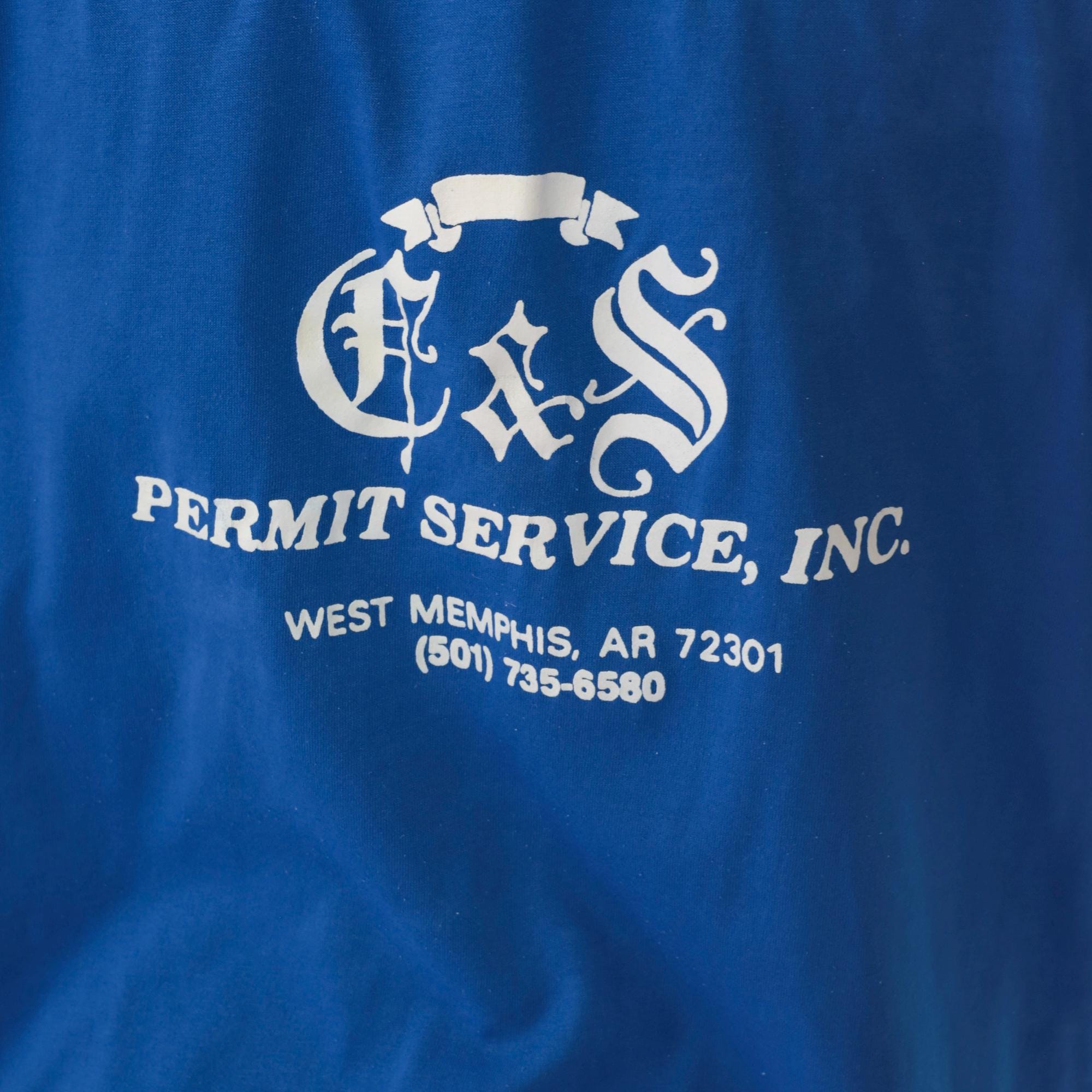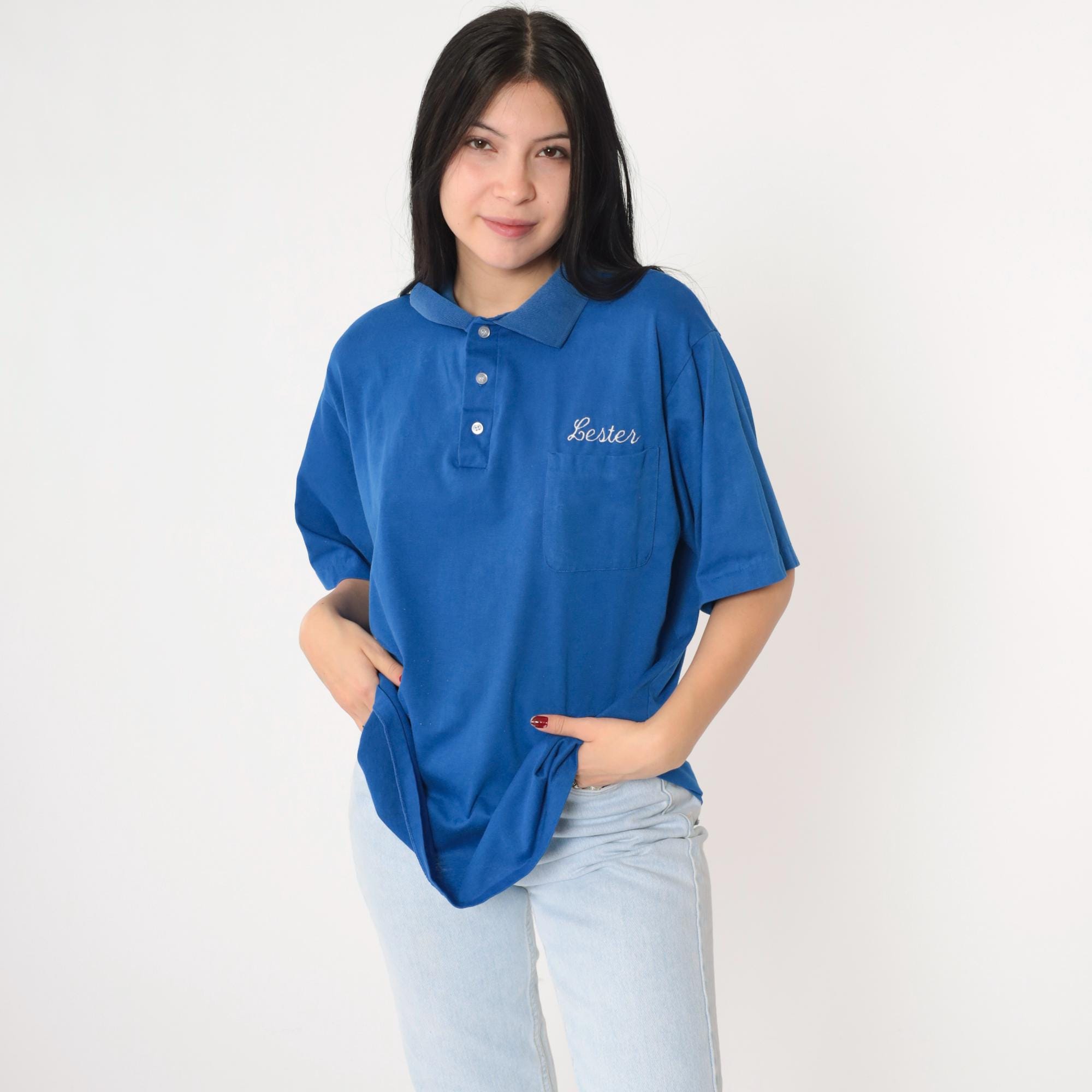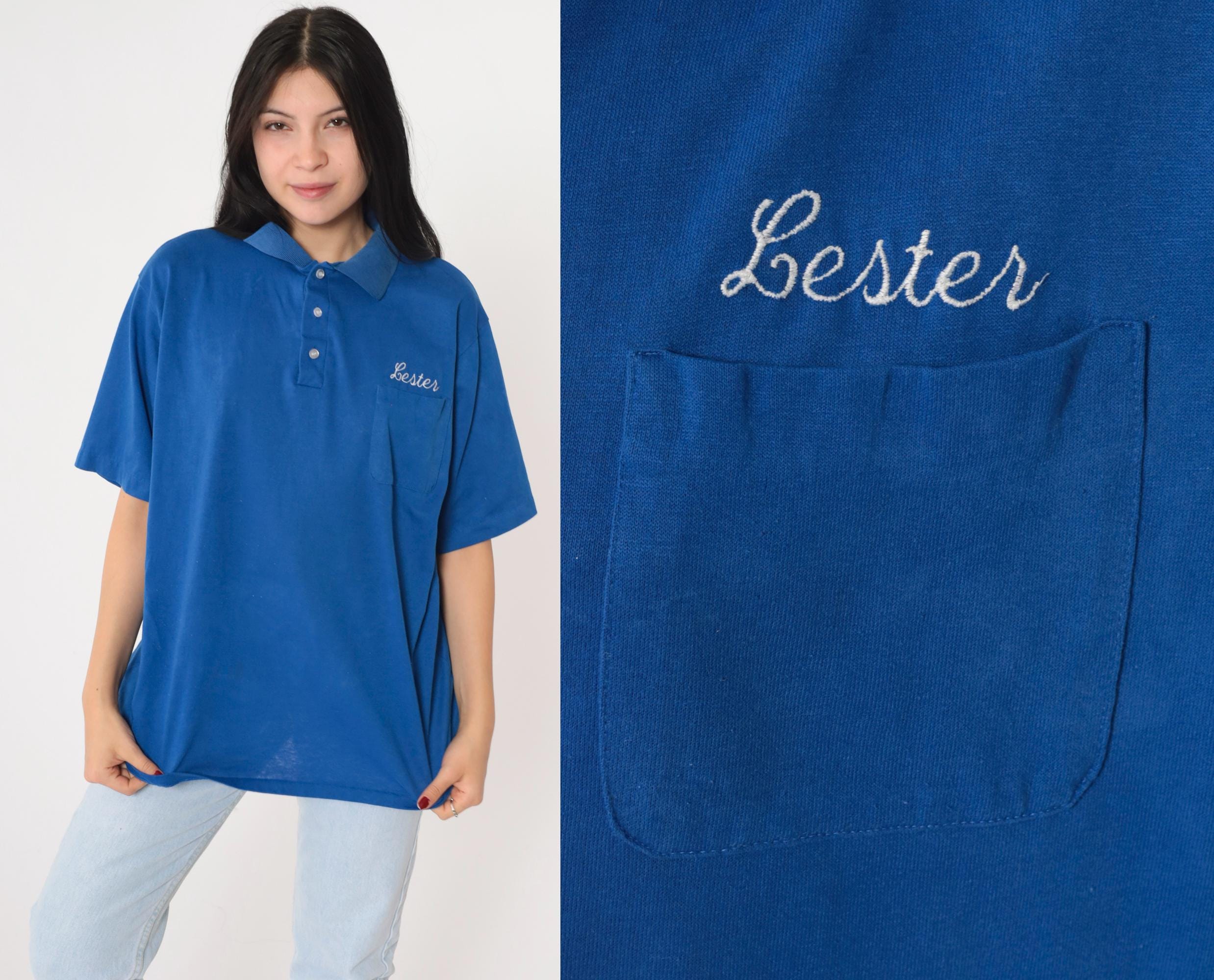 Vintage 90s polo shirt in blue with Lester embroidered on the chest and C&S Permit Service inc on the back. Collared with short sleeves and buttons up the chest.
