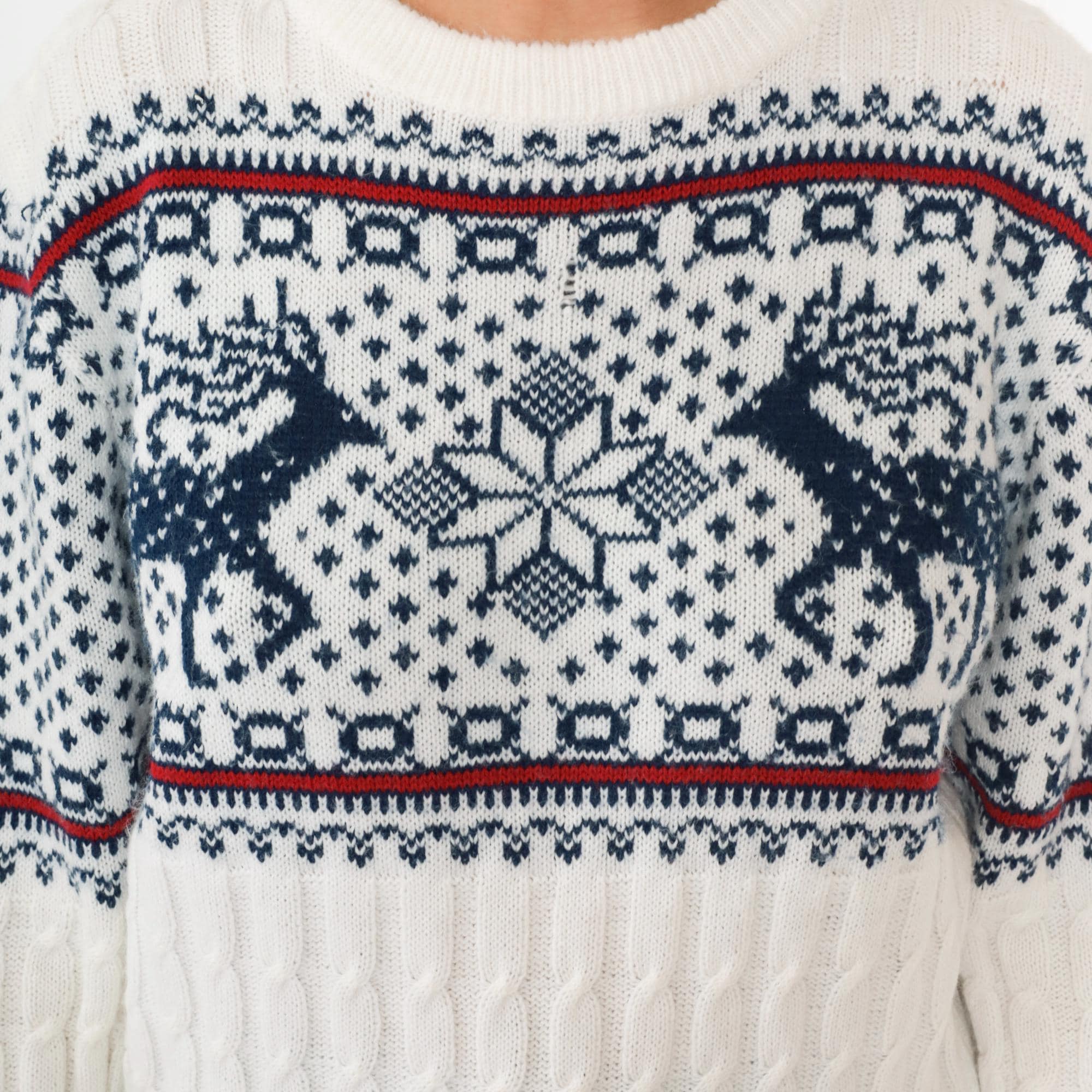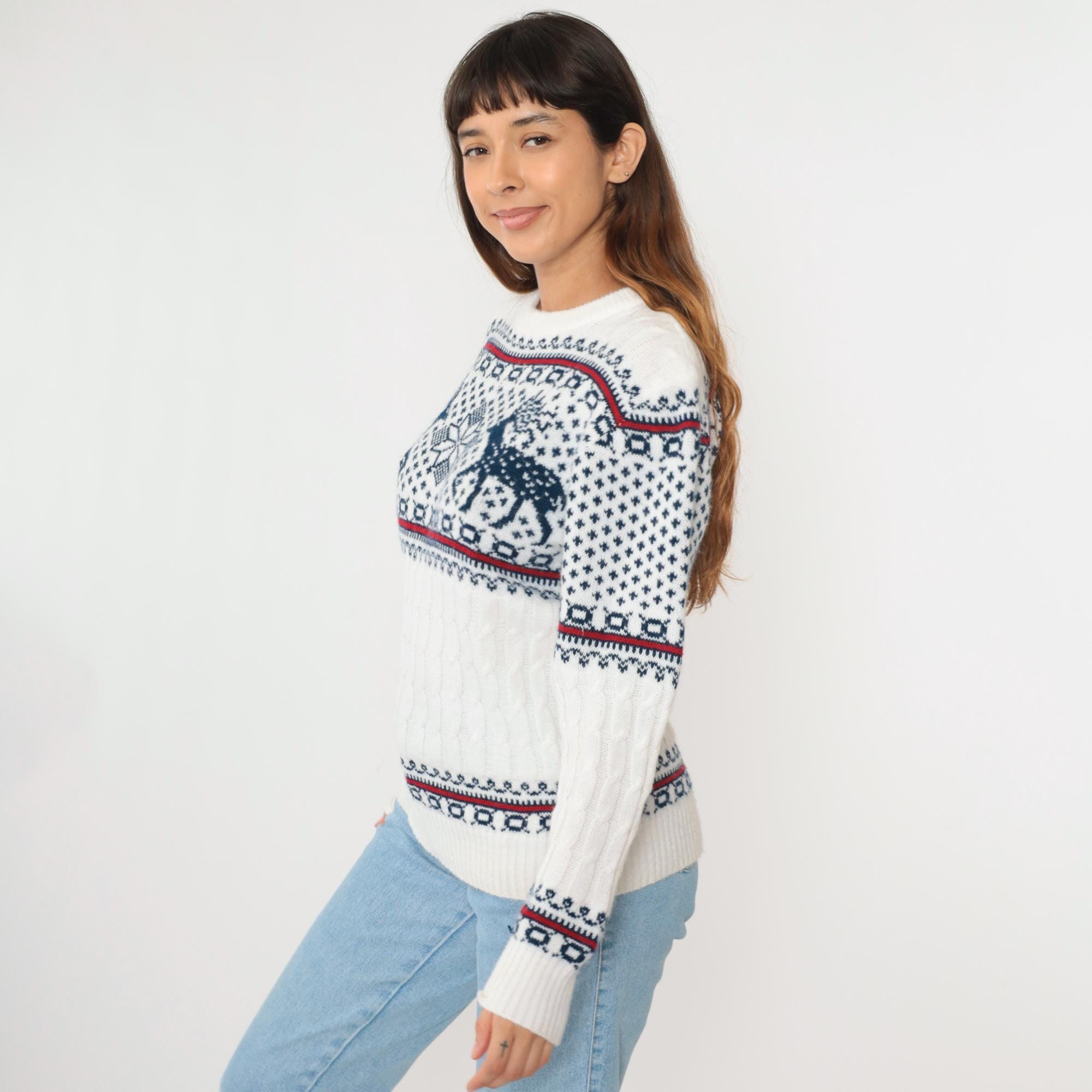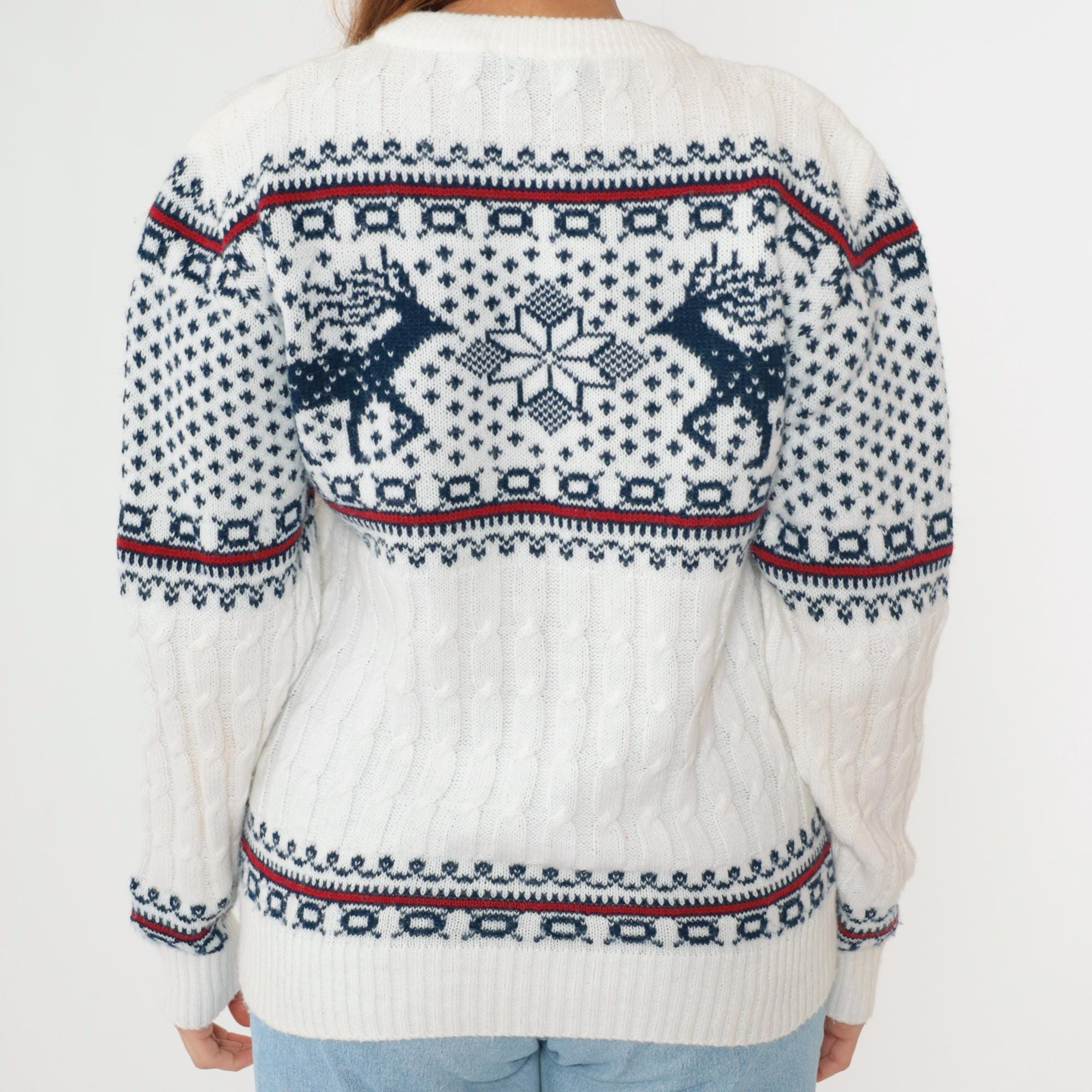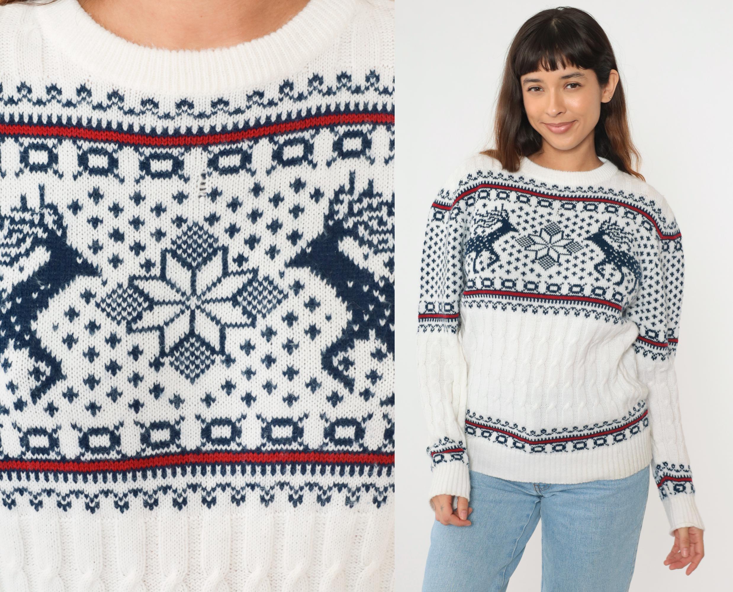 Vintage 80s sweater with a Fair Isle deer and snowflake design. Slouchy fit with a crewneck.