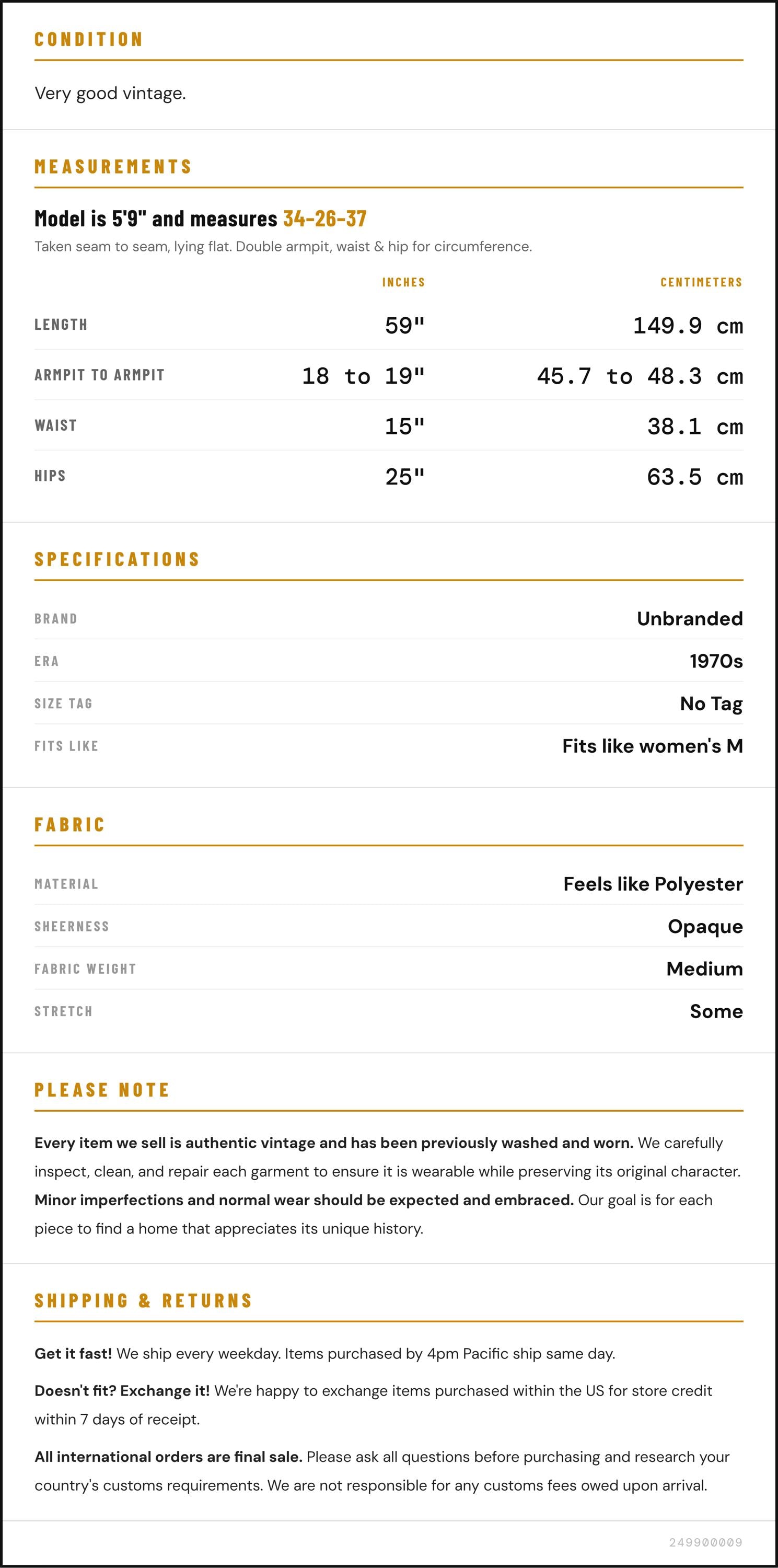 ✨ Please see measurements and condition below. Every garment we sell is authentic vintage and one-of-a-kind! You will receive the exact item photographed.
