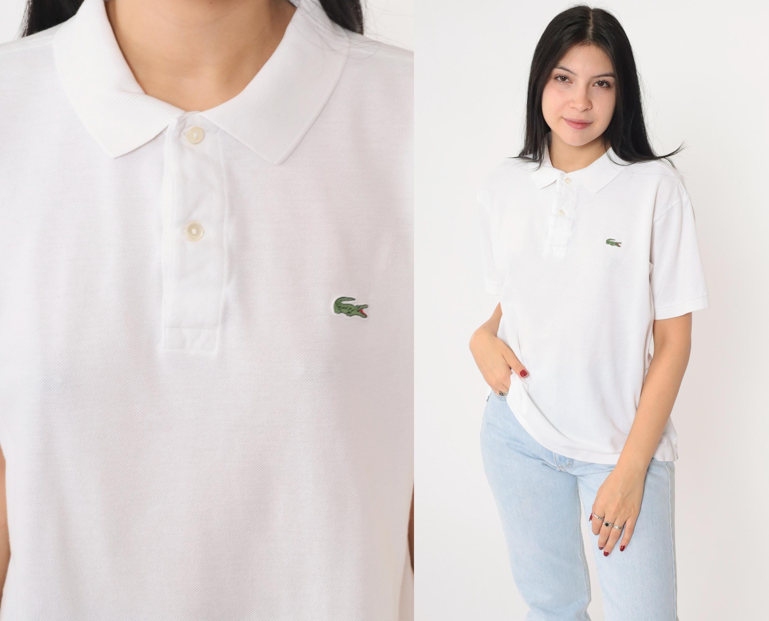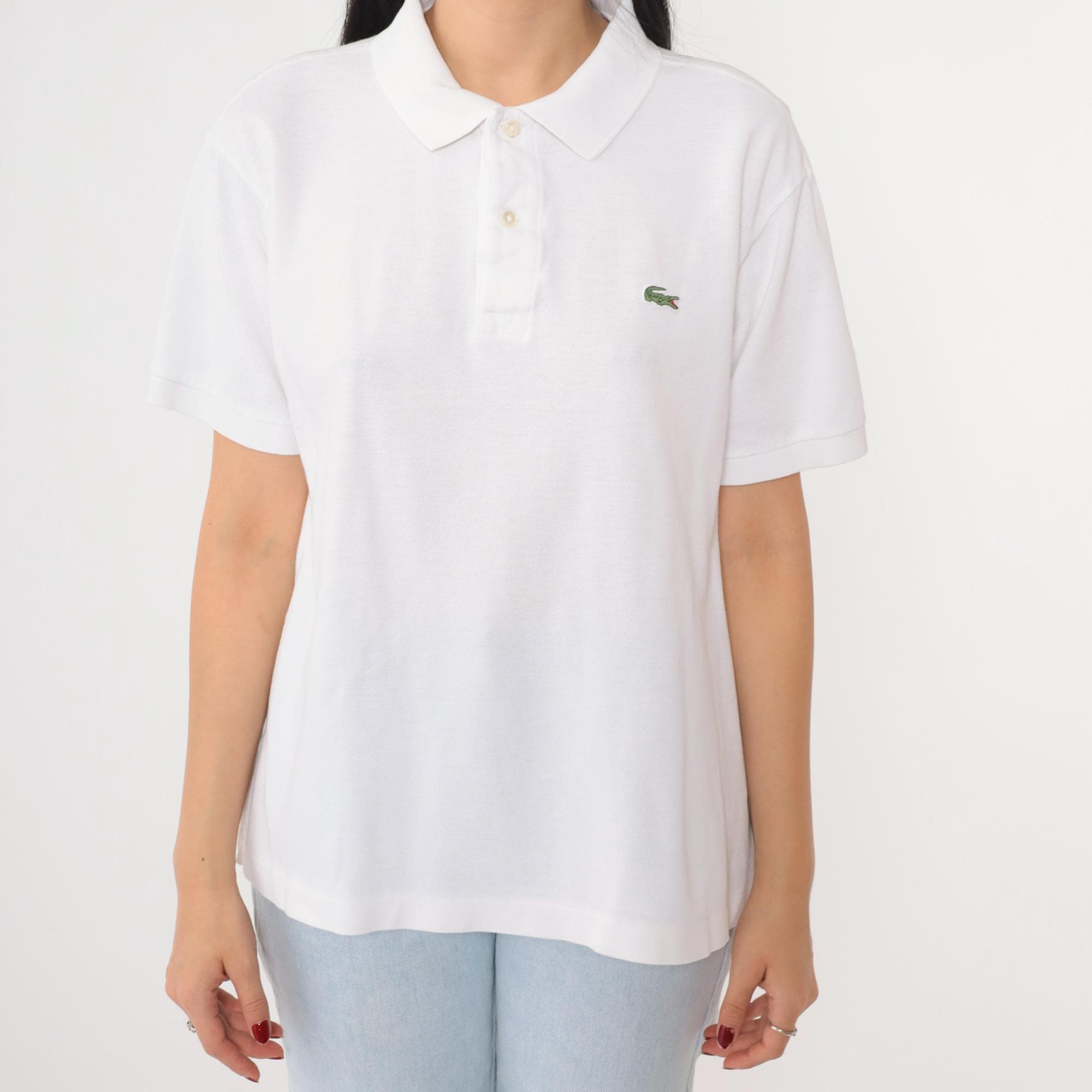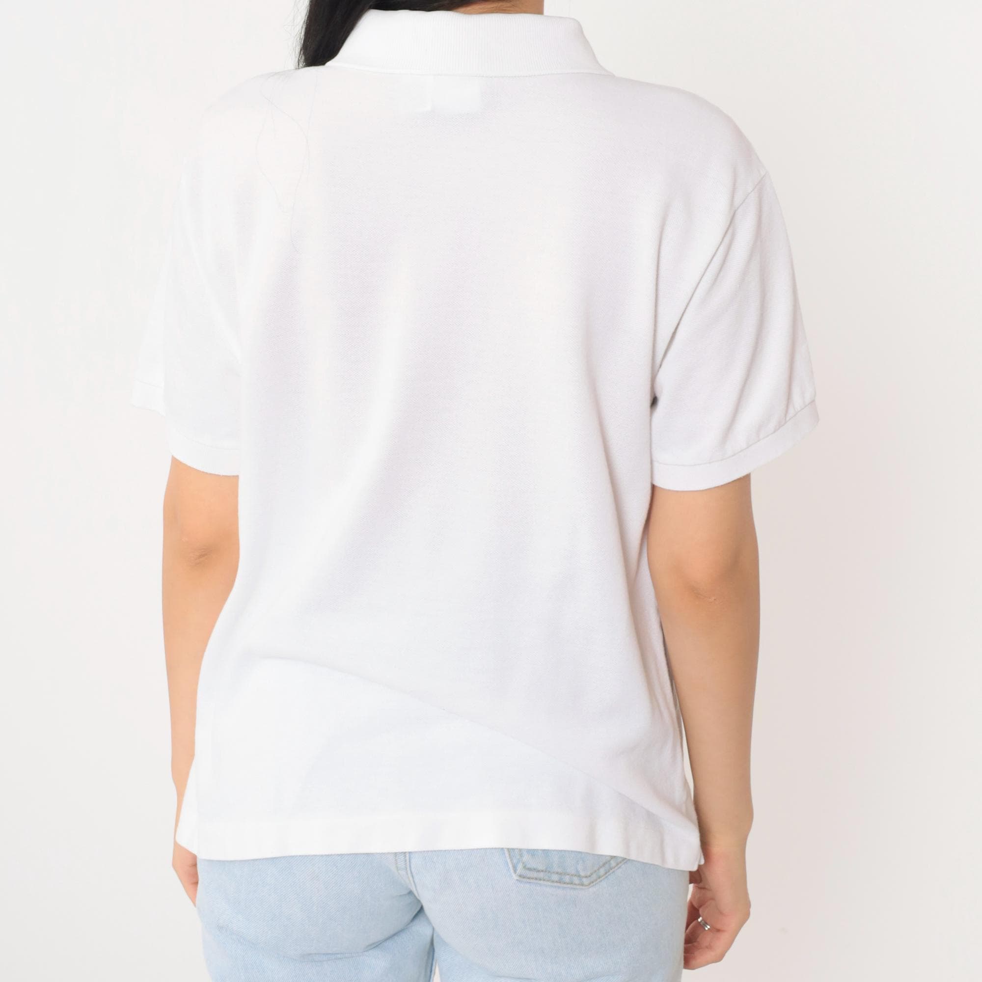 Vintage 00s polo shirt in white. Buttons up the chest with the crocodile logo.