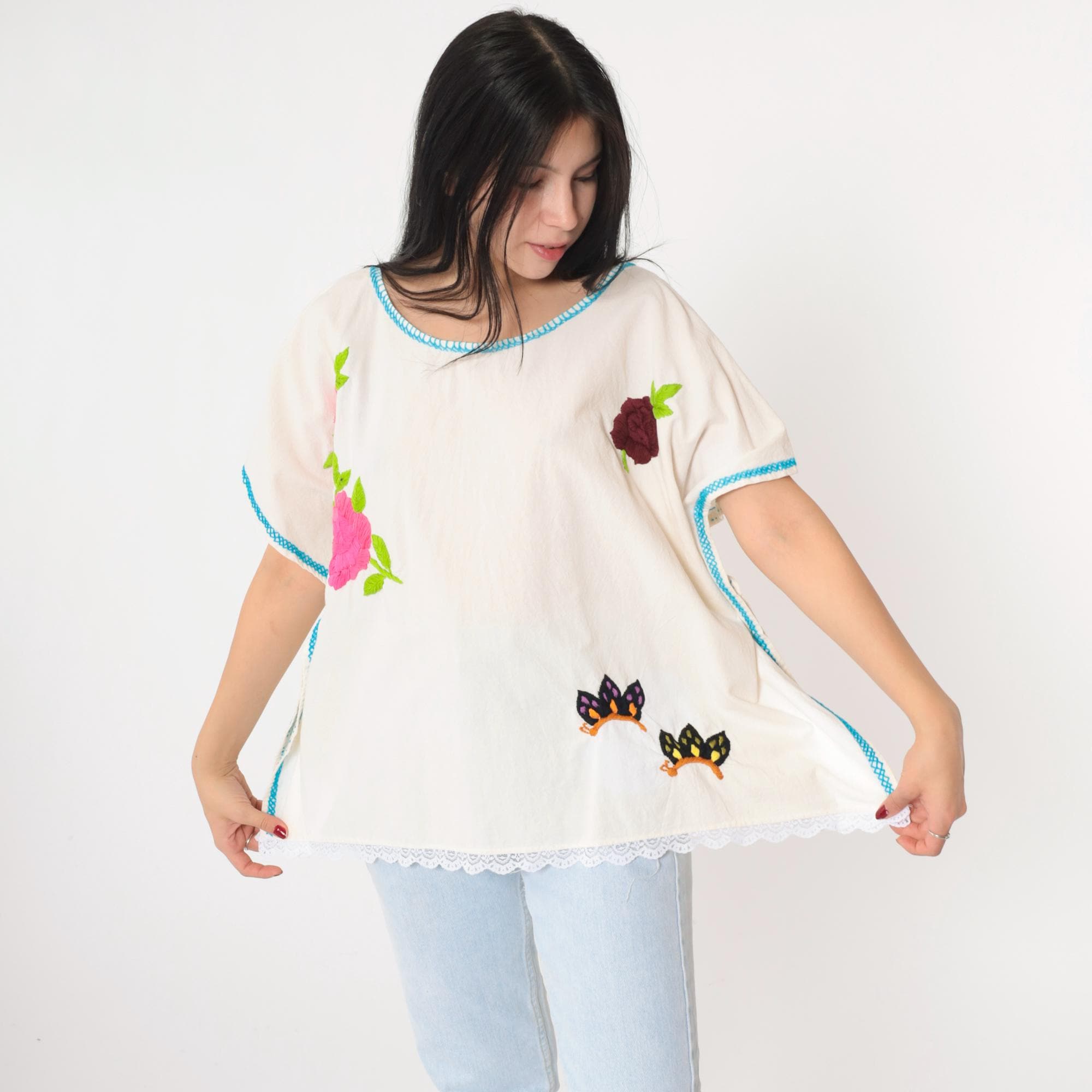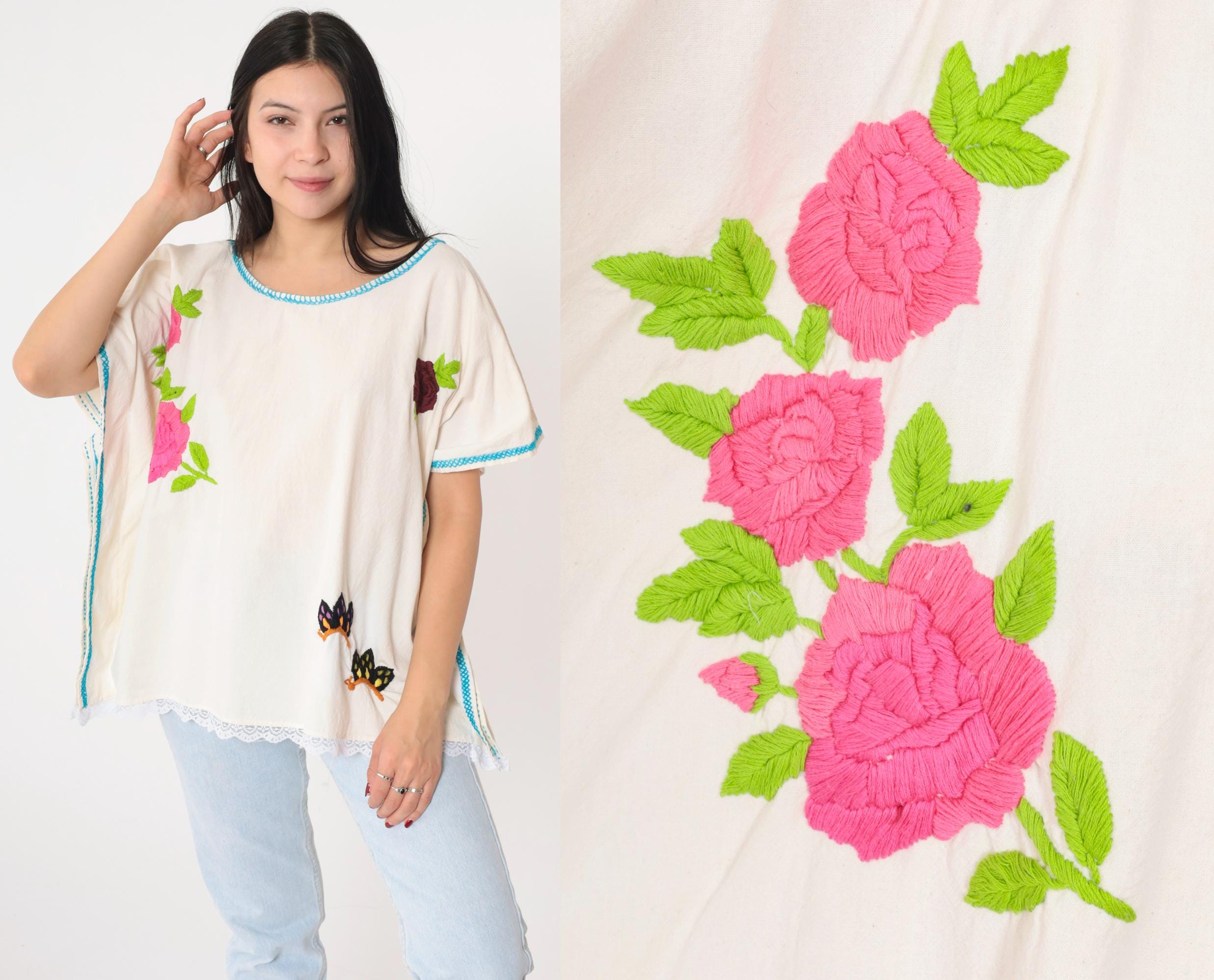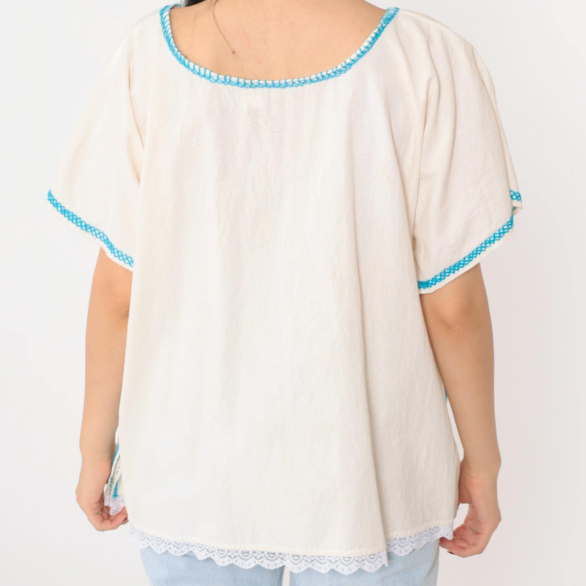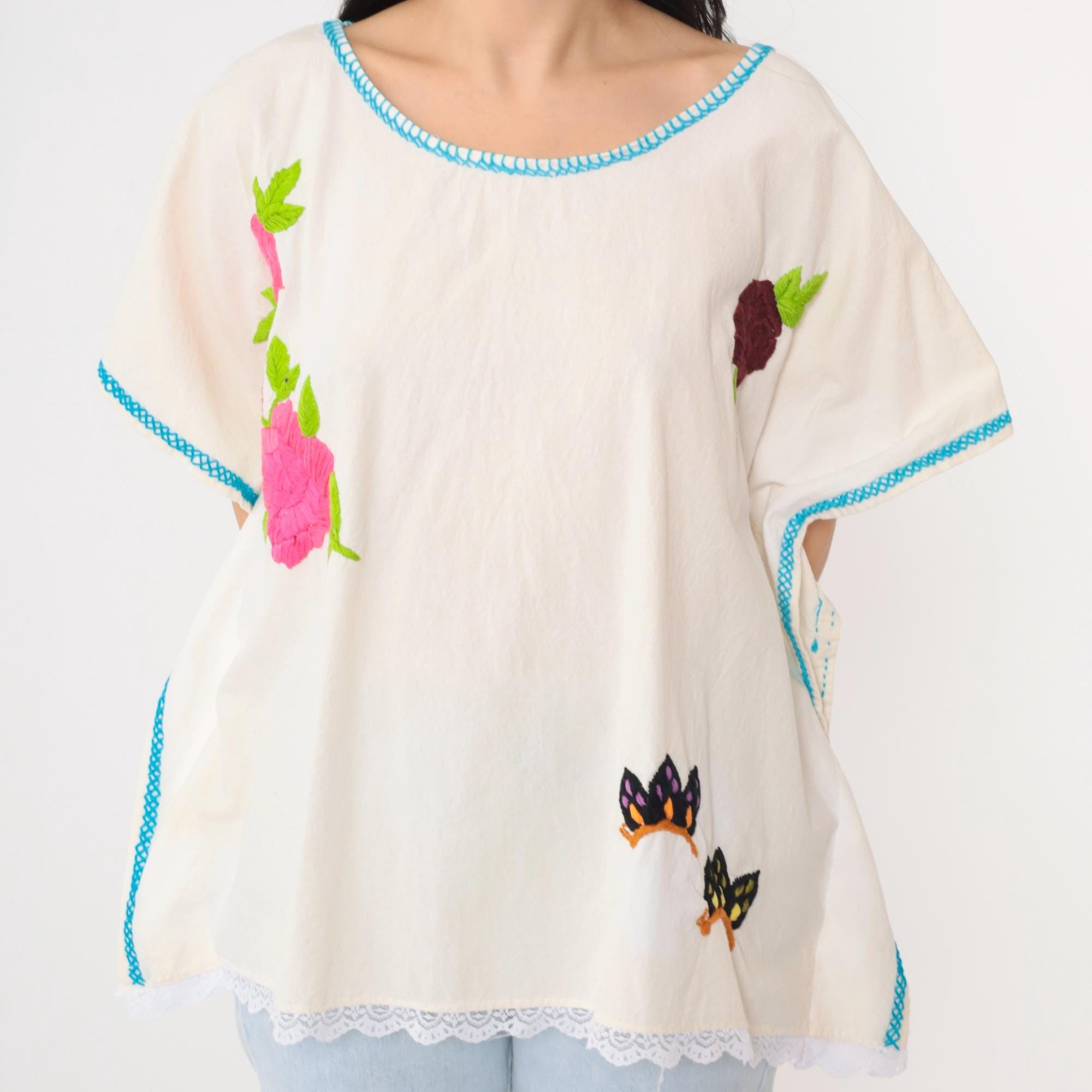 Vintage 90s blouse in cream with floral and butterfly embroidery.