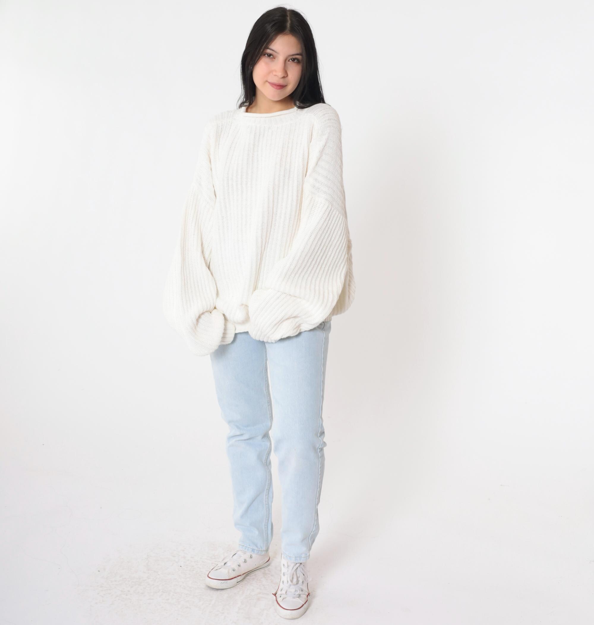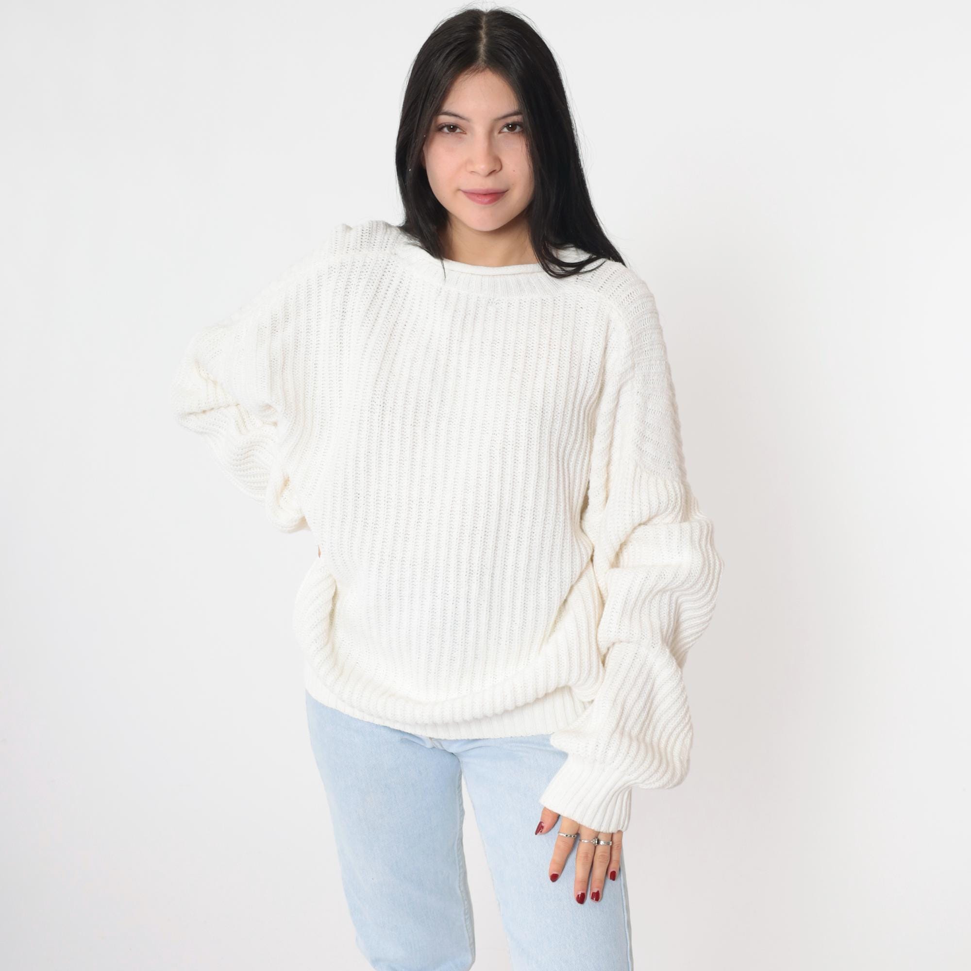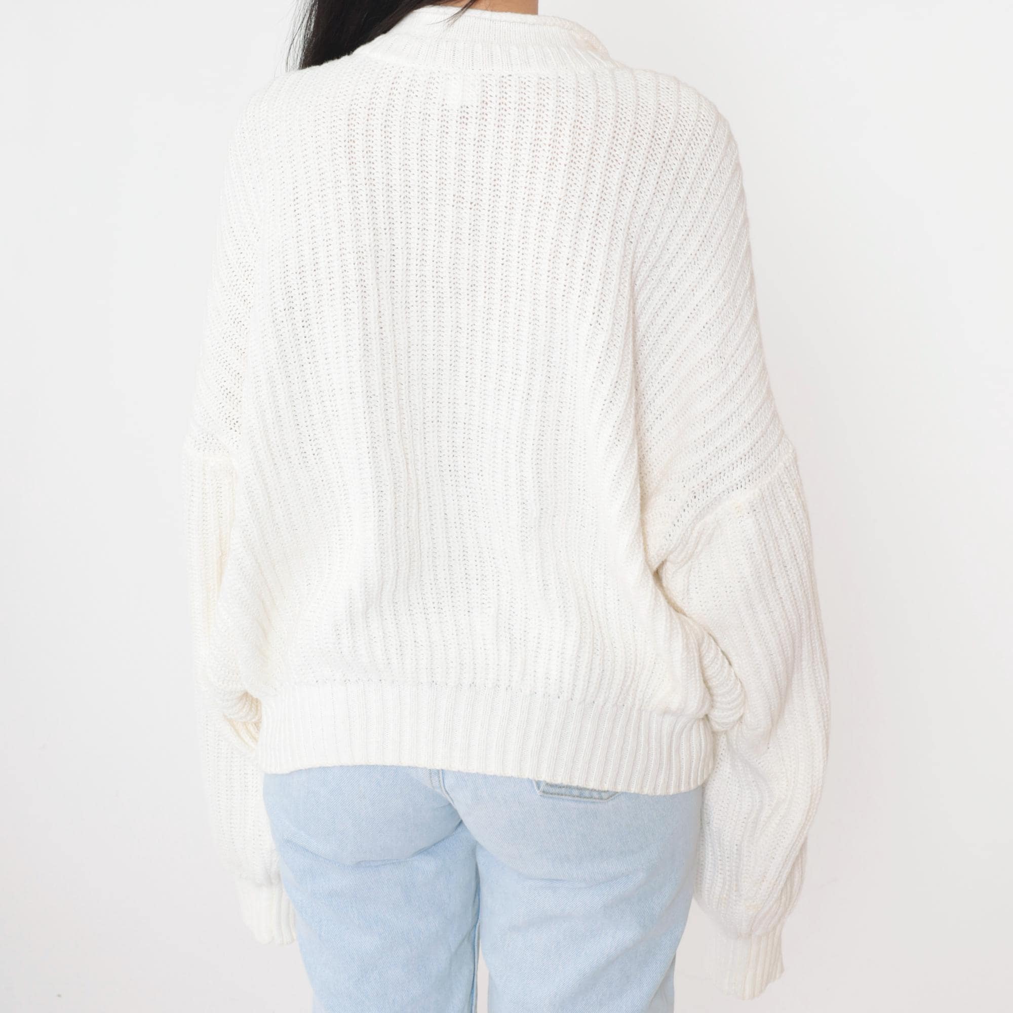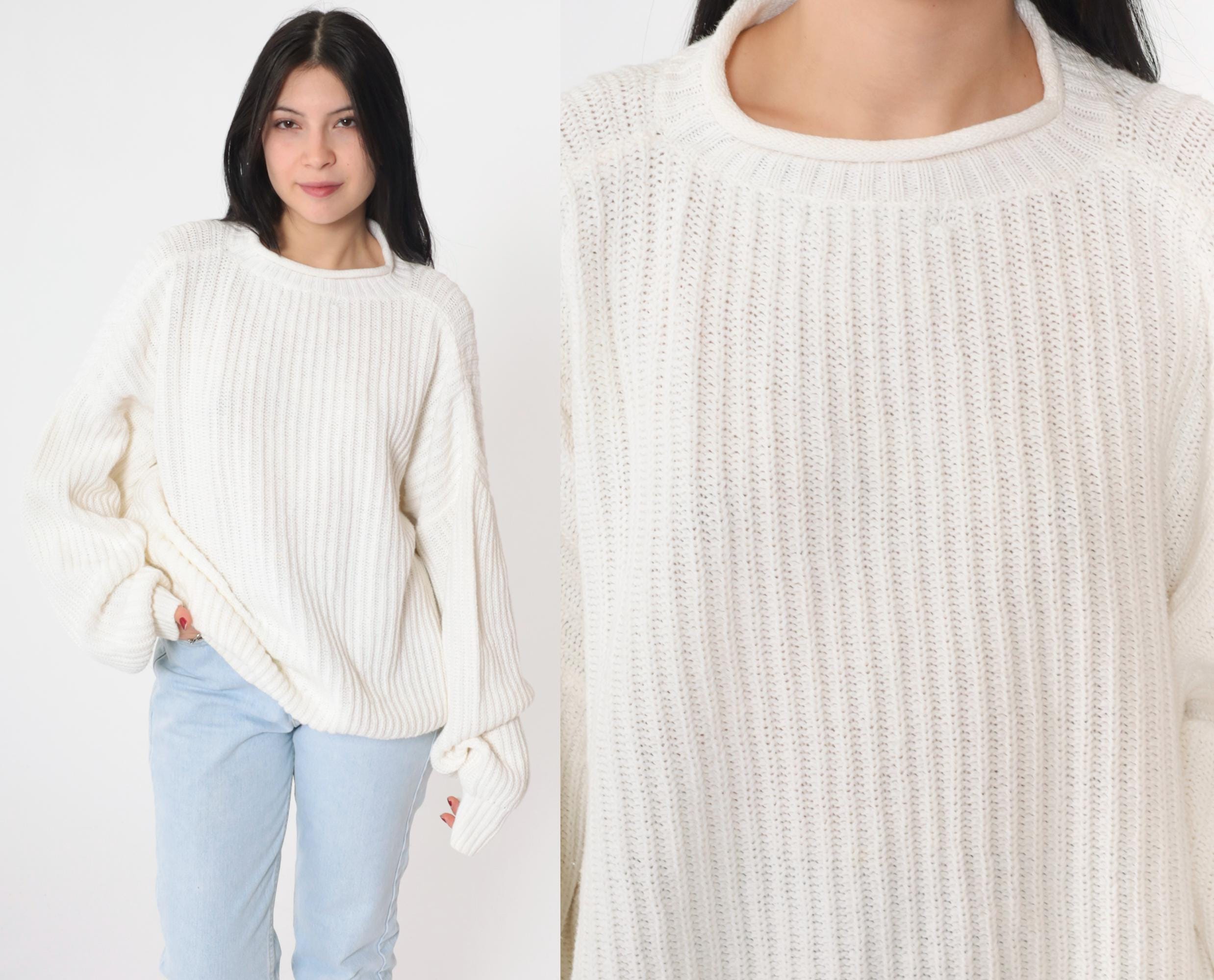 Vintage 90s sweater in white ribbed knit with a roll neck.