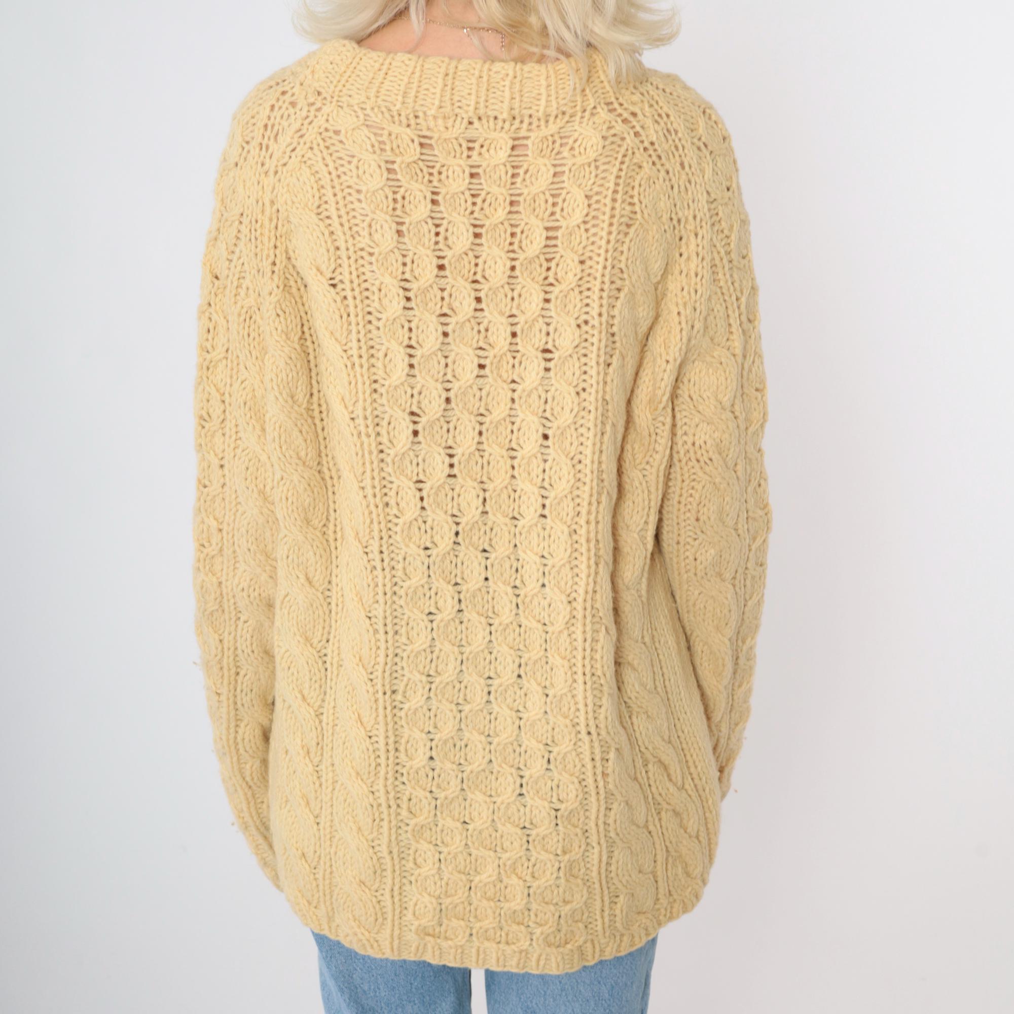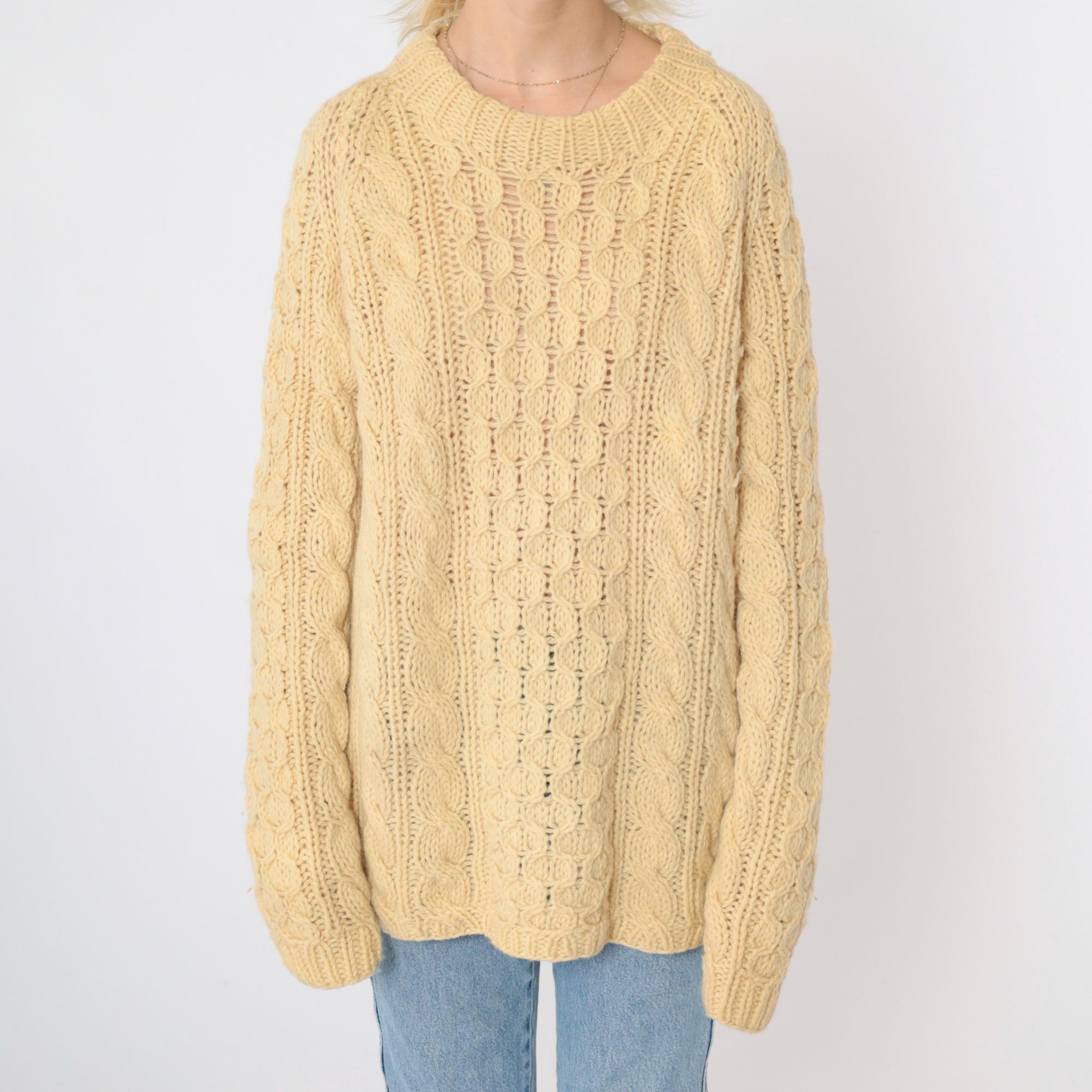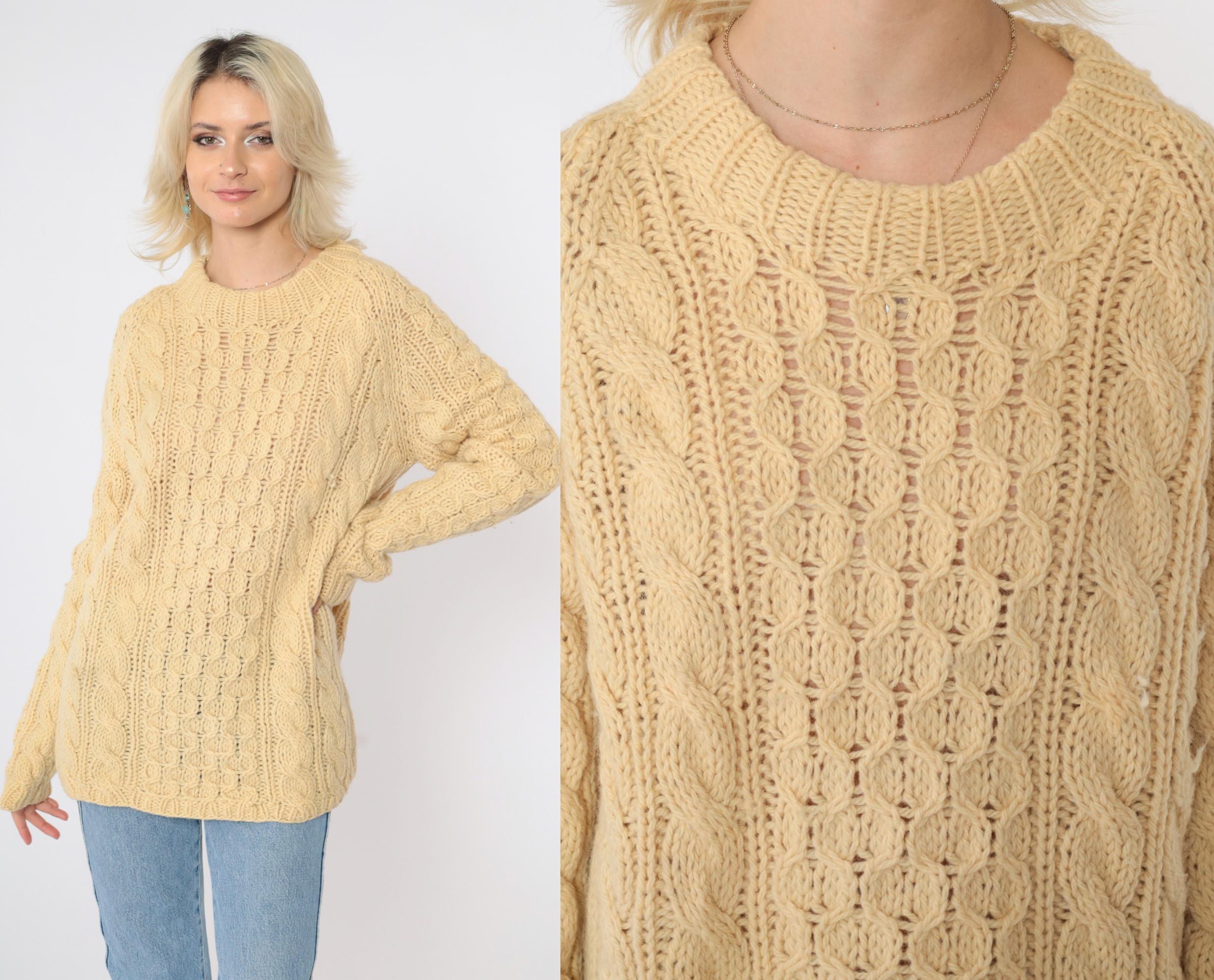 Vintage 80s sweater in light yellow cable knit. Loosely knit and semi-sheer.