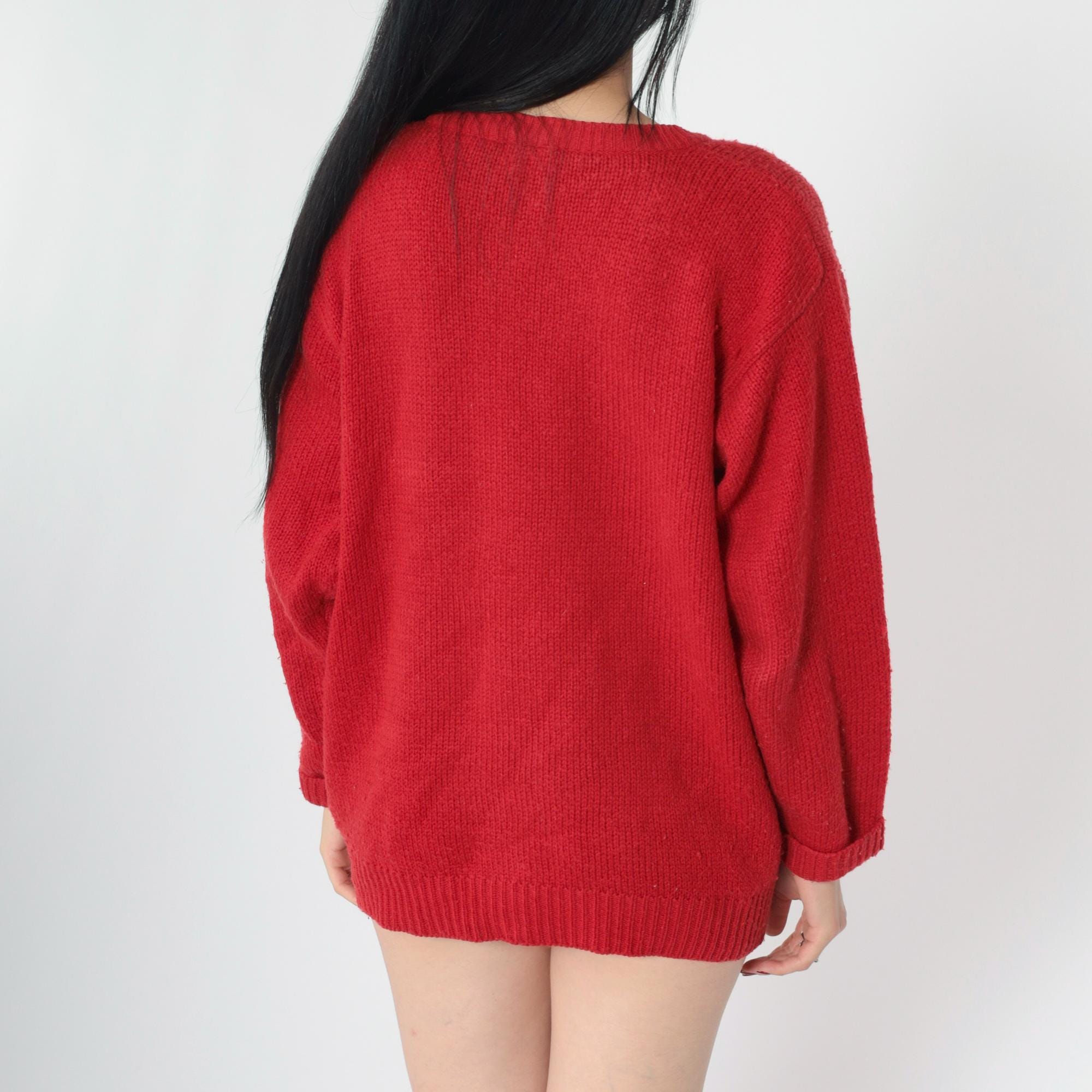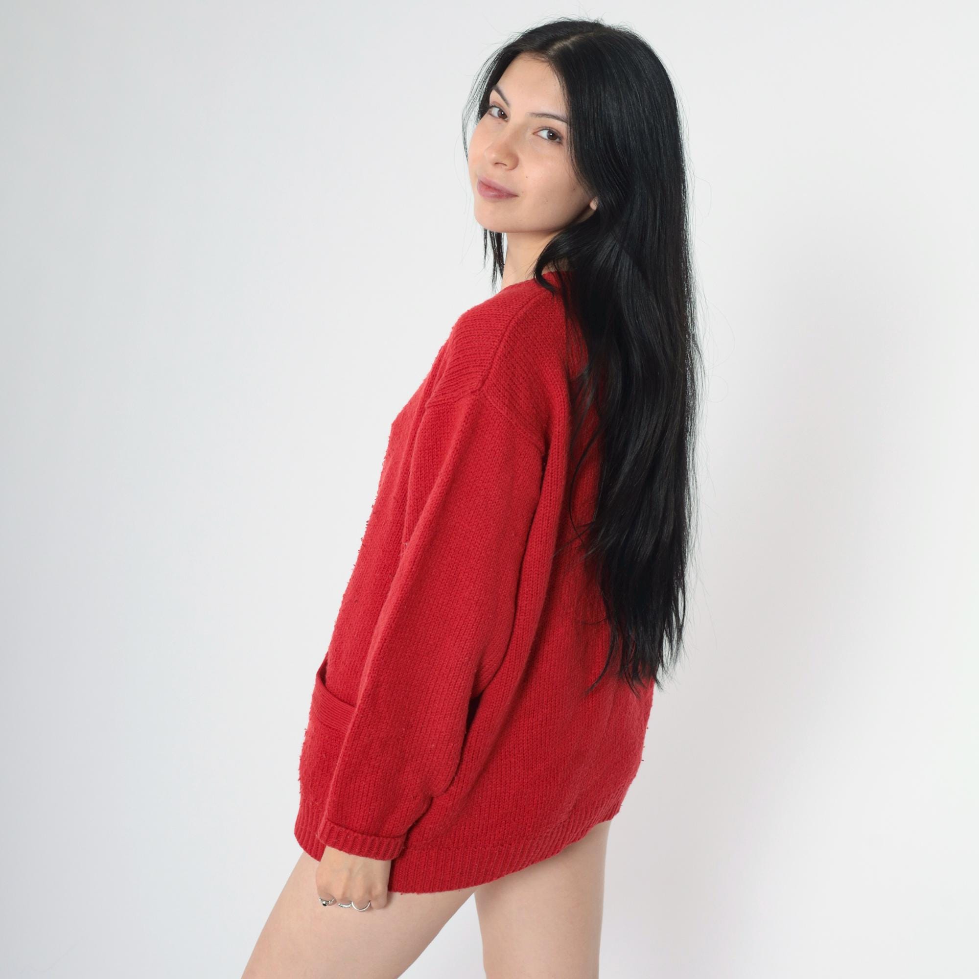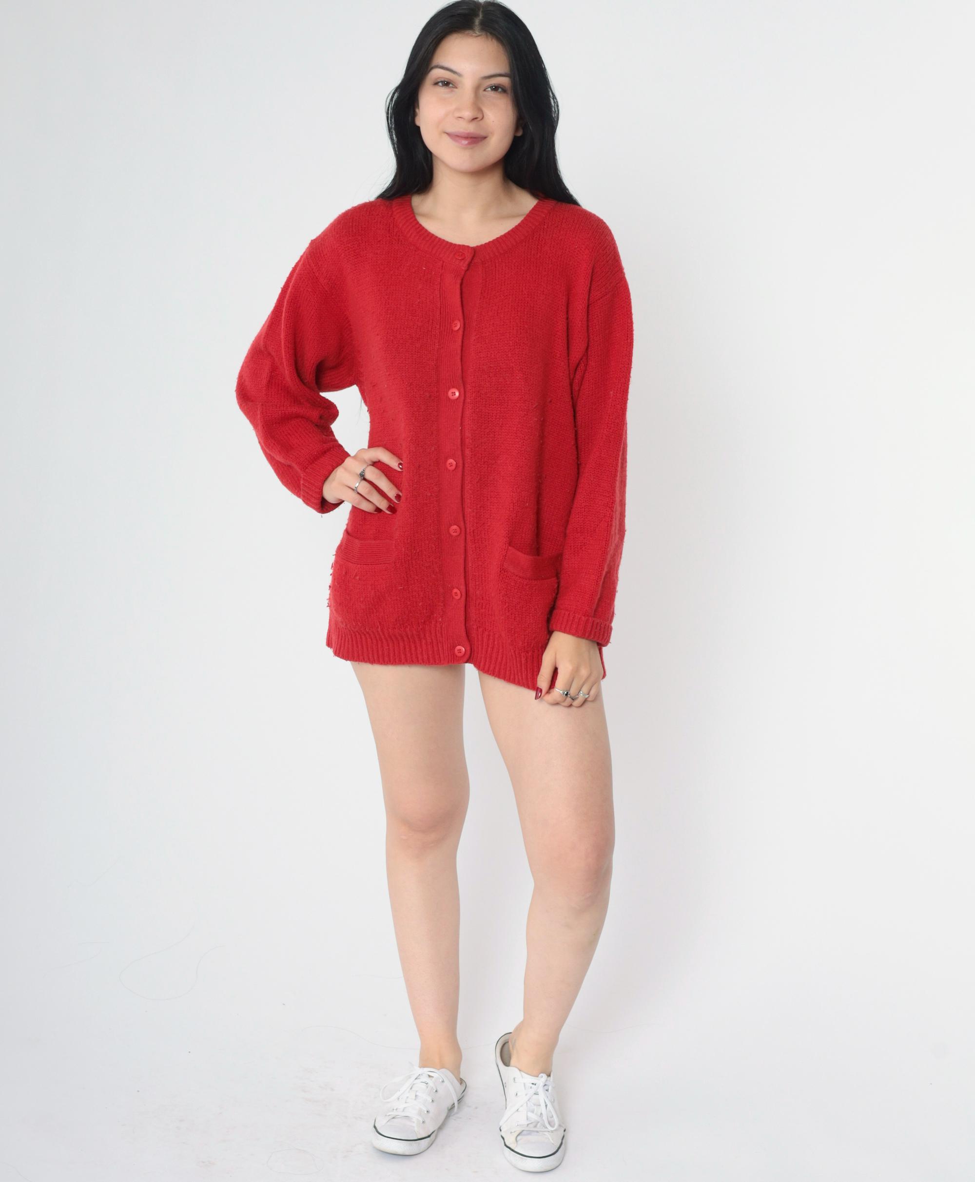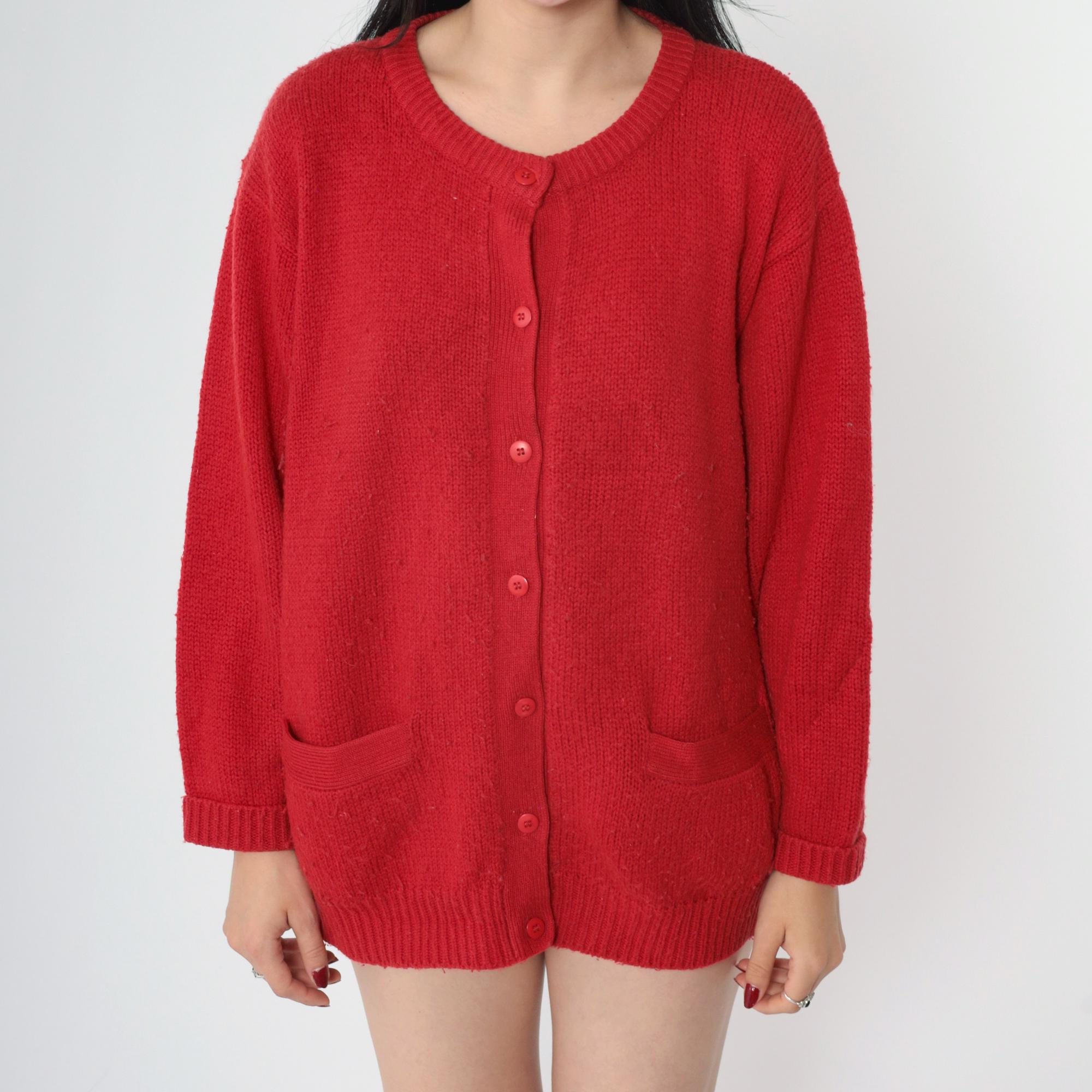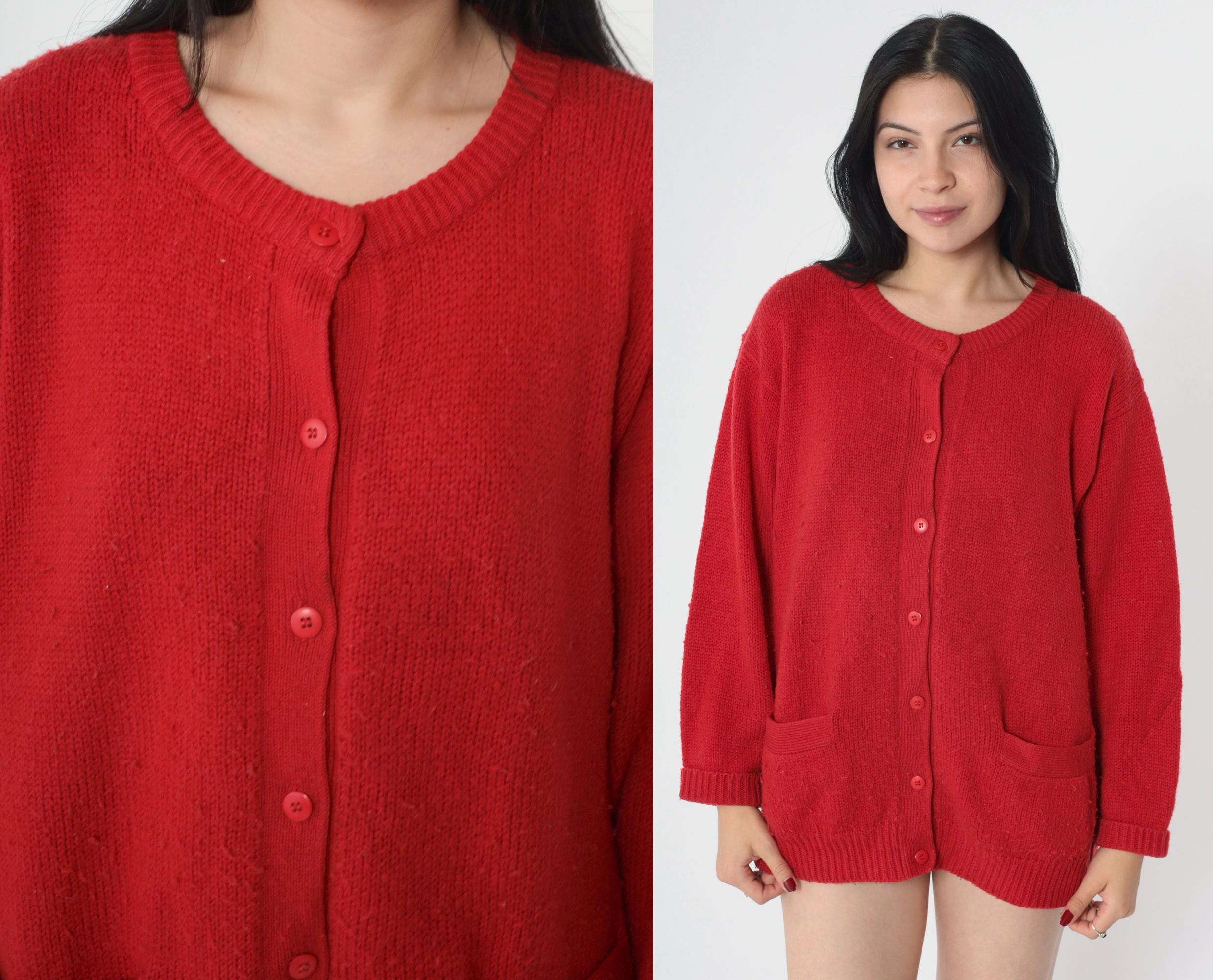 Vintage 90s cardigan sweater in red acrylic knit with buttons up the front.