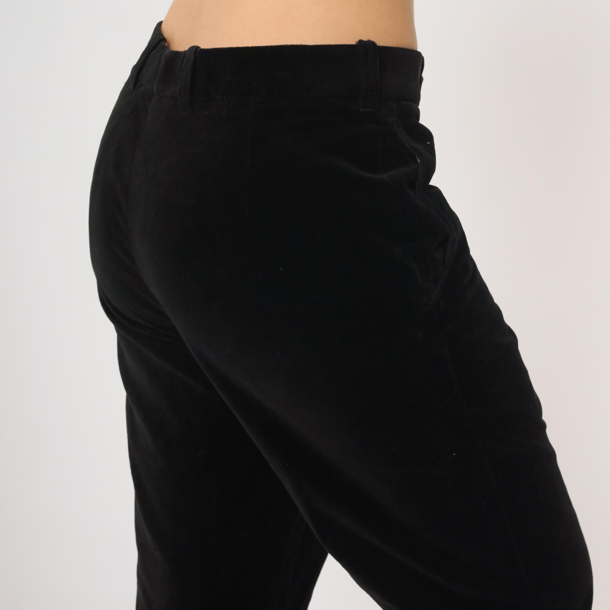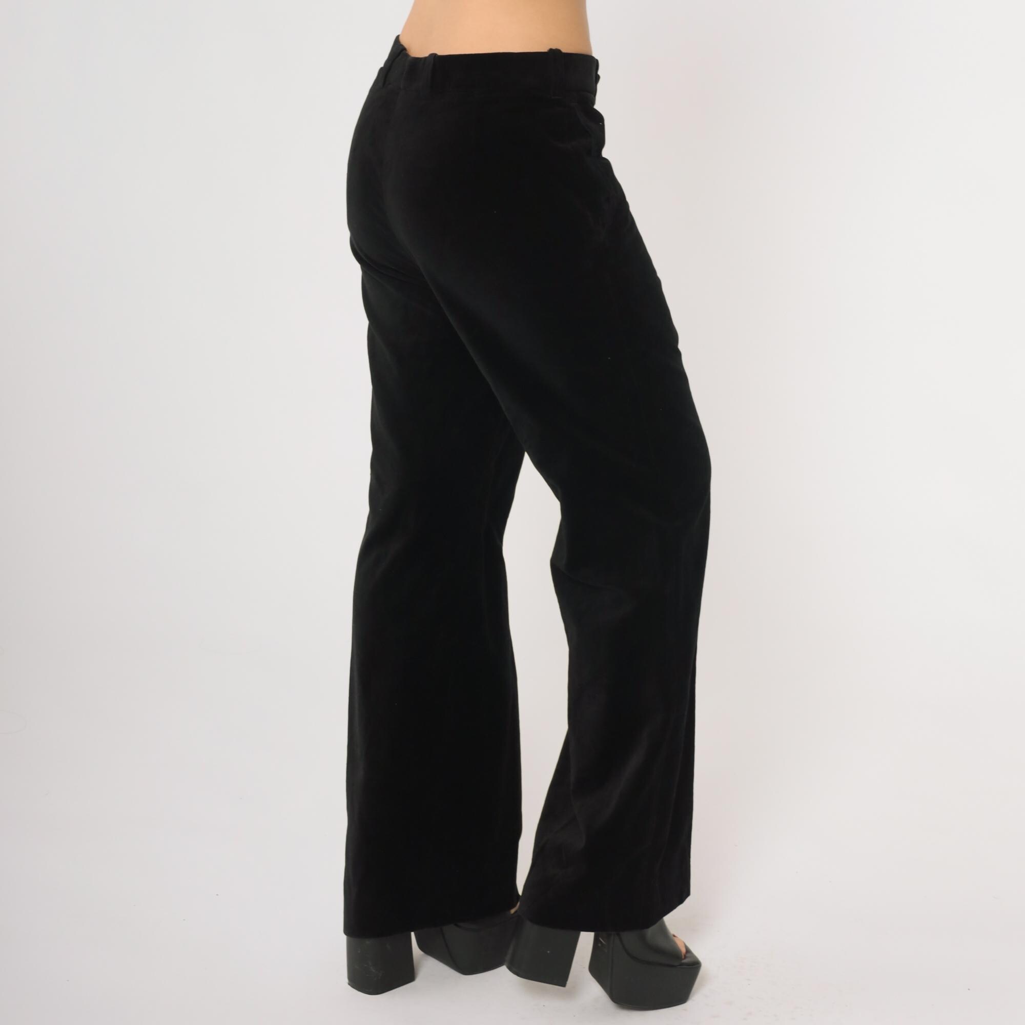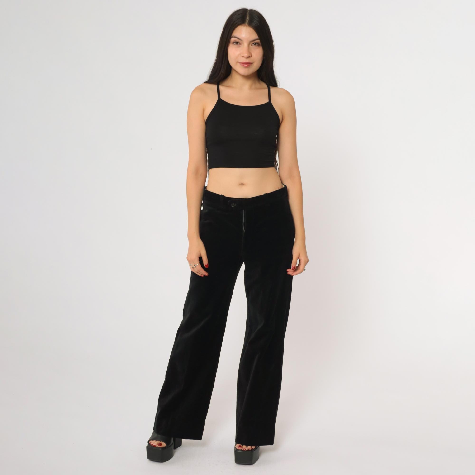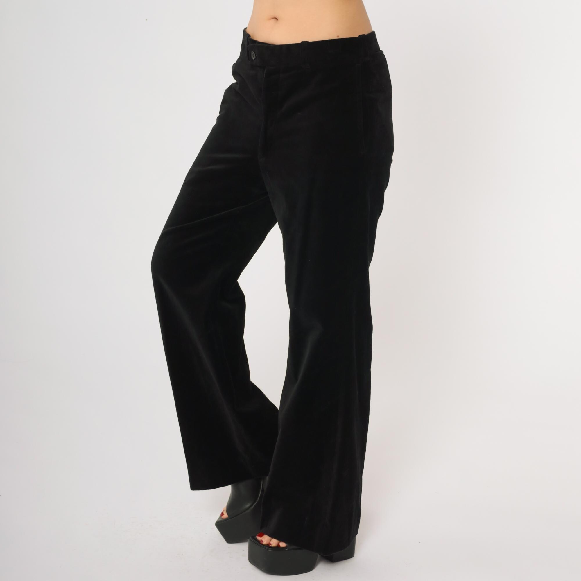 80s black wide leg pants featuring high waisted design with relaxed straight leg silhouette. Cotton polyester blend material with classic tailored construction.