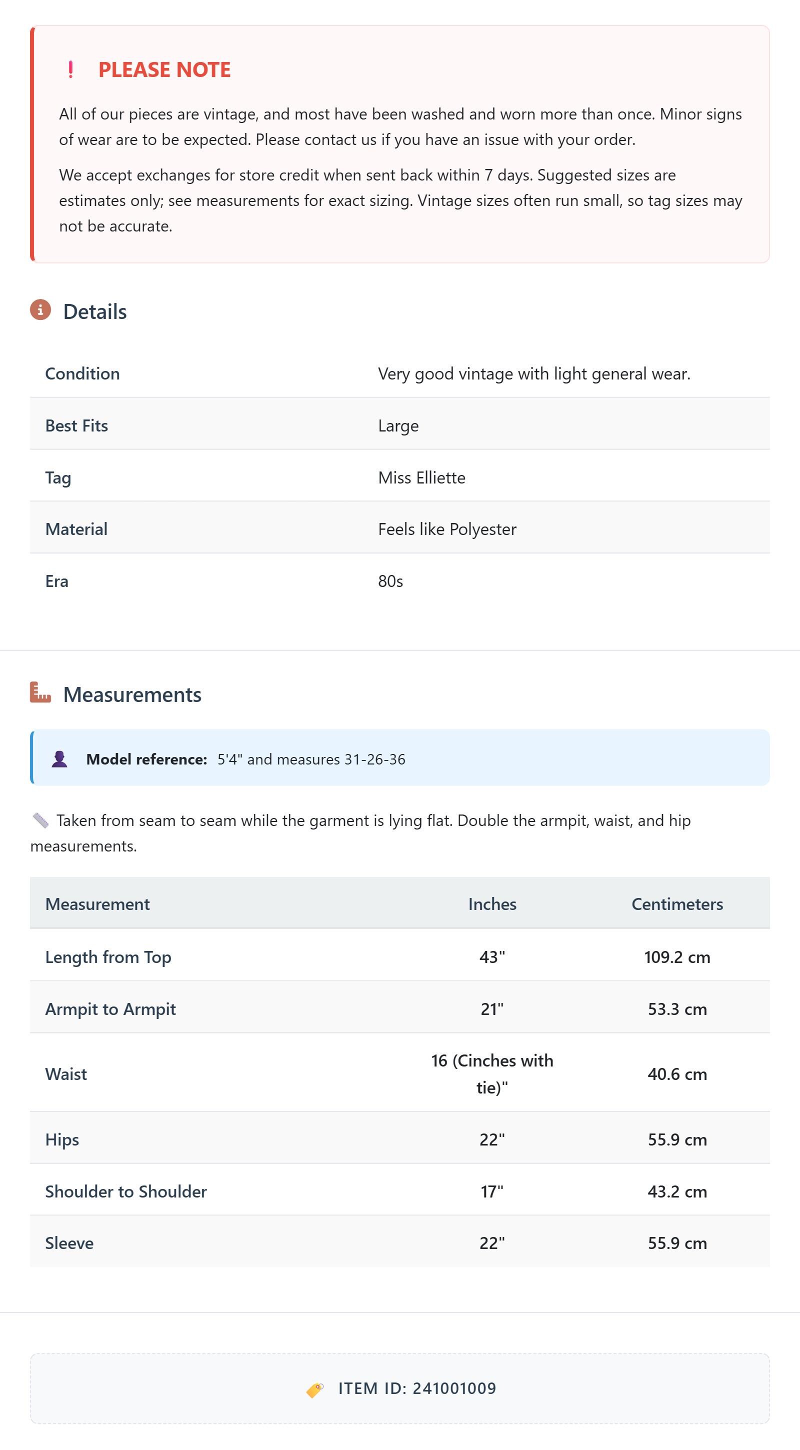 Suggested sizes are estimates only; see measurements for exact sizing. Vintage sizes often run small, so tag sizes may not be accurate.