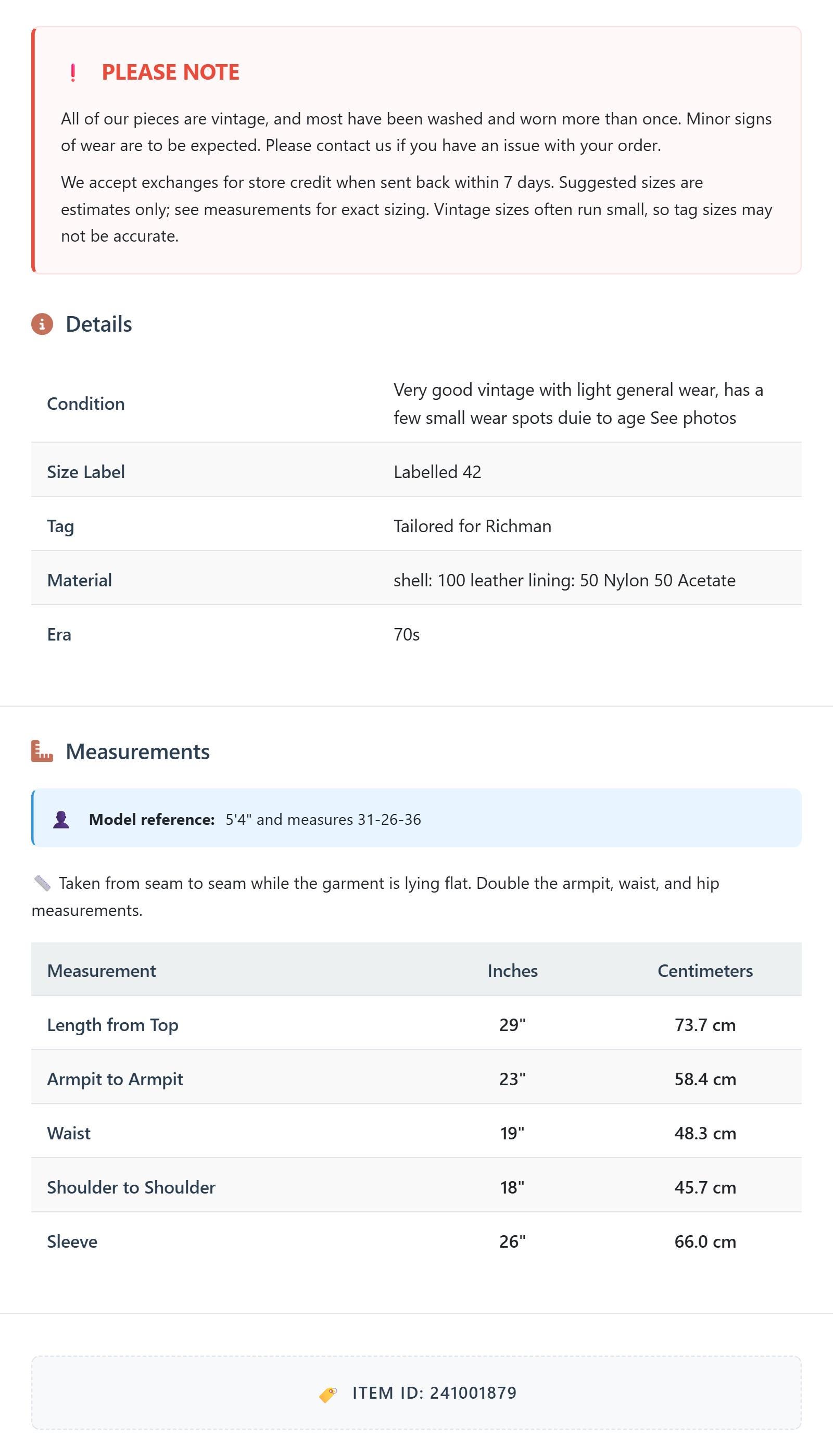 Suggested sizes are estimates only; see measurements for exact sizing. Vintage sizes often run small, so tag sizes may not be accurate.