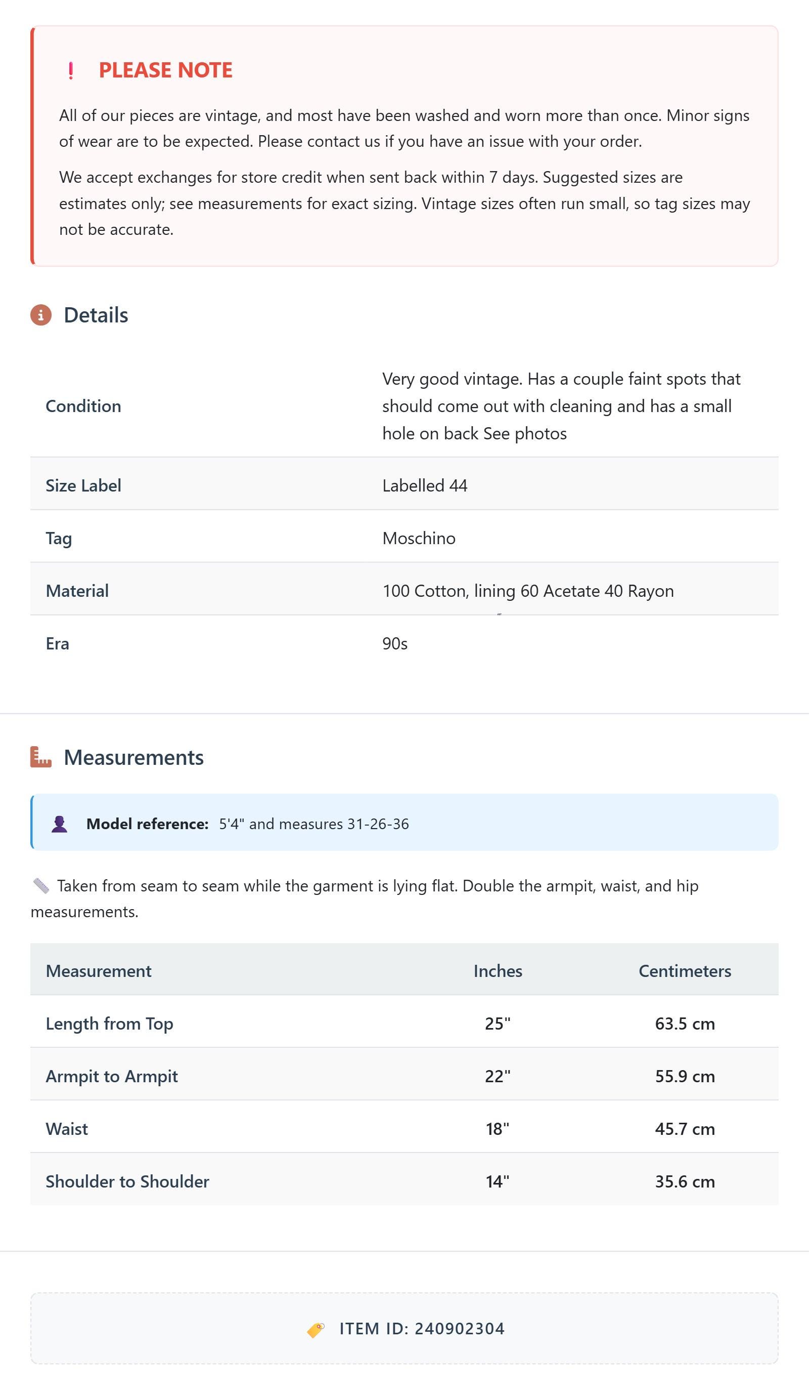 Suggested sizes are estimates only; see measurements for exact sizing. Vintage sizes often run small, so tag sizes may not be accurate.