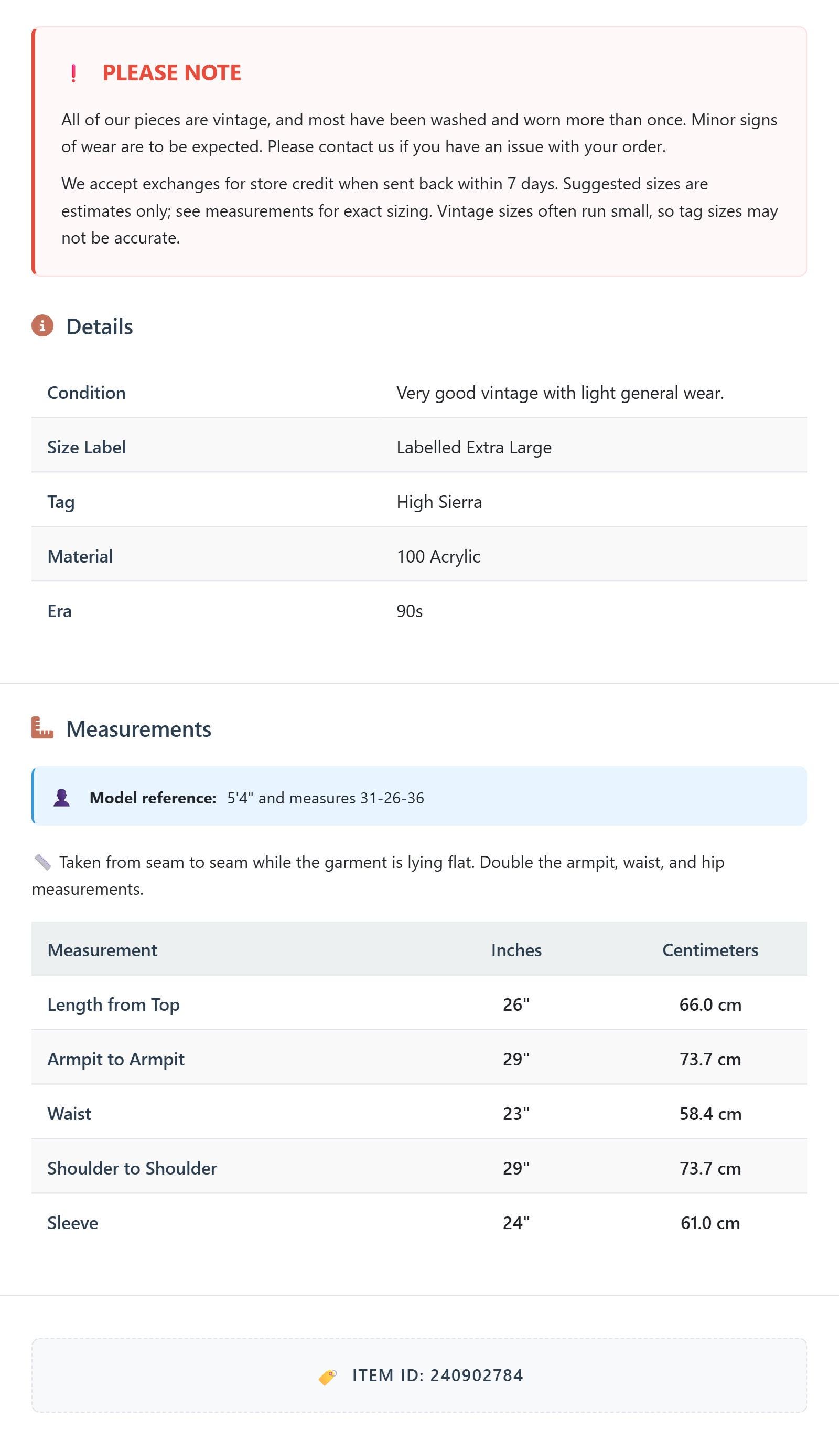 Suggested sizes are estimates only; see measurements for exact sizing. Vintage sizes often run small, so tag sizes may not be accurate.