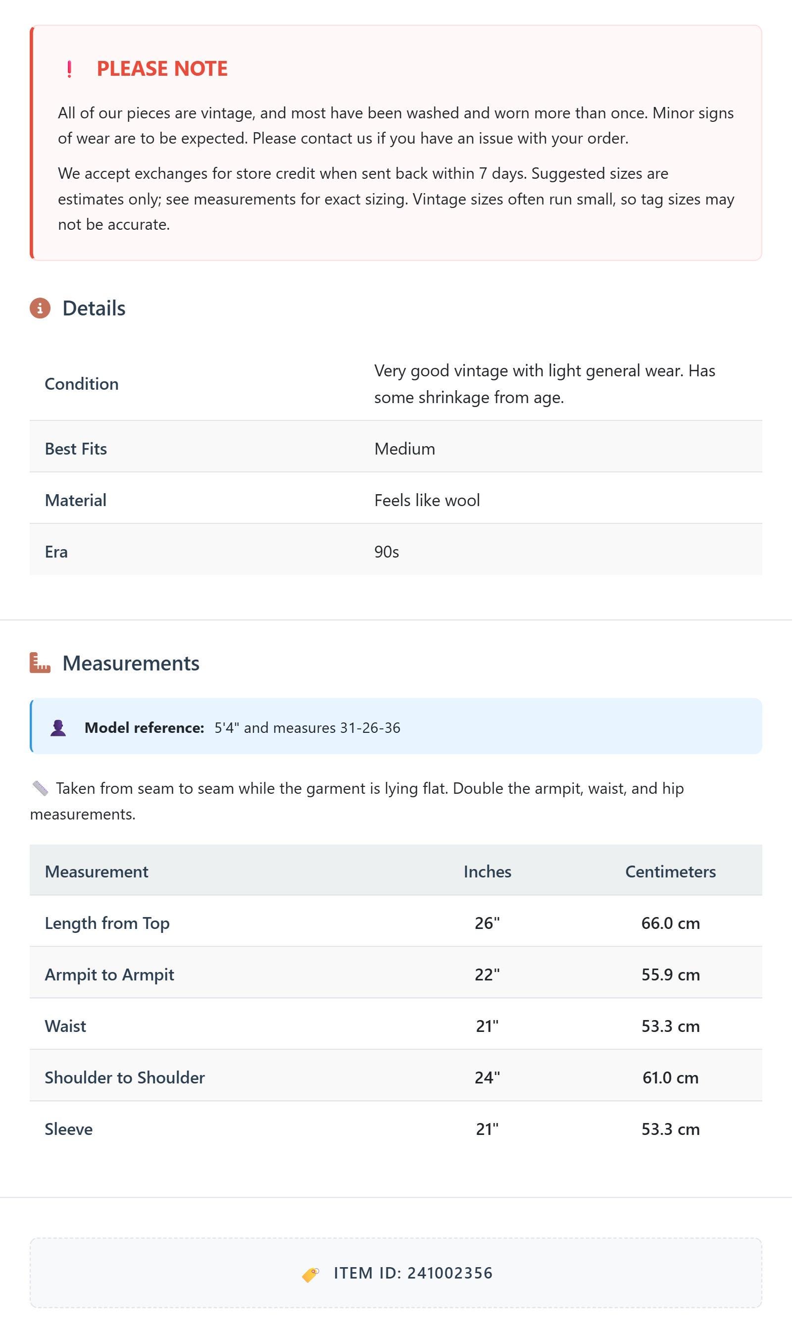 Suggested sizes are estimates only; see measurements for exact sizing. Vintage sizes often run small, so tag sizes may not be accurate.