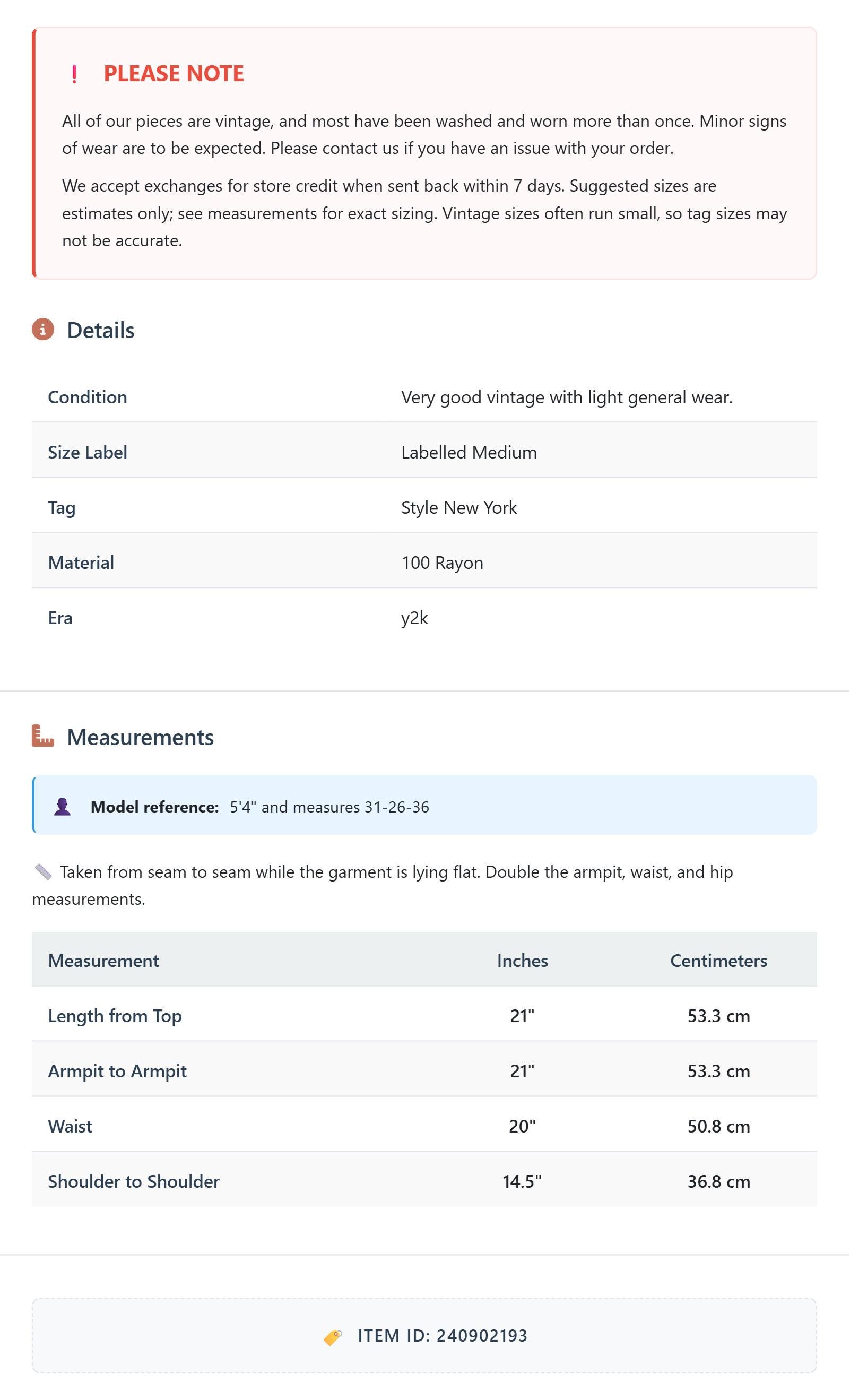 Suggested sizes are estimates only; see measurements for exact sizing. Vintage sizes often run small, so tag sizes may not be accurate.