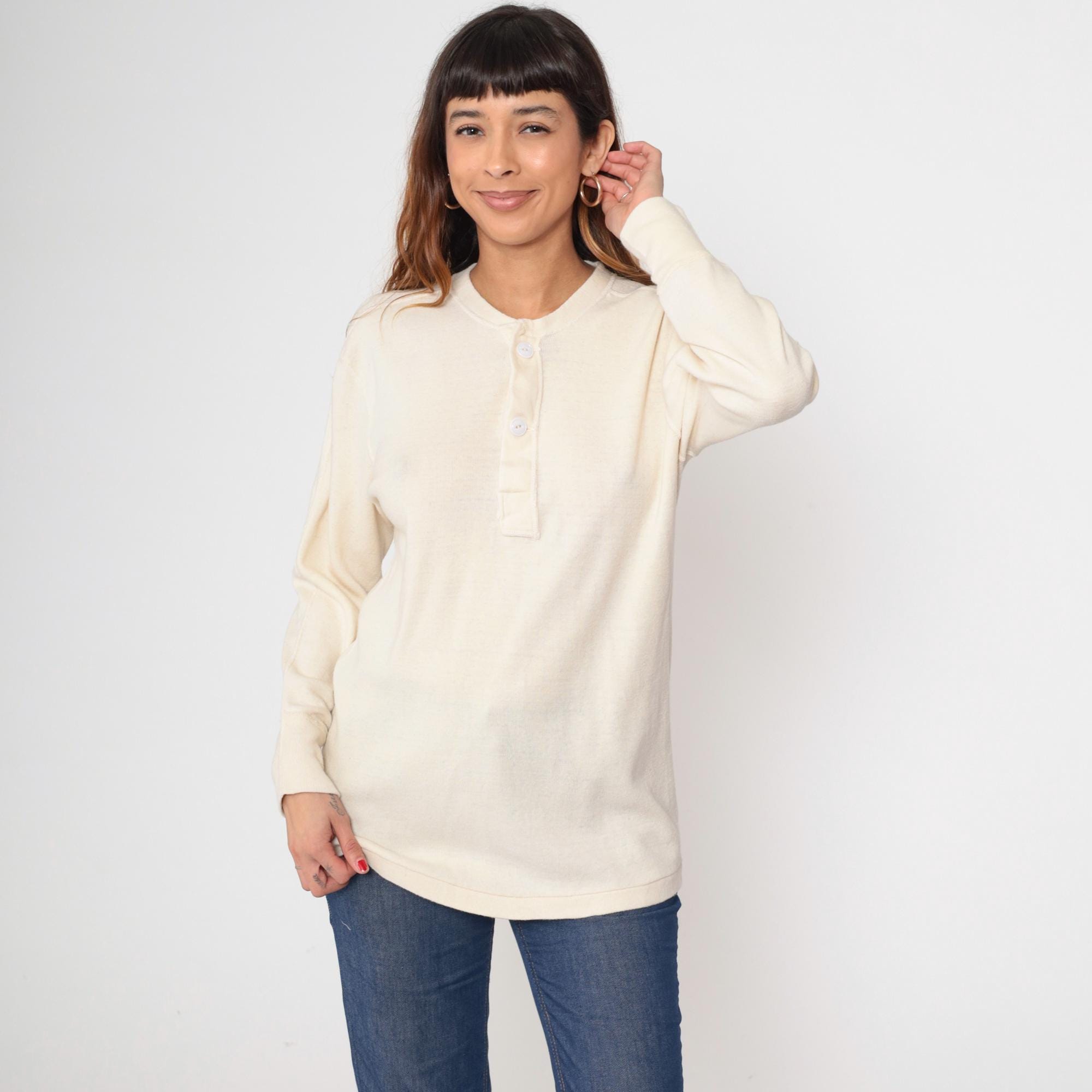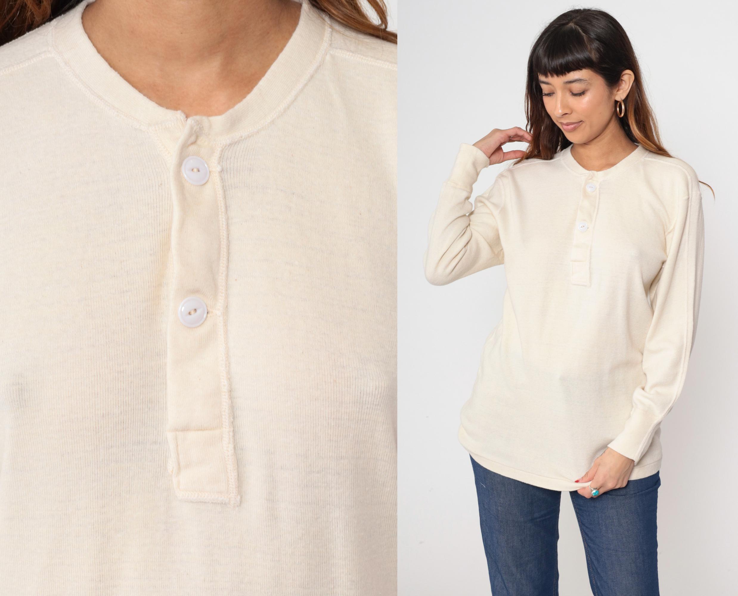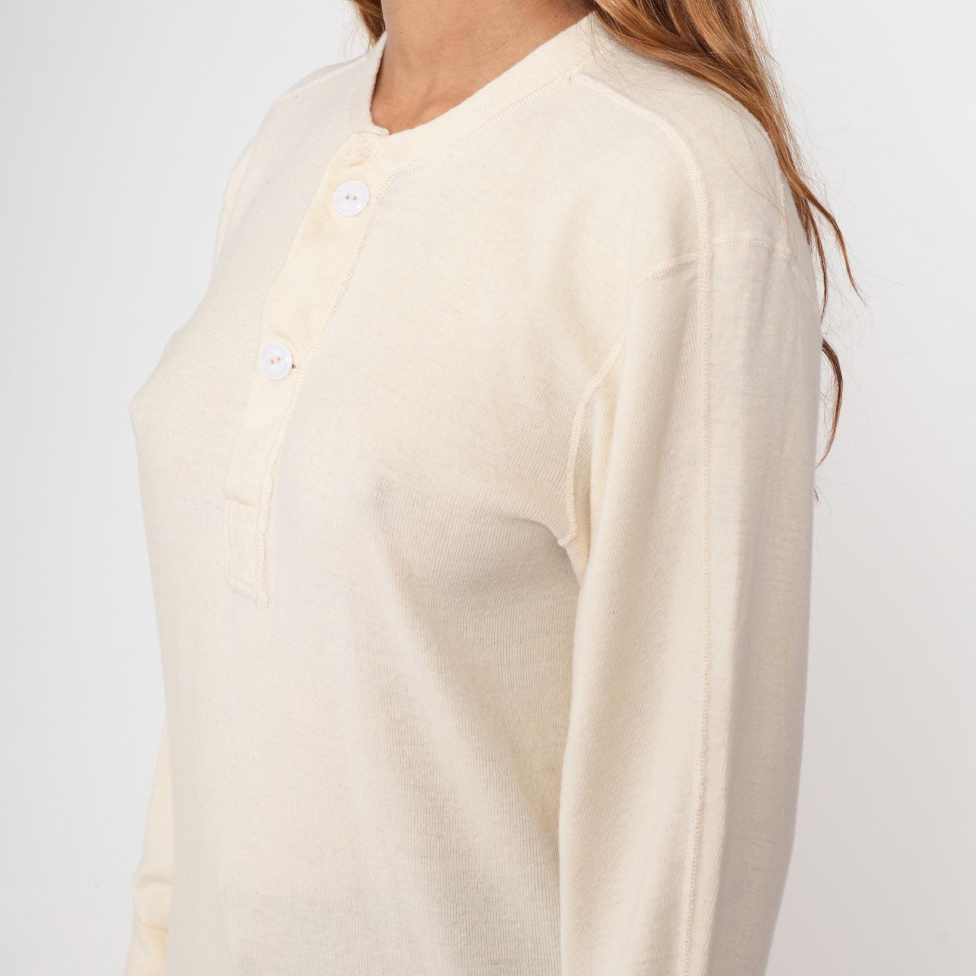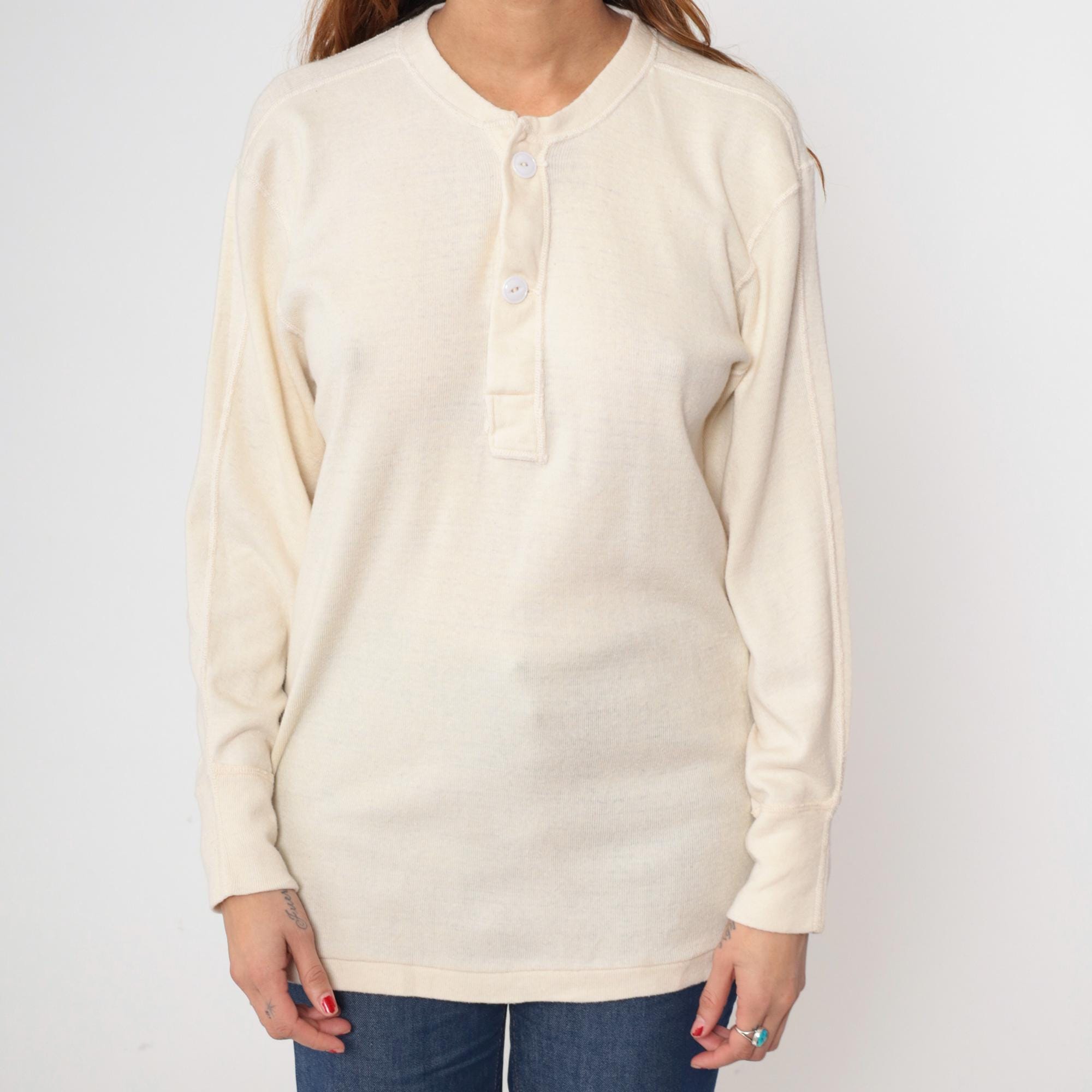 Vintage 80s undershirt in a plain cream wool blend. Long sleeves and buttons up the chest.