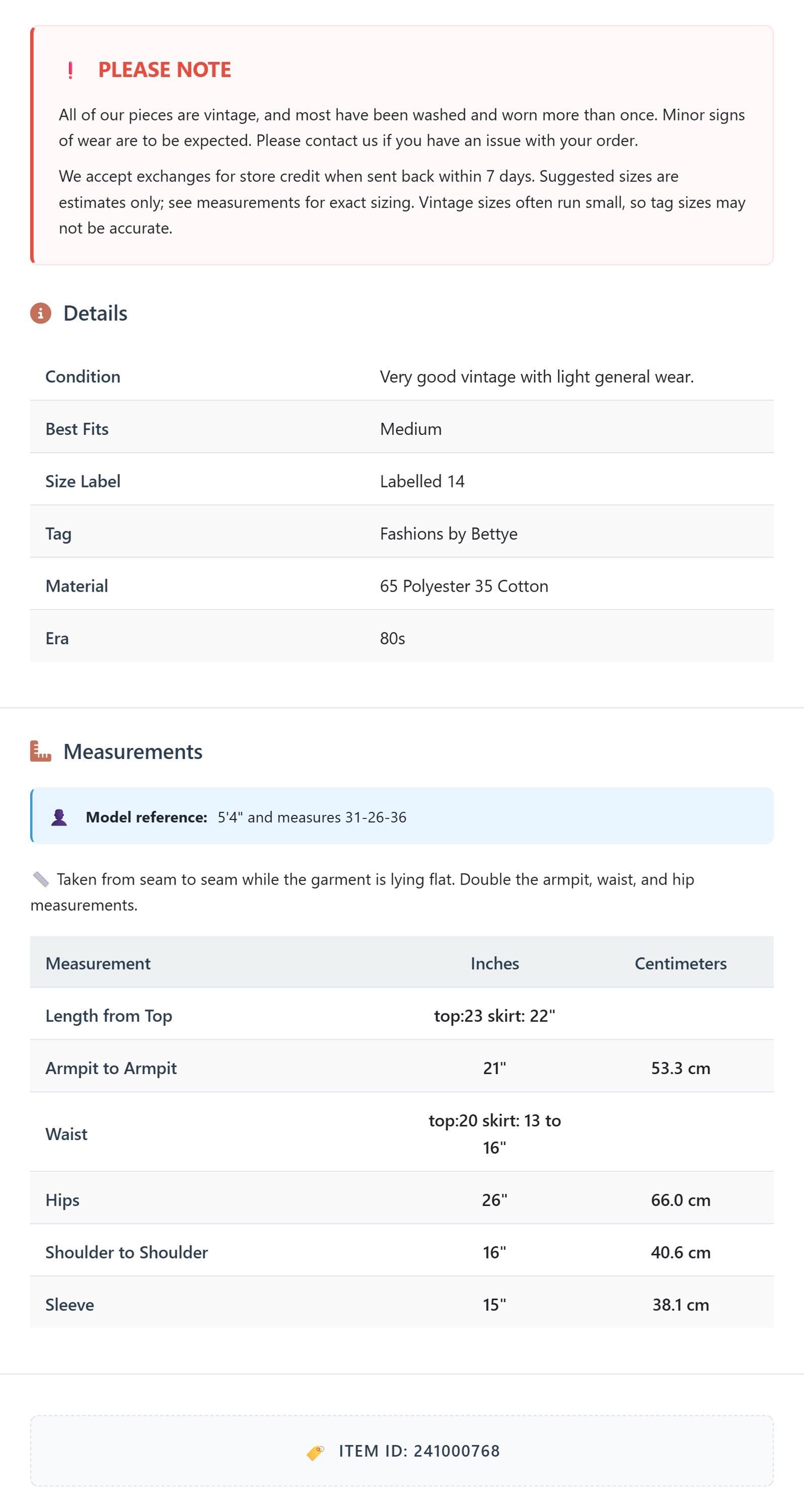 Suggested sizes are estimates only; see measurements for exact sizing. Vintage sizes often run small, so tag sizes may not be accurate.