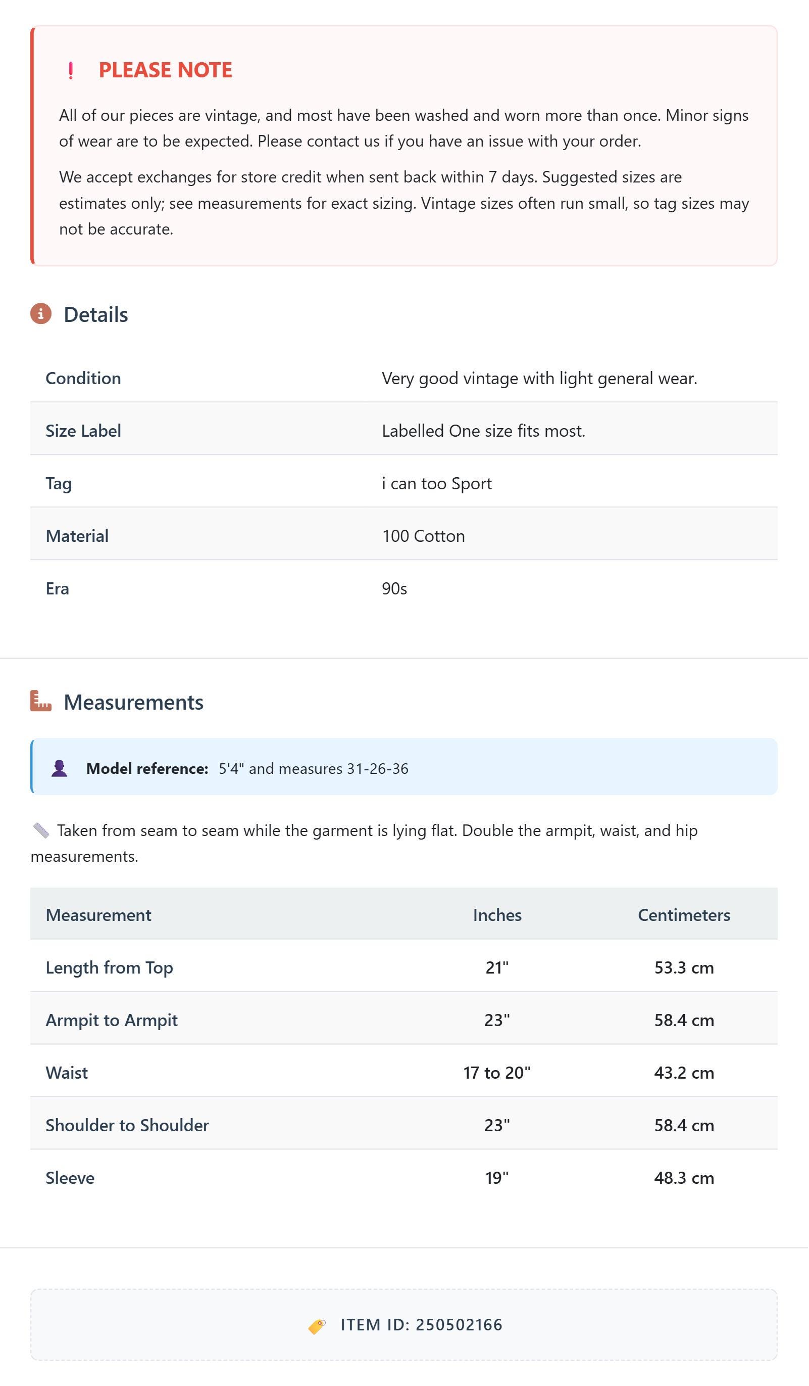 Suggested sizes are estimates only; see measurements for exact sizing. Vintage sizes often run small, so tag sizes may not be accurate.
