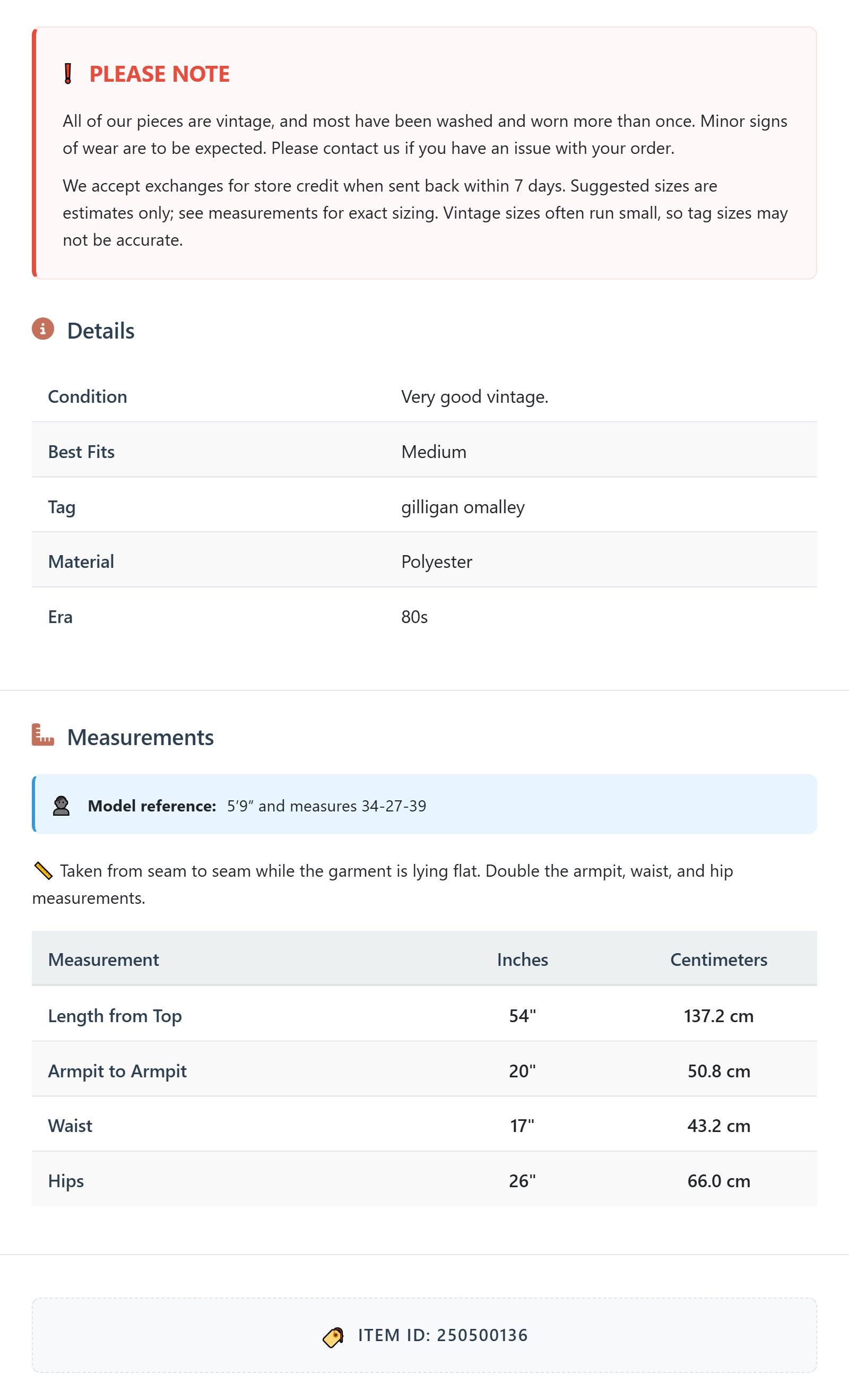 Suggested sizes are estimates only; see measurements for exact sizing. Vintage sizes often run small, so tag sizes may not be accurate.