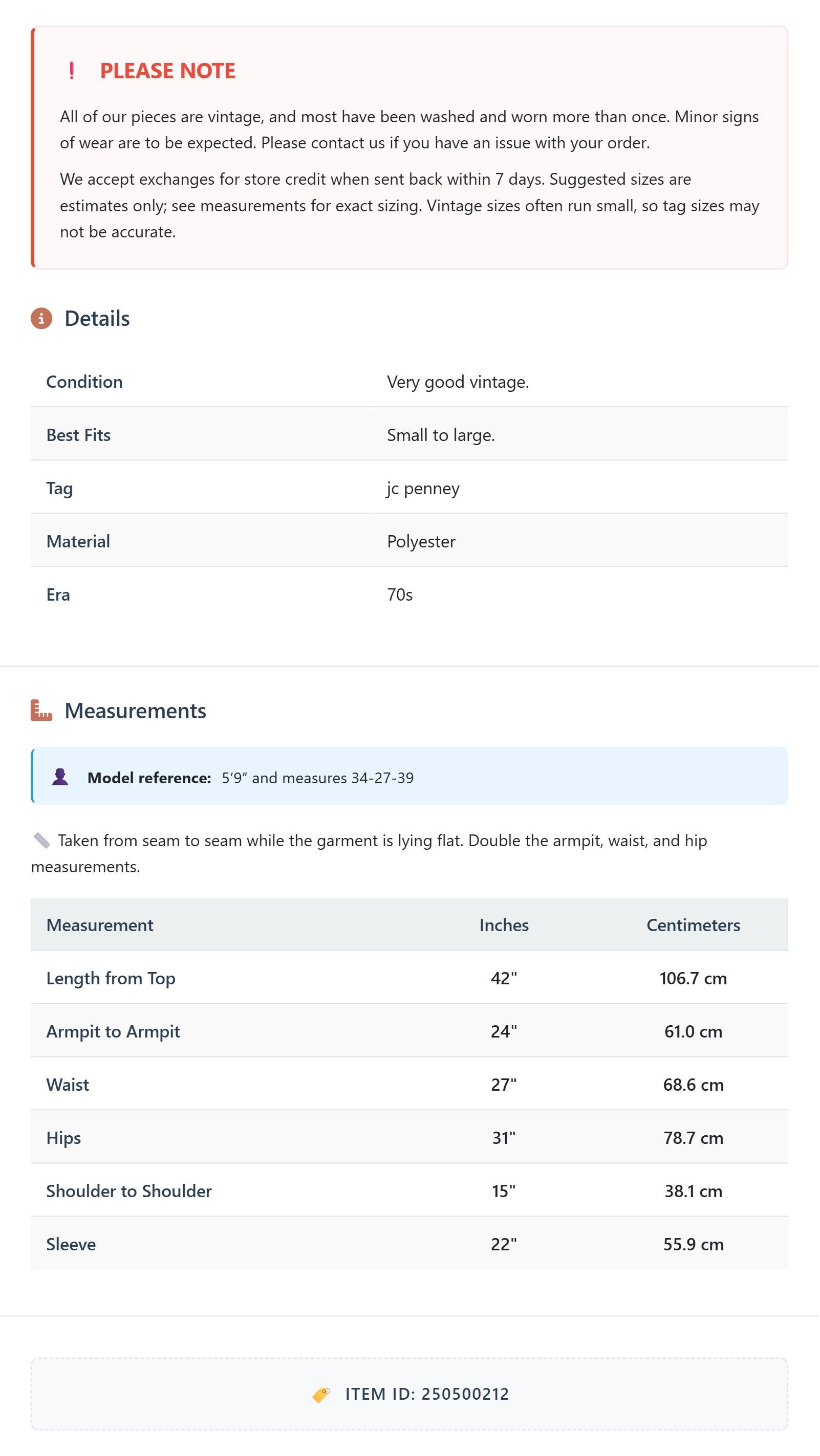 Suggested sizes are estimates only; see measurements for exact sizing. Vintage sizes often run small, so tag sizes may not be accurate.