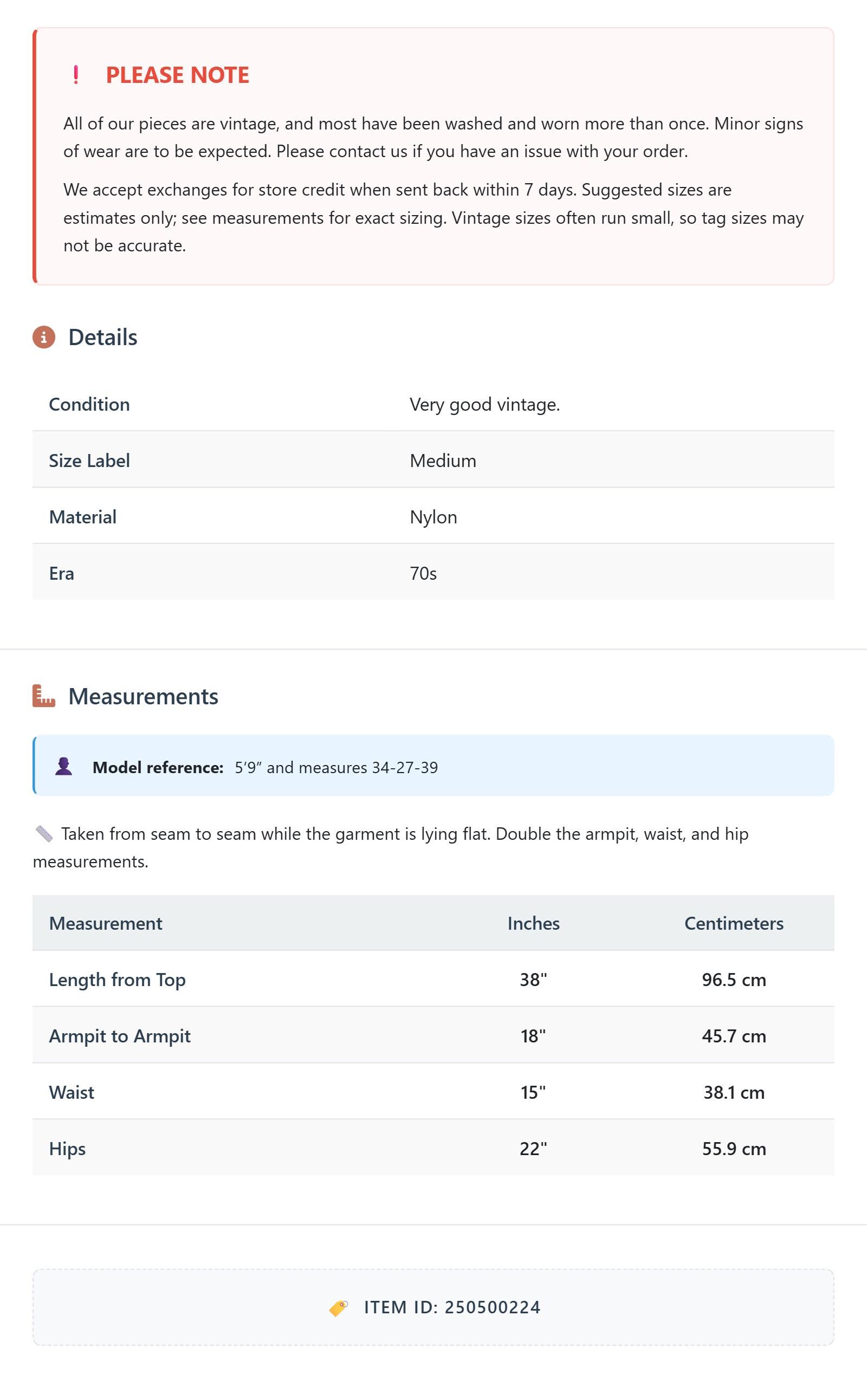 Suggested sizes are estimates only; see measurements for exact sizing. Vintage sizes often run small, so tag sizes may not be accurate.
