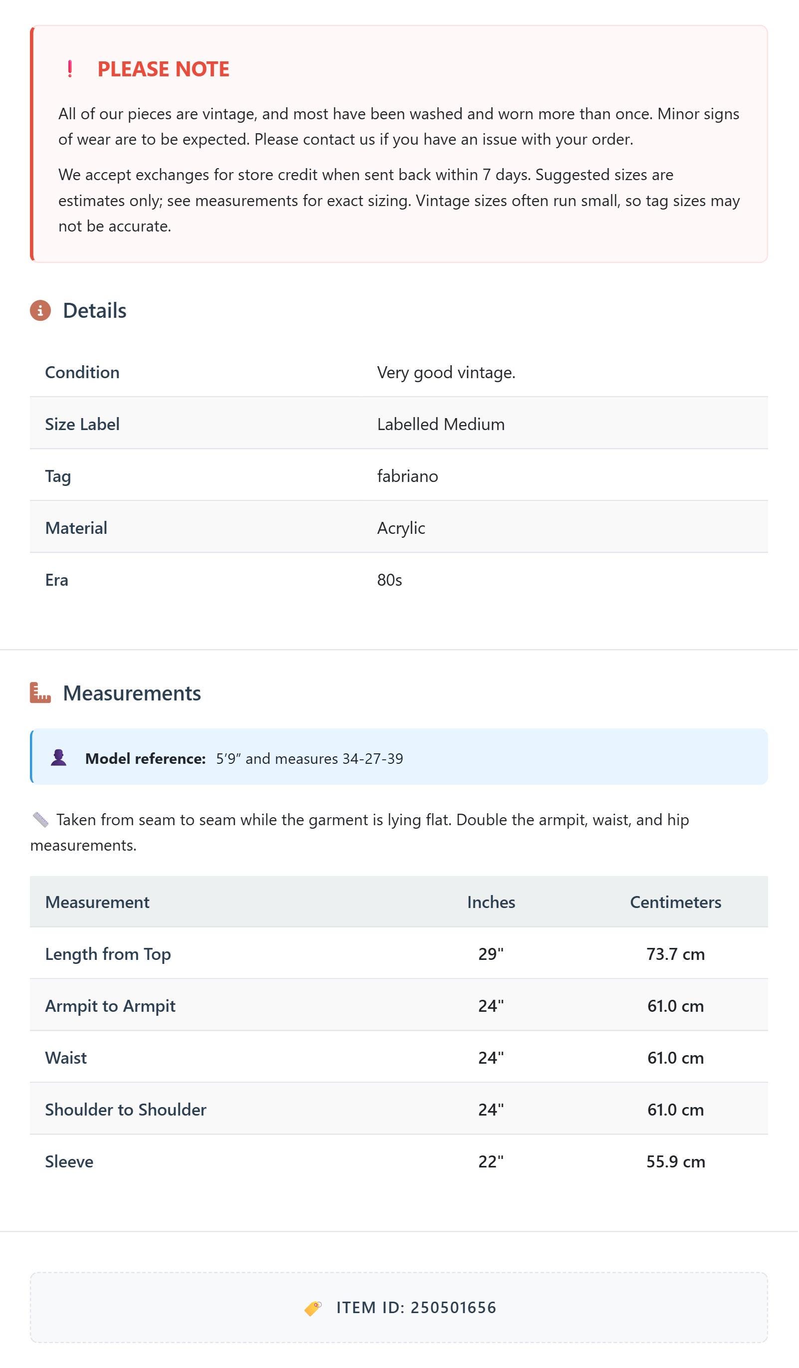 Suggested sizes are estimates only; see measurements for exact sizing. Vintage sizes often run small, so tag sizes may not be accurate.