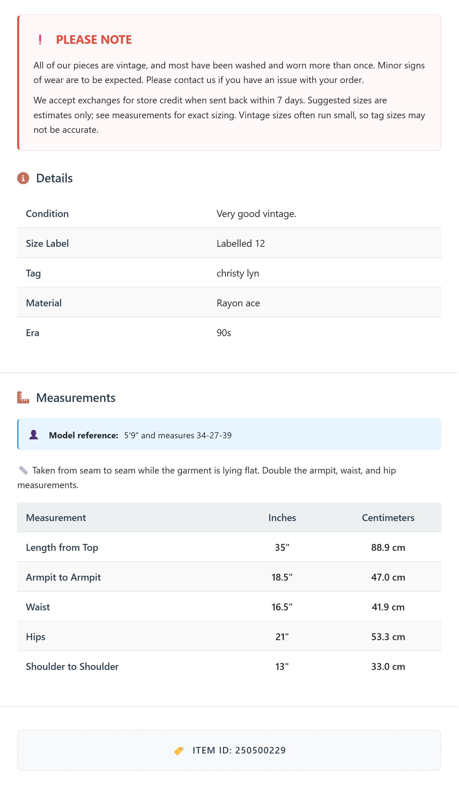 Suggested sizes are estimates only; see measurements for exact sizing. Vintage sizes often run small, so tag sizes may not be accurate.