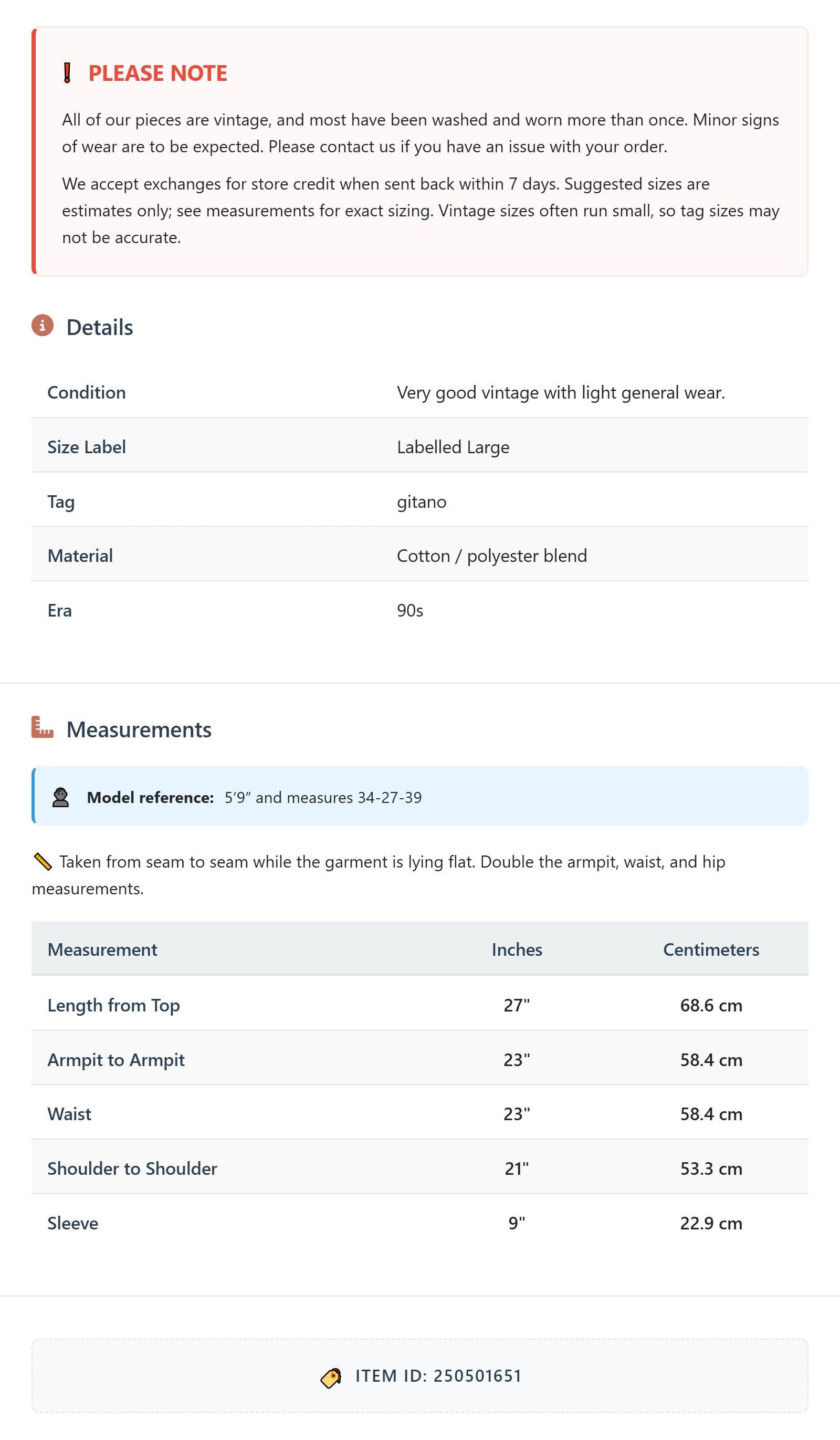Suggested sizes are estimates only; see measurements for exact sizing. Vintage sizes often run small, so tag sizes may not be accurate.