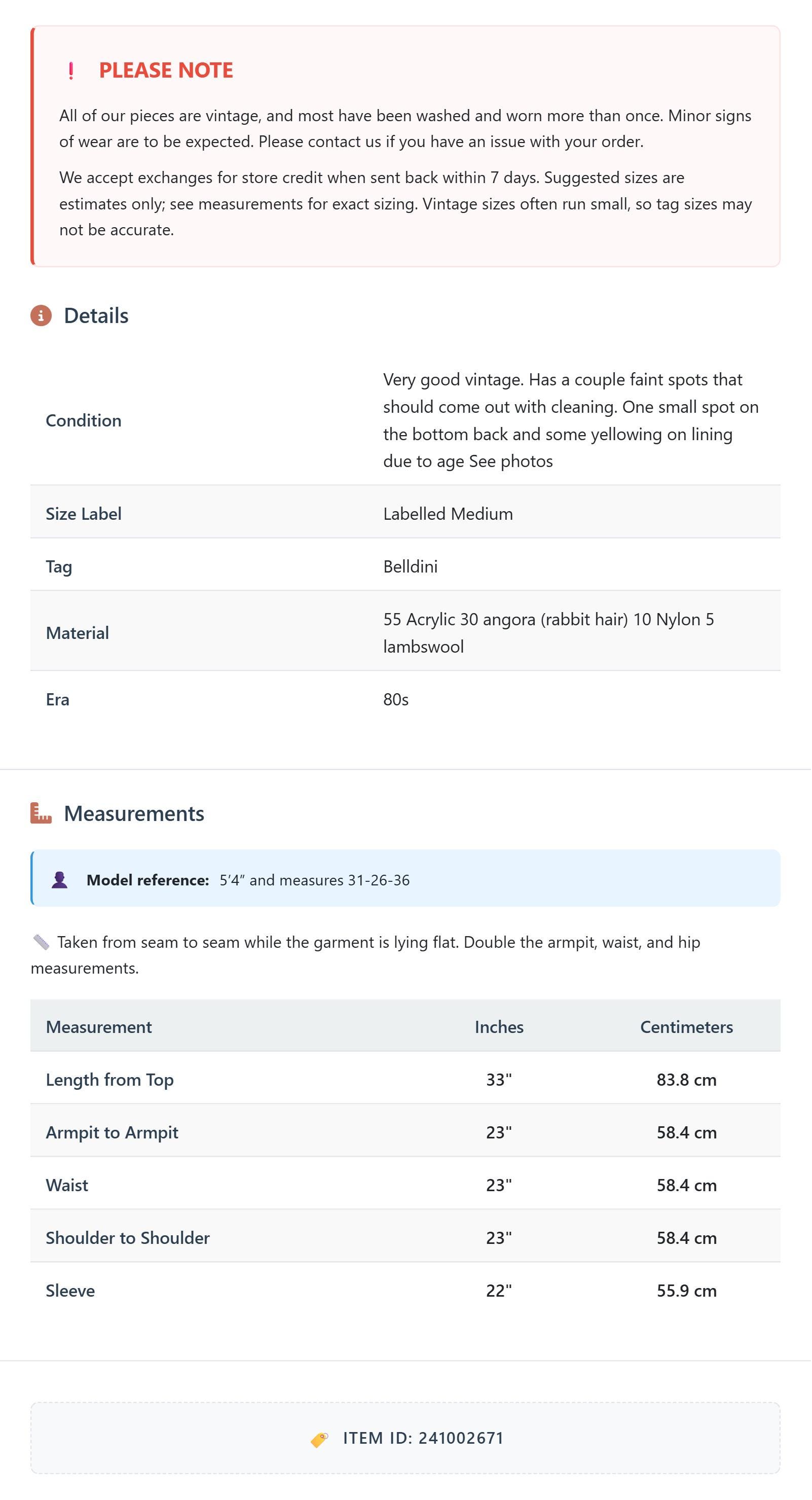 Suggested sizes are estimates only; see measurements for exact sizing. Vintage sizes often run small, so tag sizes may not be accurate.
