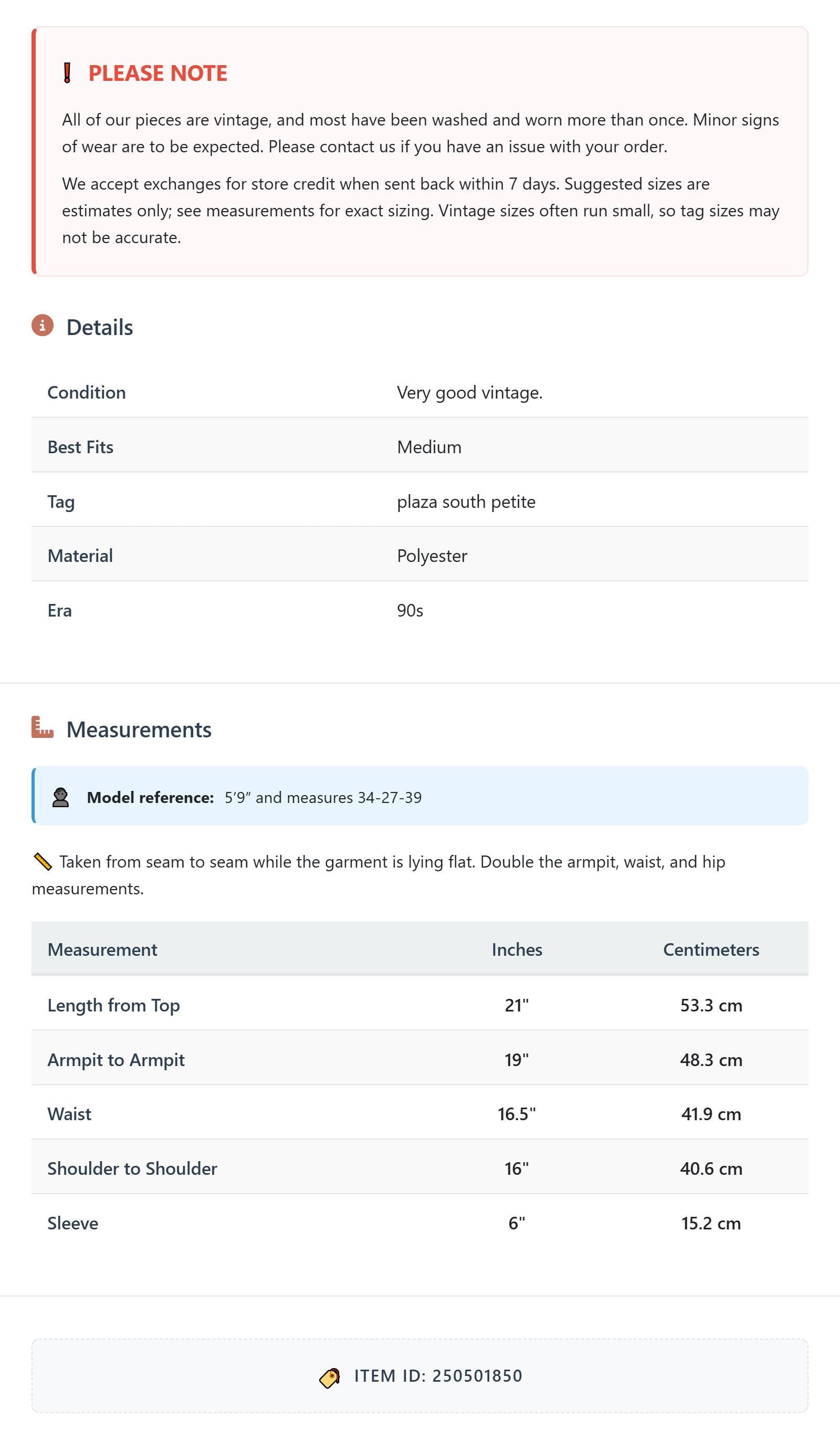 Suggested sizes are estimates only; see measurements for exact sizing. Vintage sizes often run small, so tag sizes may not be accurate.