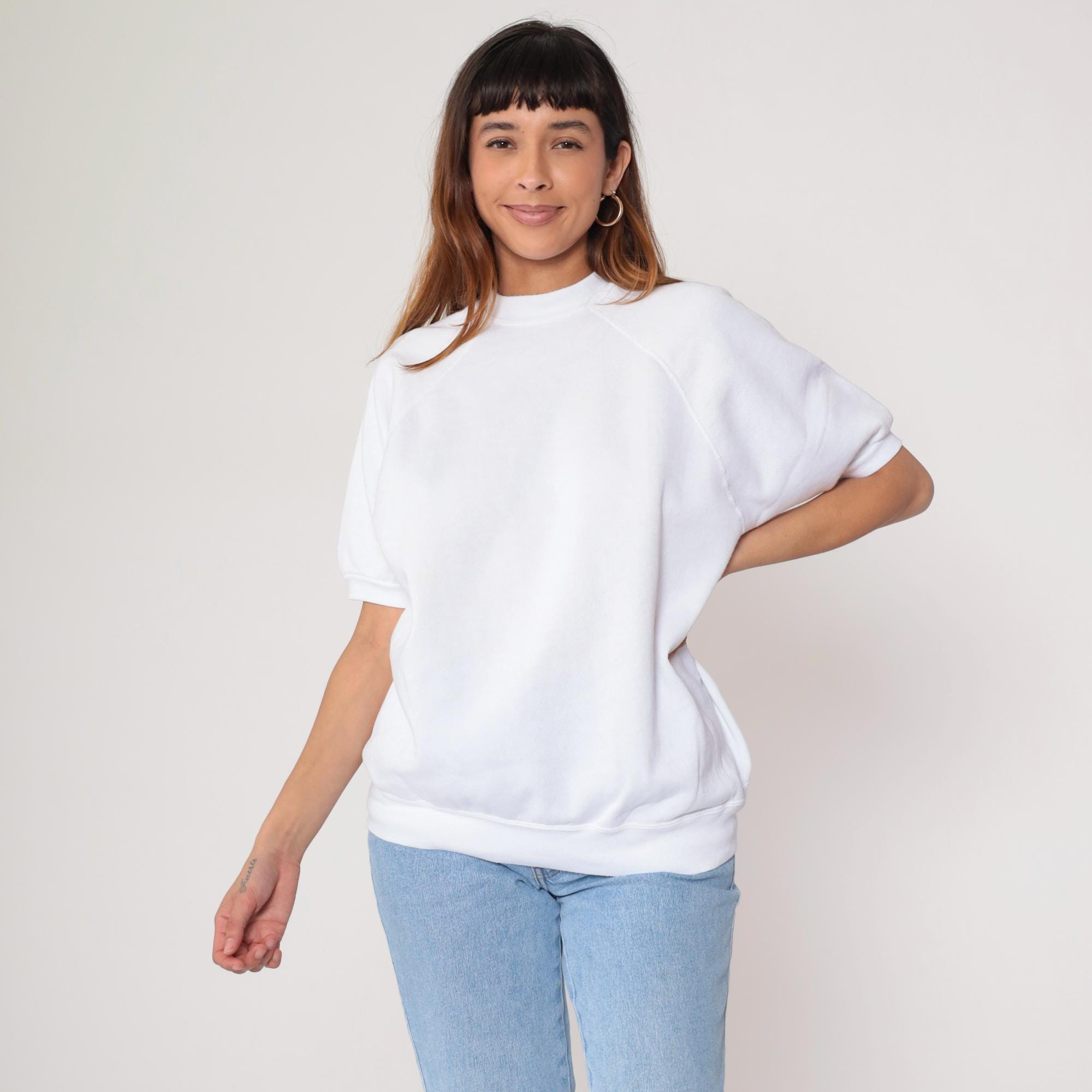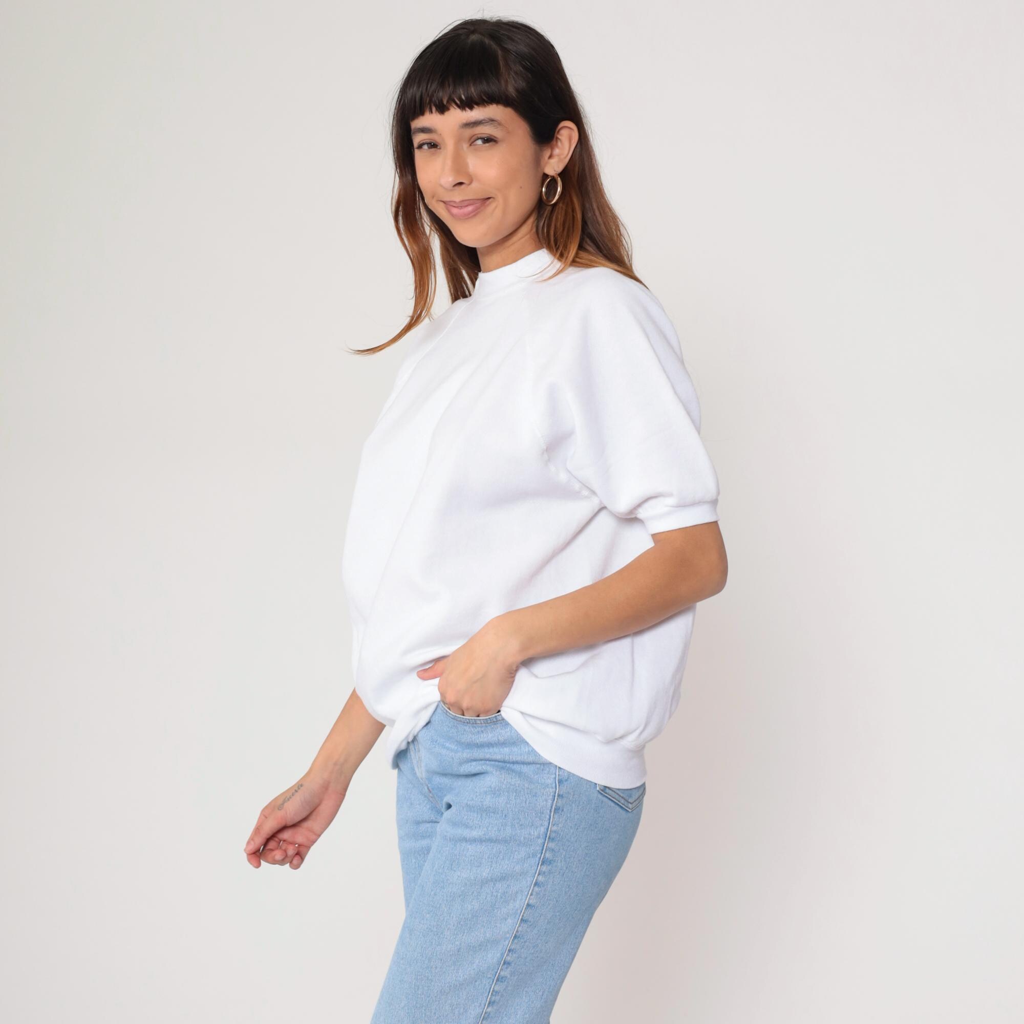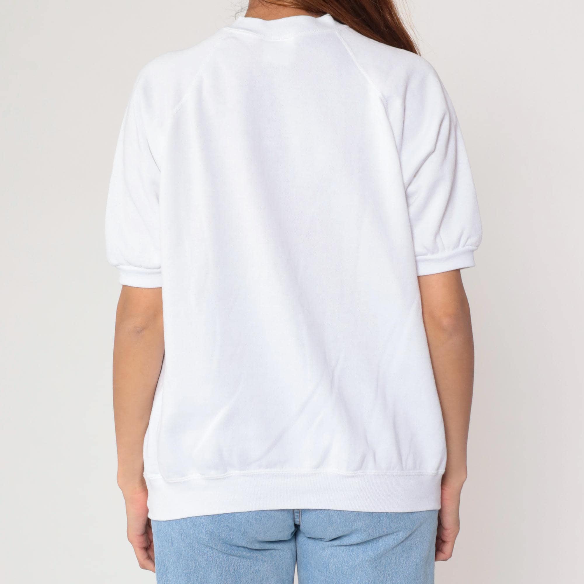 Vintage 80s short sleeve sweatshirt in white. Slouchy fit.