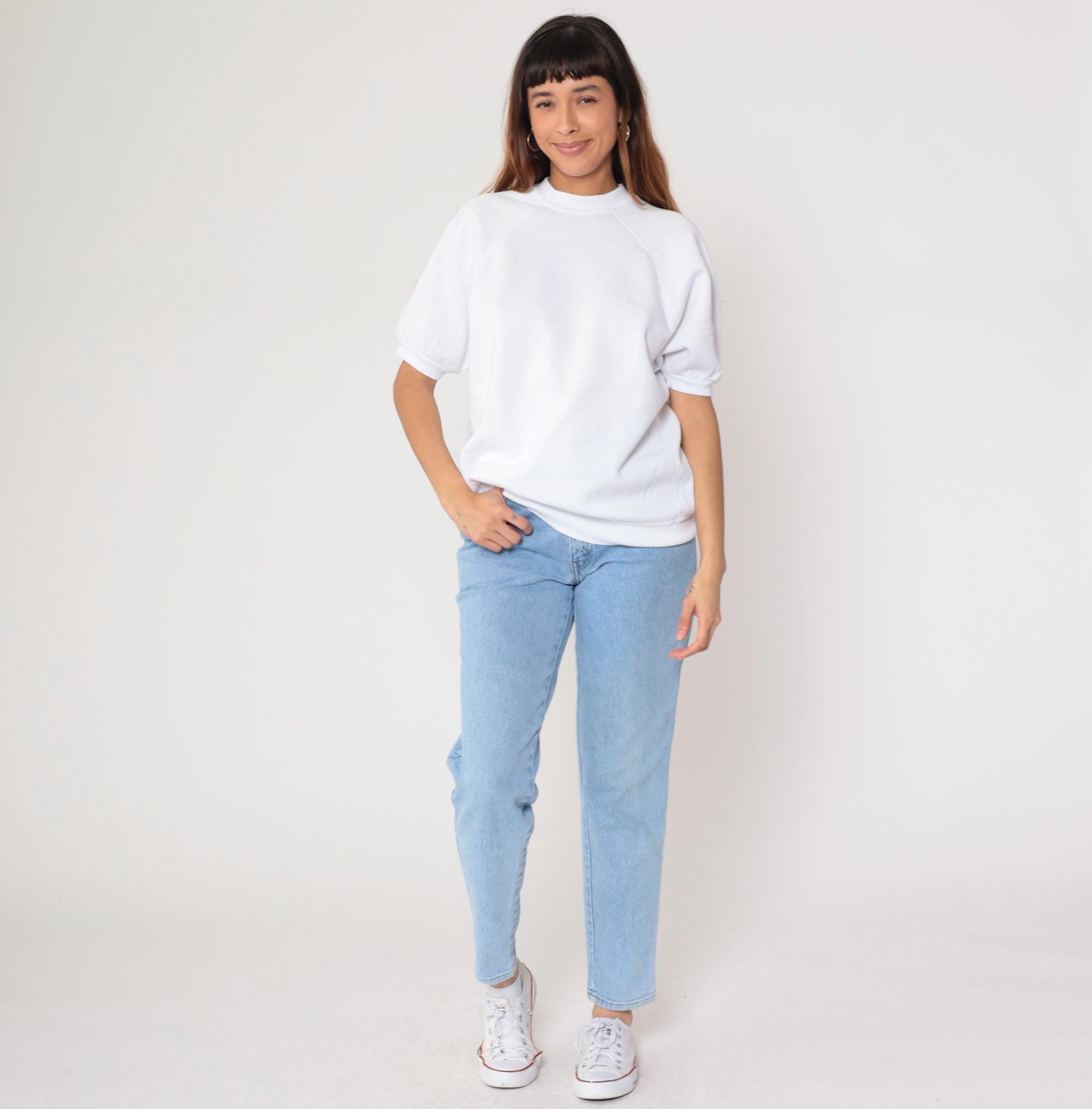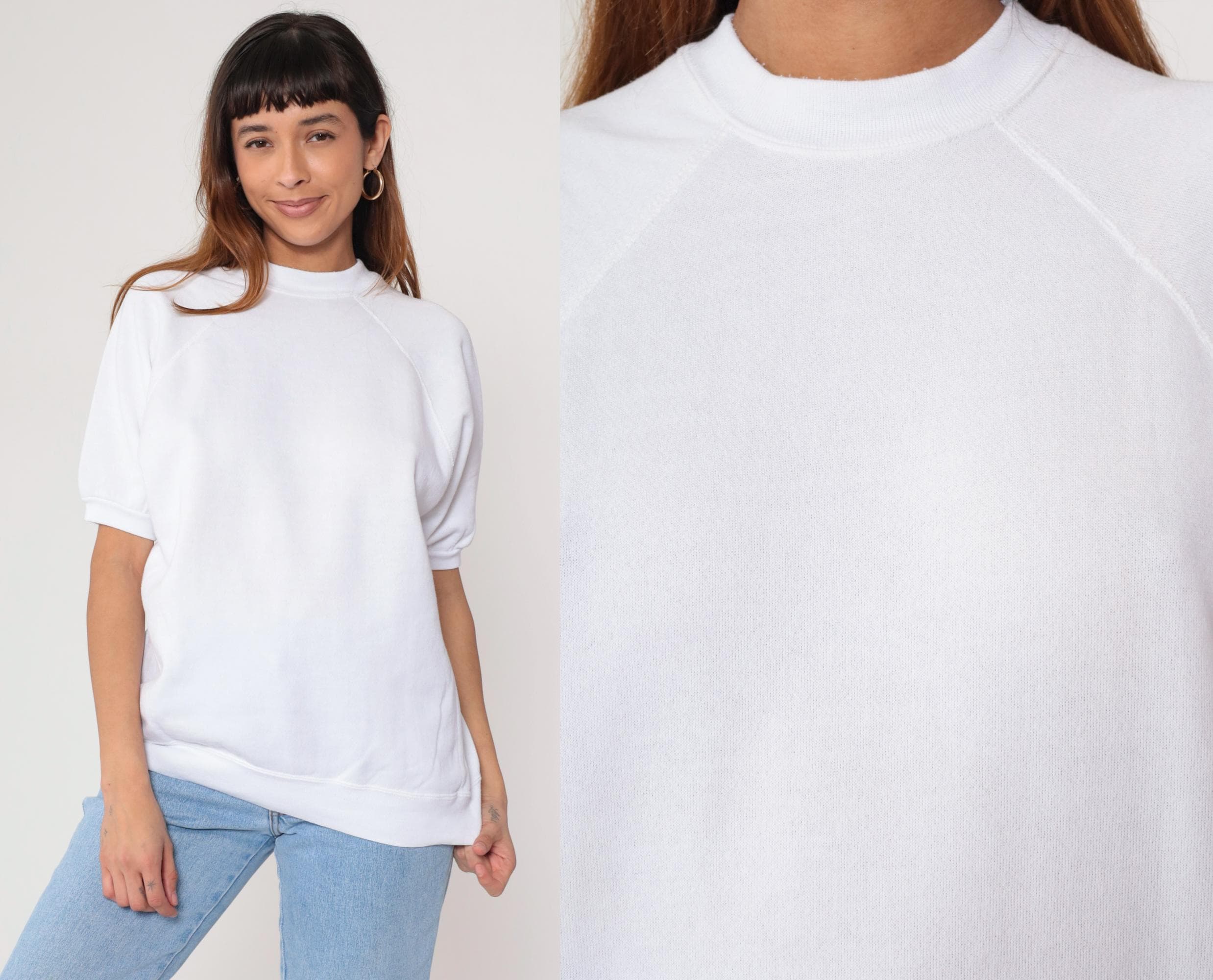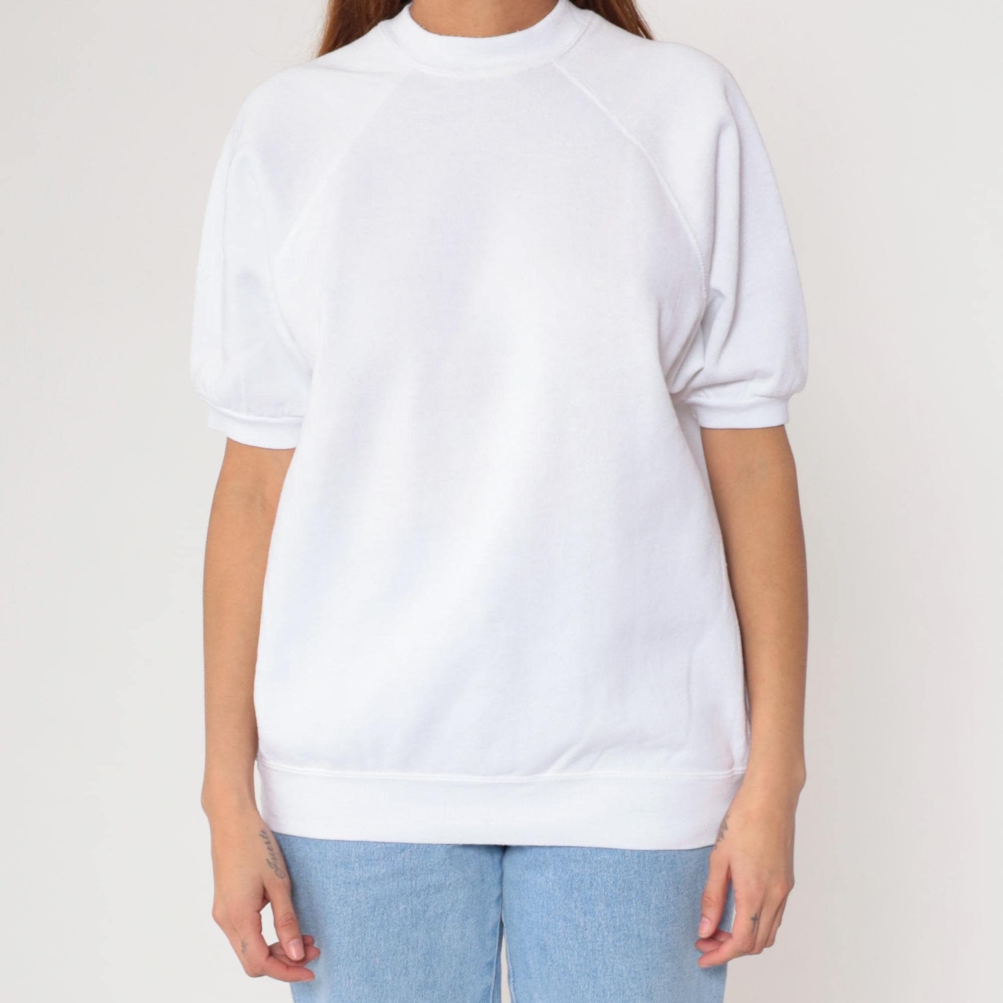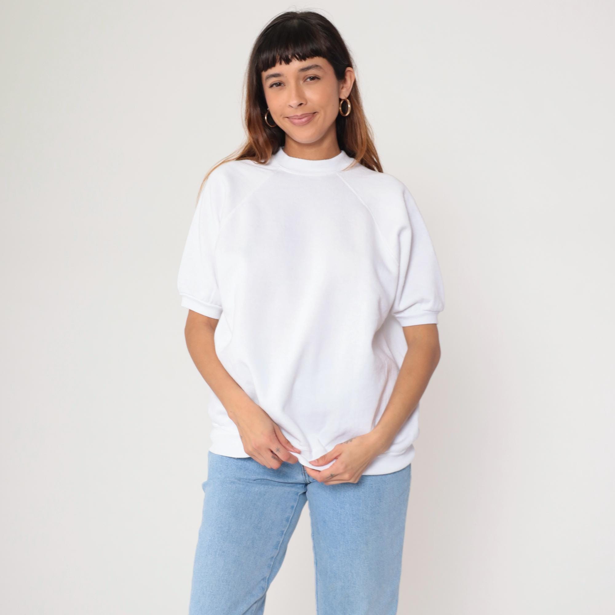 Vintage 80s short sleeve sweatshirt in white. Slouchy fit.