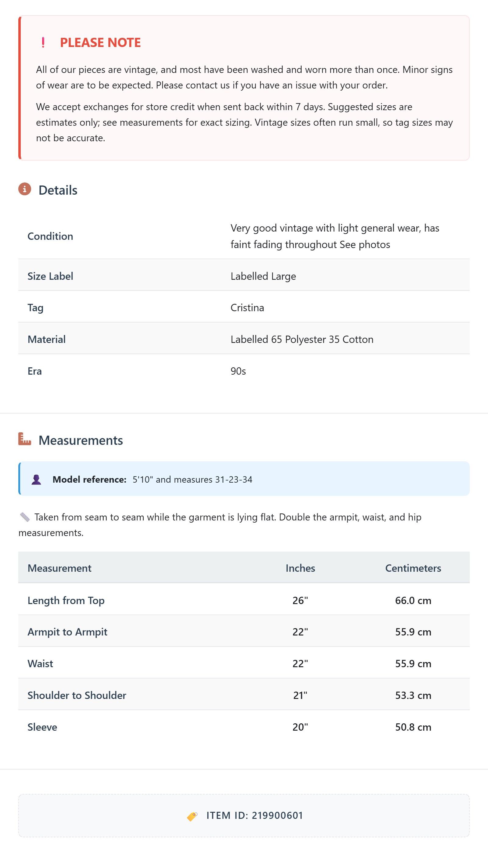 Suggested sizes are estimates only; see measurements for exact sizing. Vintage sizes often run small, so tag sizes may not be accurate.