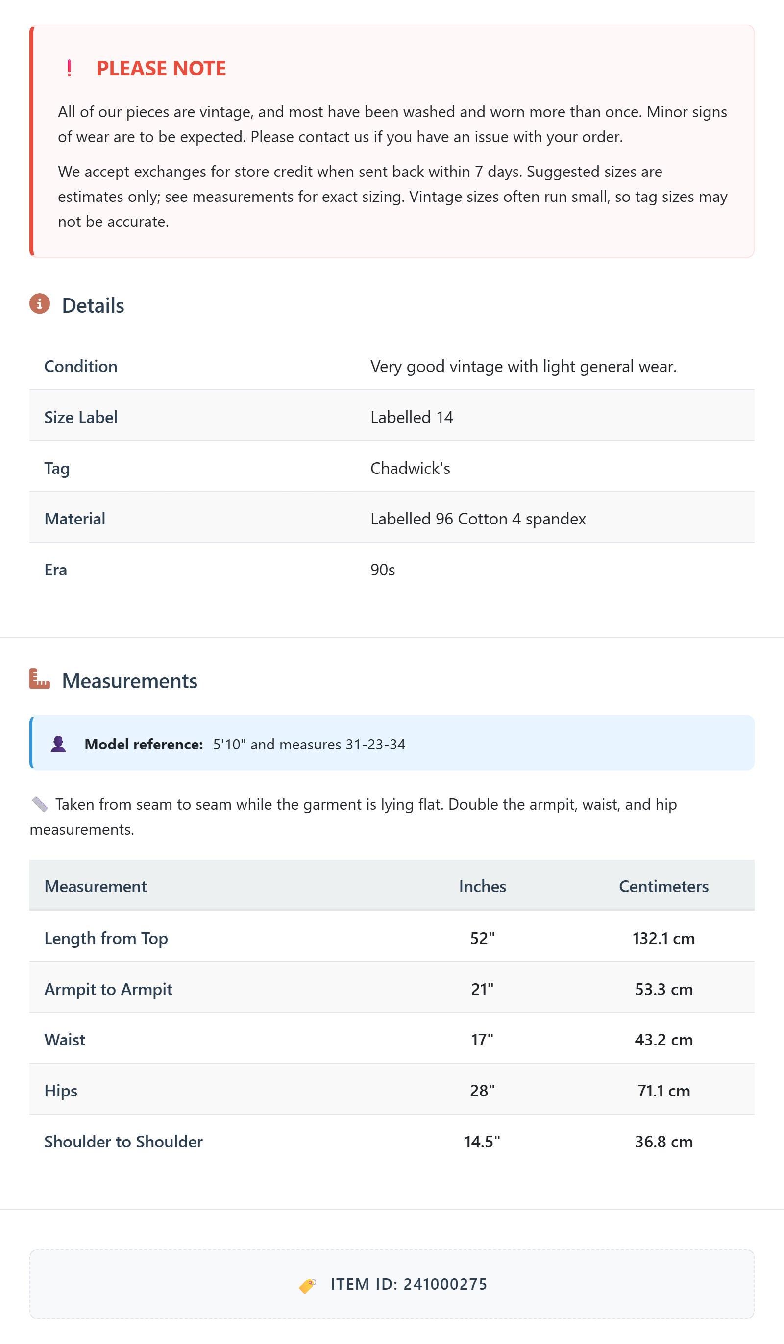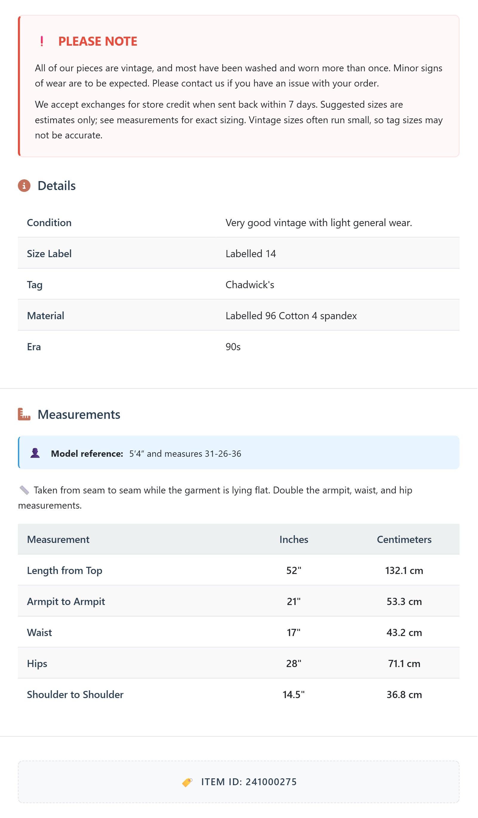 Suggested sizes are estimates only; see measurements for exact sizing. Vintage sizes often run small, so tag sizes may not be accurate.