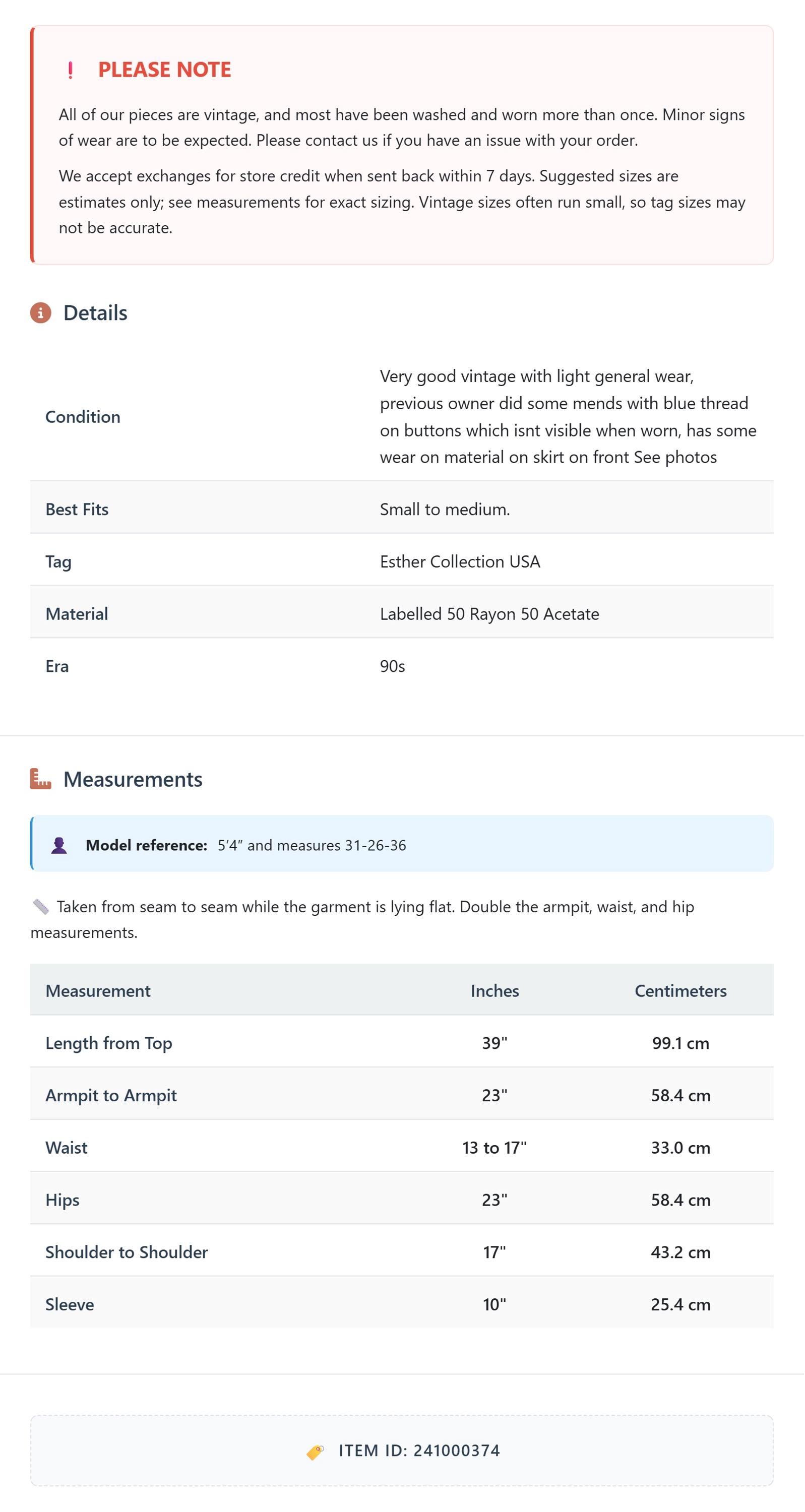 Suggested sizes are estimates only; see measurements for exact sizing. Vintage sizes often run small, so tag sizes may not be accurate.