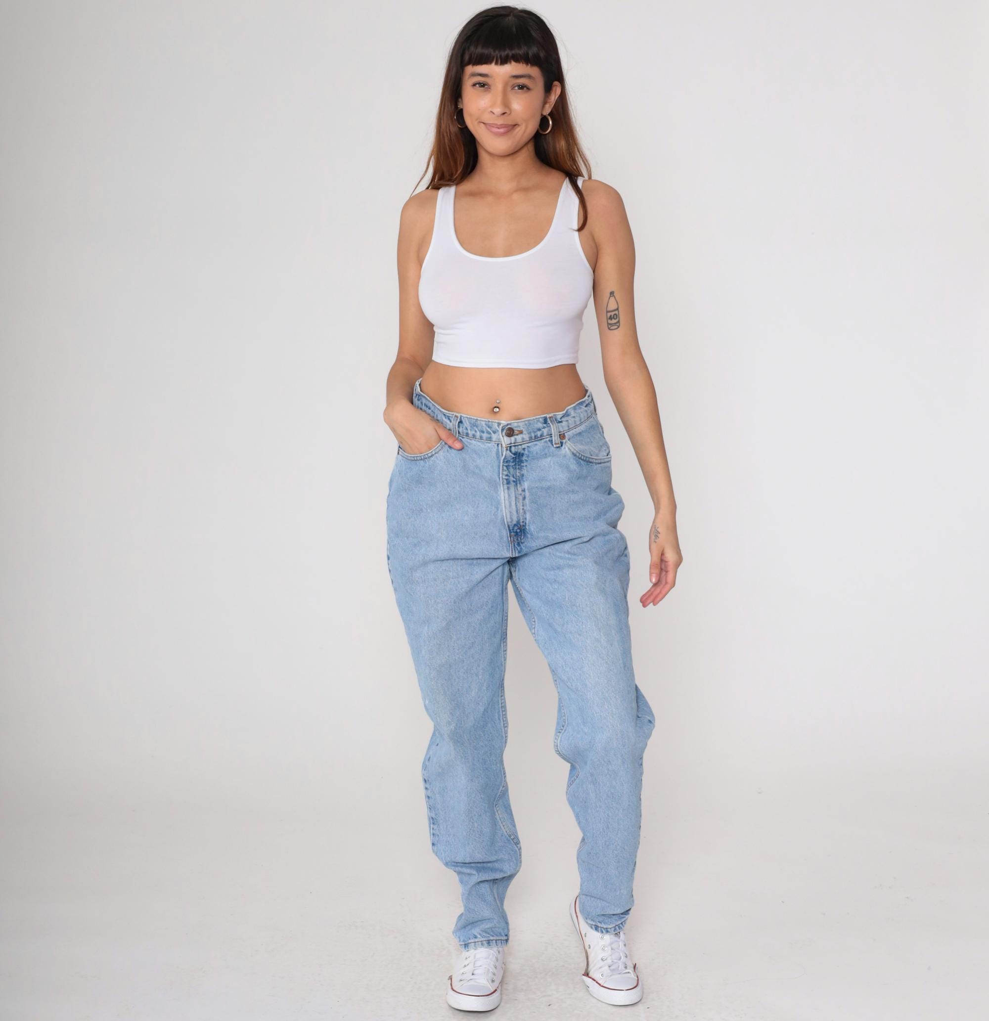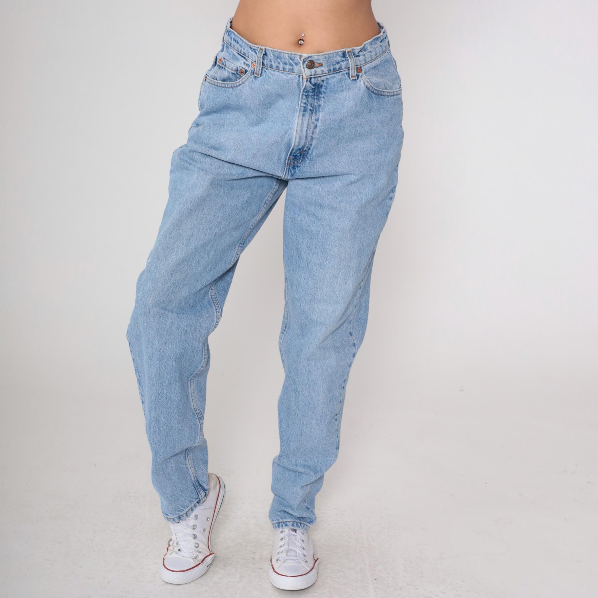 Vintage 90s jeans by Levis 521 with a high waist and a mom fit with a tapered leg.